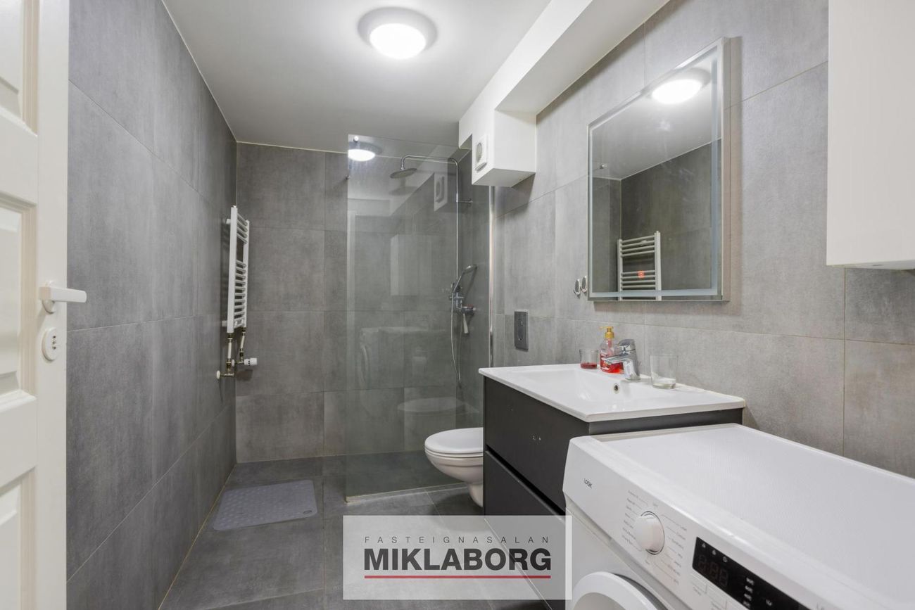 Er 3ja herbergja íbúð með sérinngangi á hægri hlið hússins. Íbúðin skiptist í þrjú svefnherbergi, baðherbergi með sturtu og fullbúið eldhús með tengi fyrir þvottavél.
