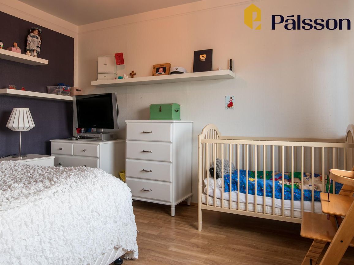 Parket er á flestum rýmum nema í anddyri, baðherbergjum og stofu en korkflísar eru í eldhúsinu. Stór geymsla er á hæðinni.