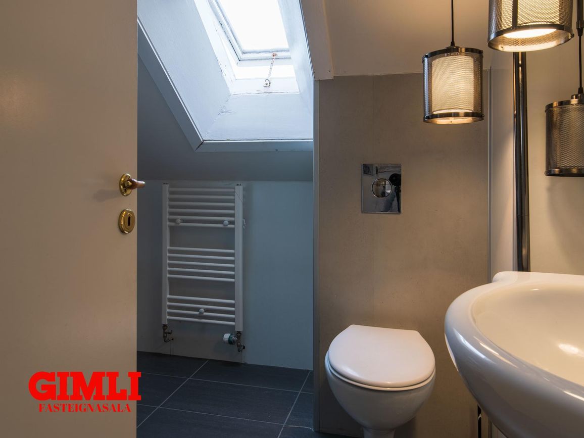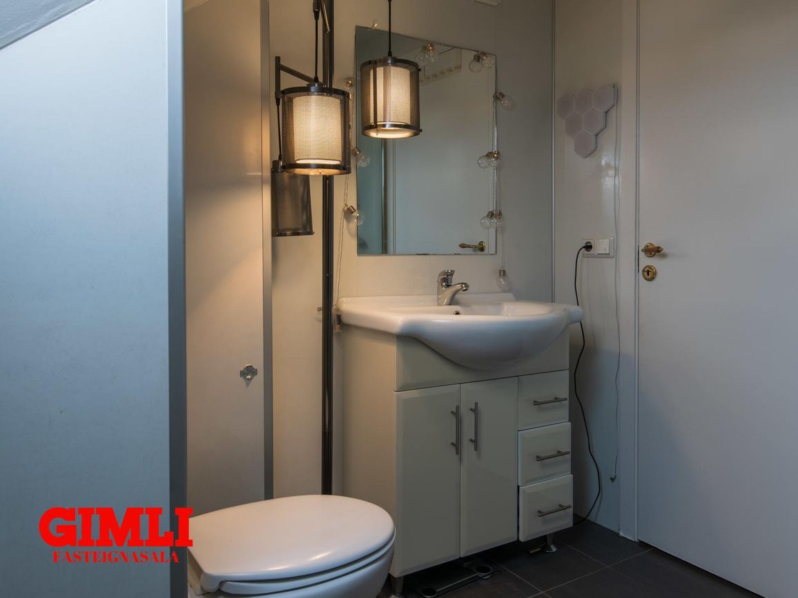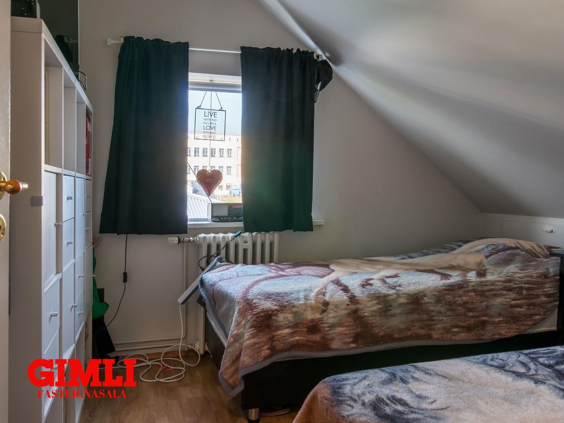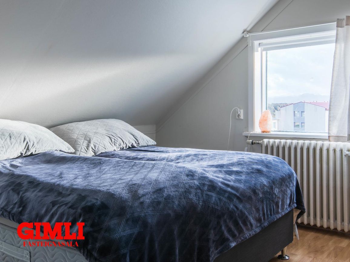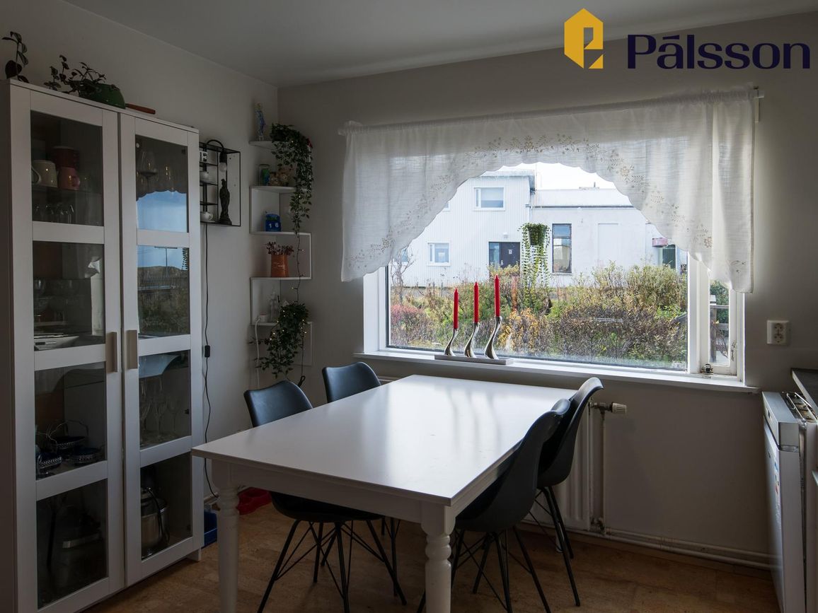 Hæðin er mikið til undir risi en er skráð 111 fm samkvæmt Þjóðskrá Íslands en aukalega sem er ekki inn í skráðum fermetrum er sirka 20 fermetrar.