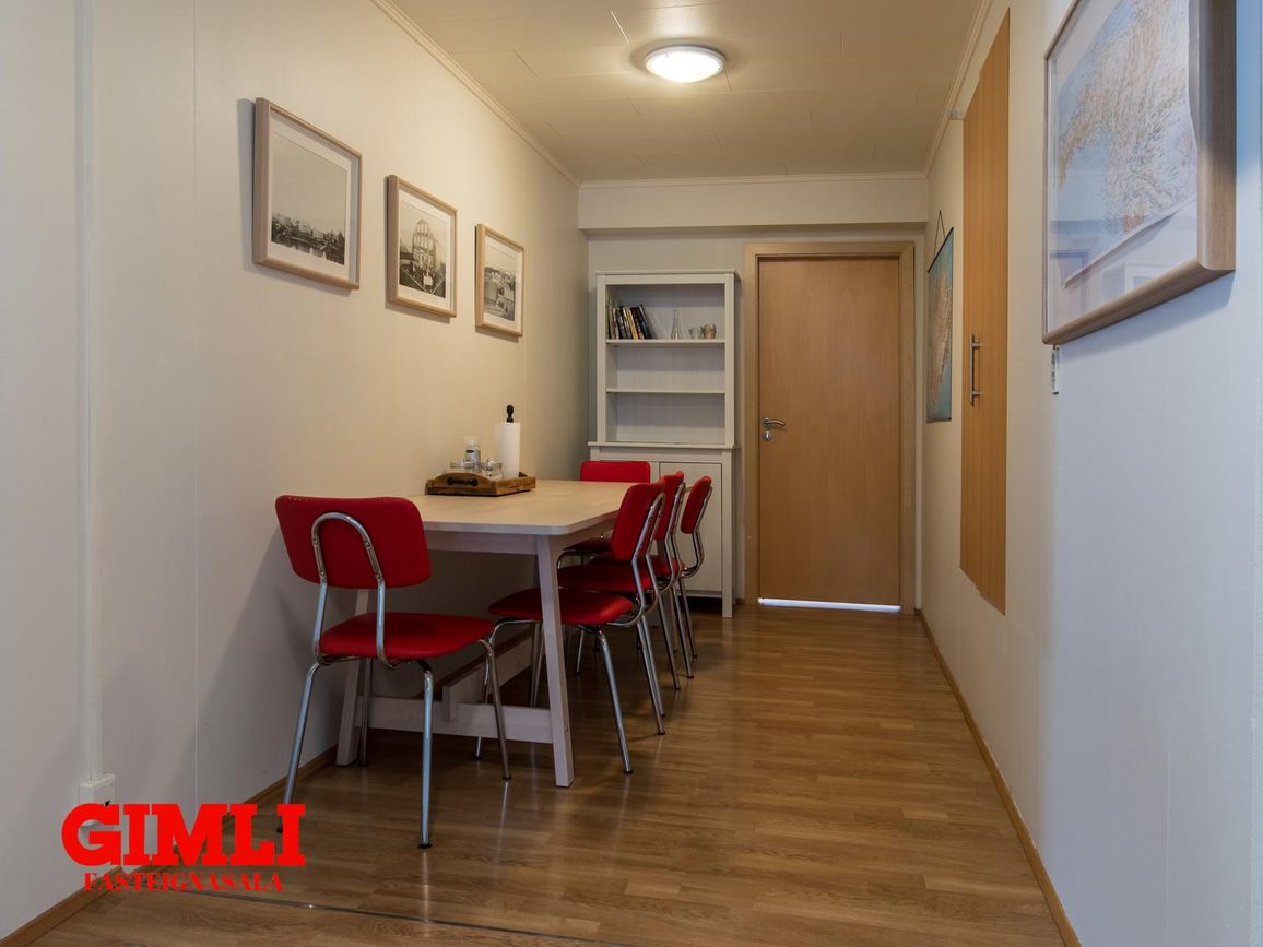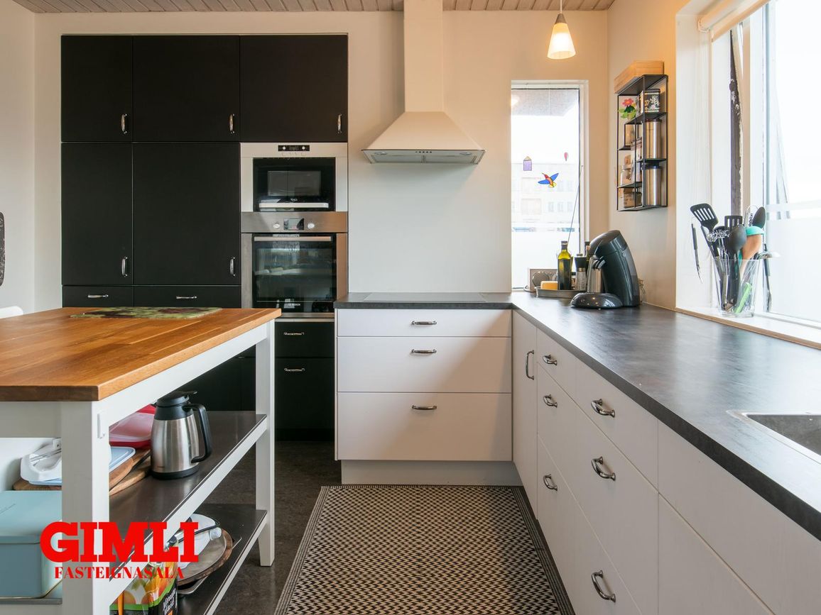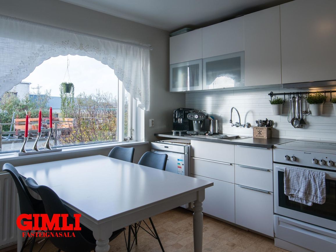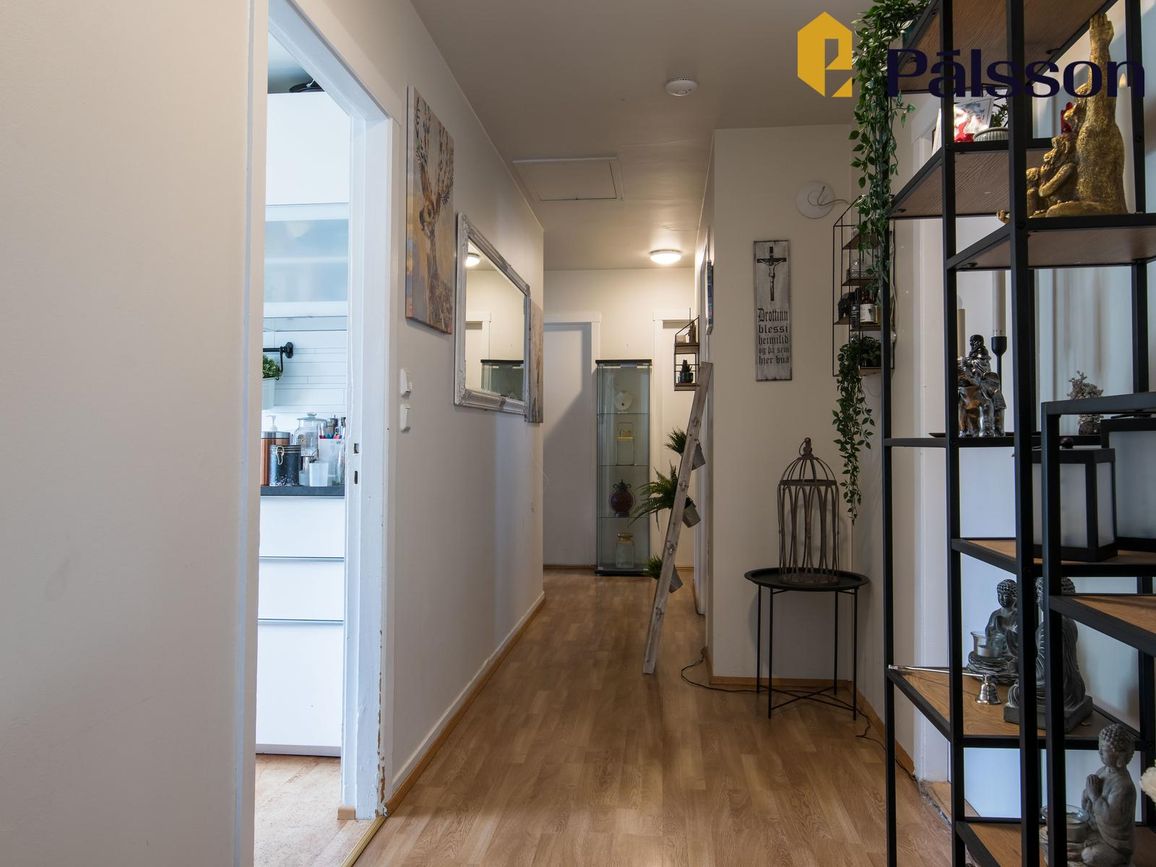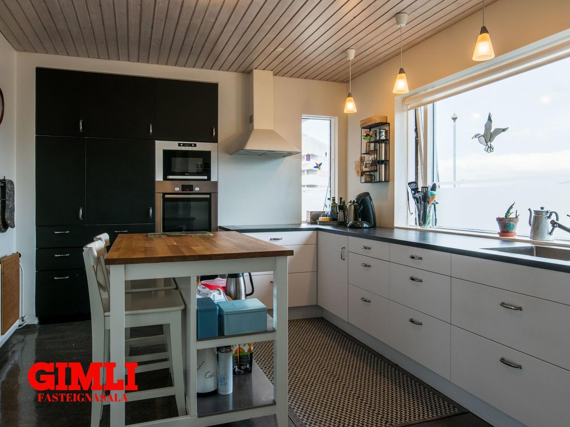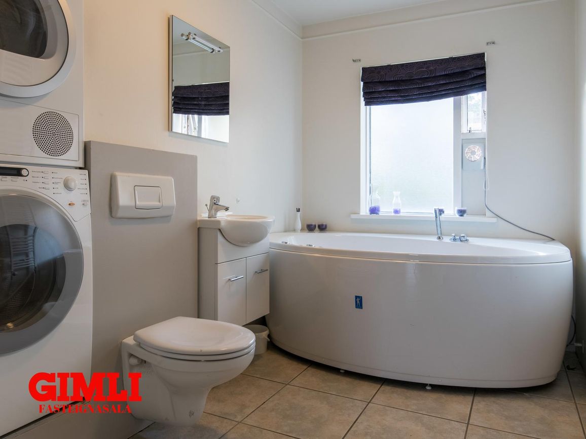 Parket er á flestum rýmum nema í anddyri, baðherbergjum og stofu en korkflísar eru í eldhúsinu. Stór geymsla er á hæðinni.