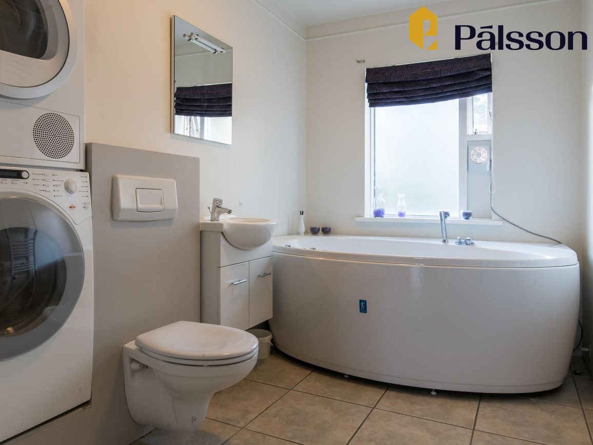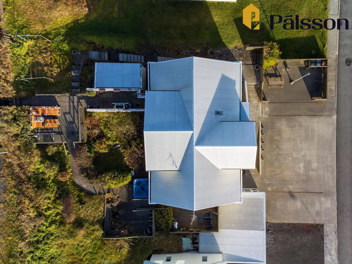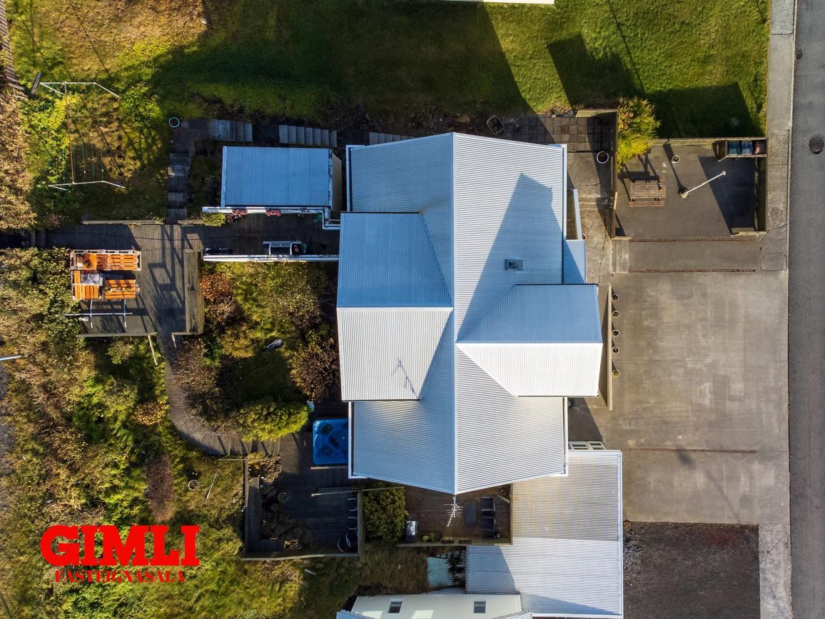 Fasteignamat fyrir 2026 fyrir bæði fasteignanúmerin er 94.650.000 mkr.Nánari lýsing:1. hæð sem hefur verið undanfarin notuð sem heimagisting, skiptist í anddyri. þrjú svefnherbergi, salerni, herbergi með saunaklefa og sturtu, eldhúsaðstöðu einnig er þvottahús og geymsla.