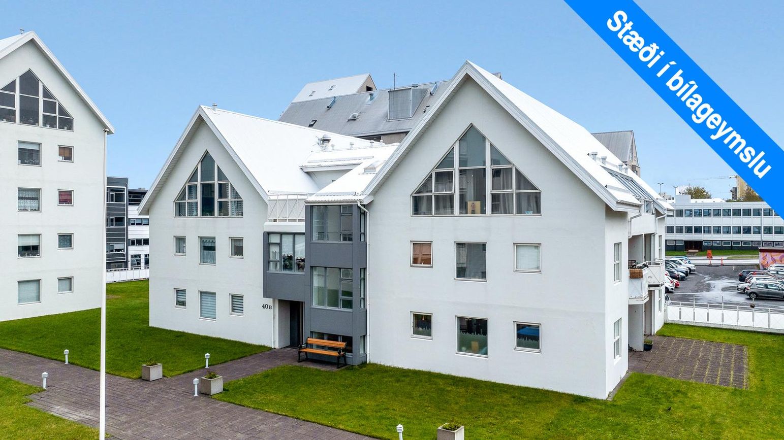 Sérbílastæði í lokaðri upphitaðri bílageymslu fylgir íbúðinni. Stæðið er nr. A43.