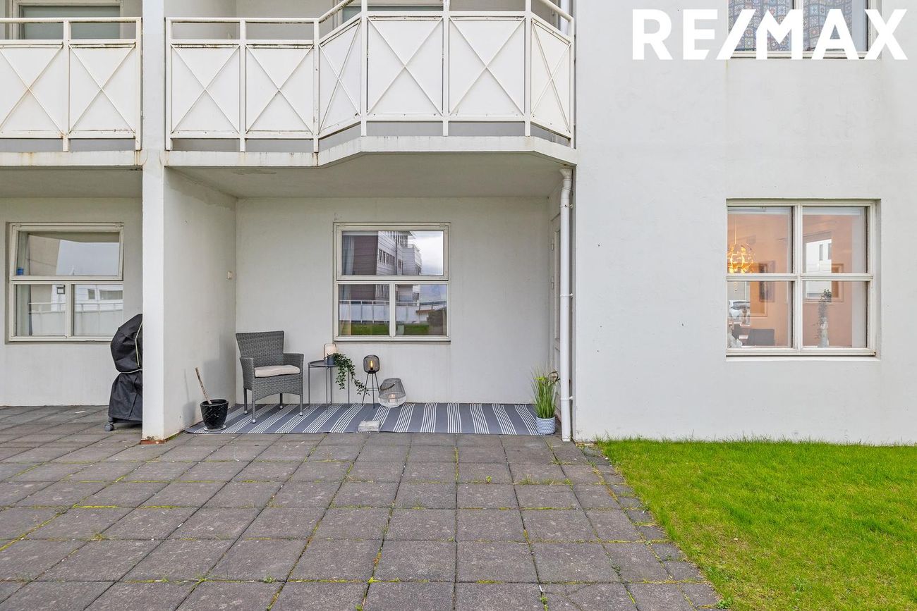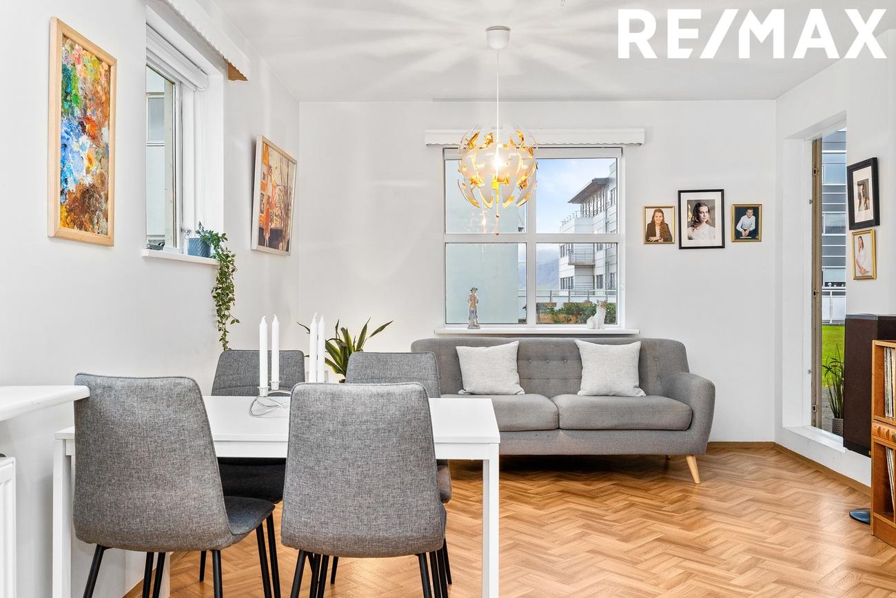 Stofa: Björt og rúmgóð með útgengi út á hellulagða verönd (í eignaskiptasamningi er skilgreindur 36 fm sérafnotaflötur)