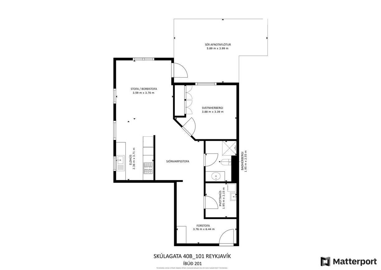 - Innangegnt er á milli húsanna þriggja gegnum bílastæðahús. Lyklakóða eða rafmagnsdropa þarf til að opna dyr.
