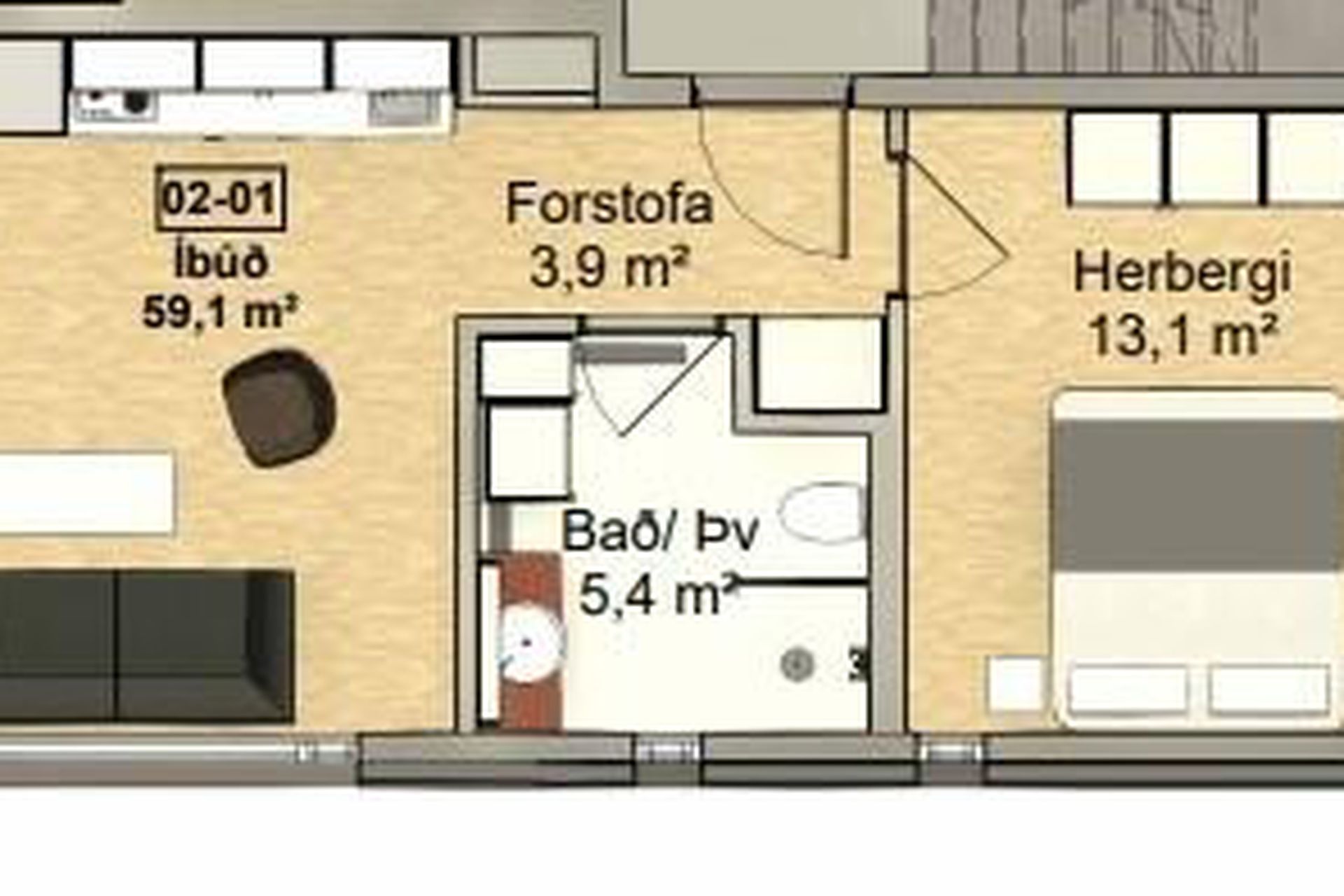 | 1 | 48,90 m² | 53.900.000 kr. 10. nóvember 2025 | 52.900.000 kr. 10. desember 2025 |