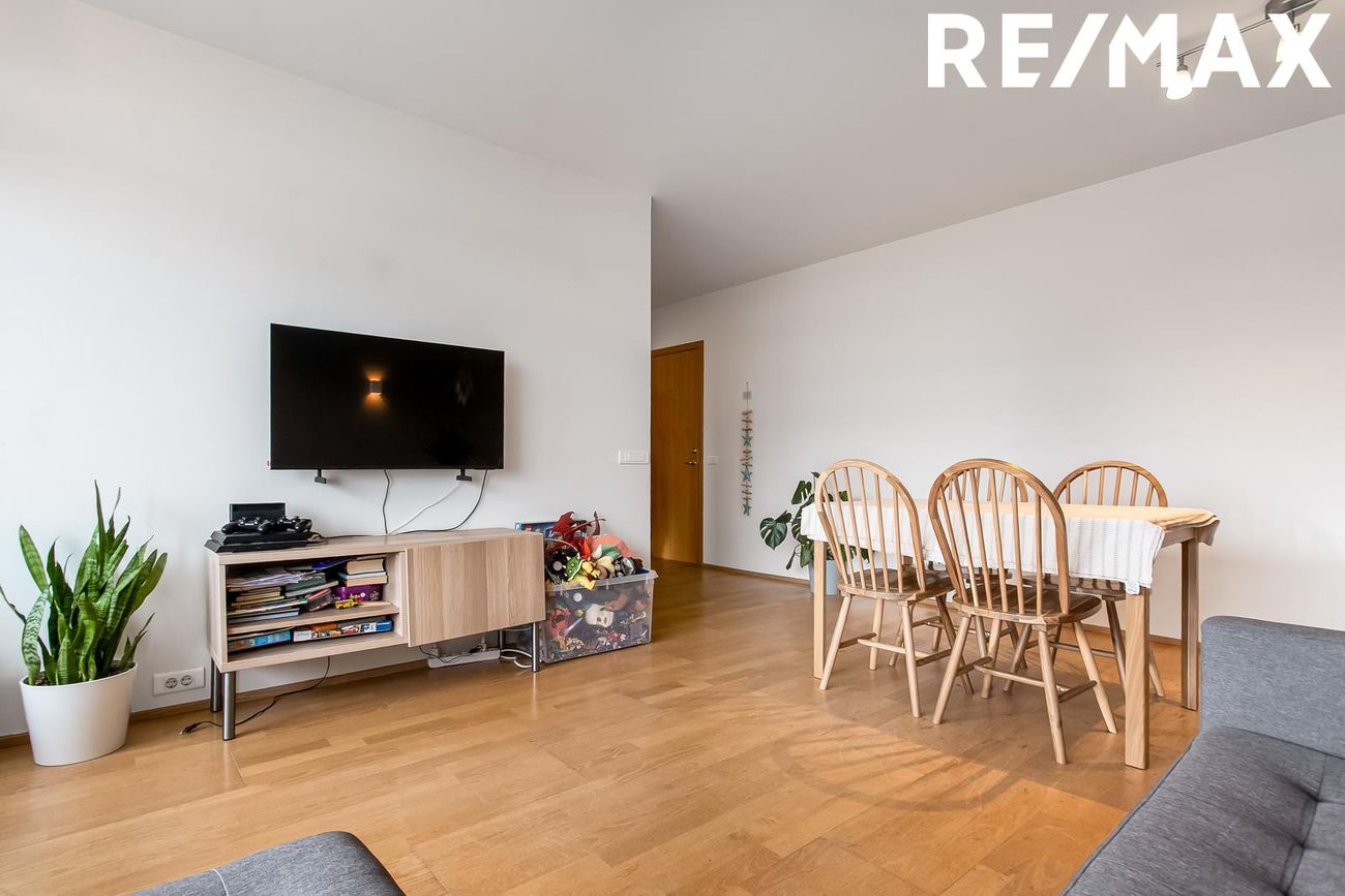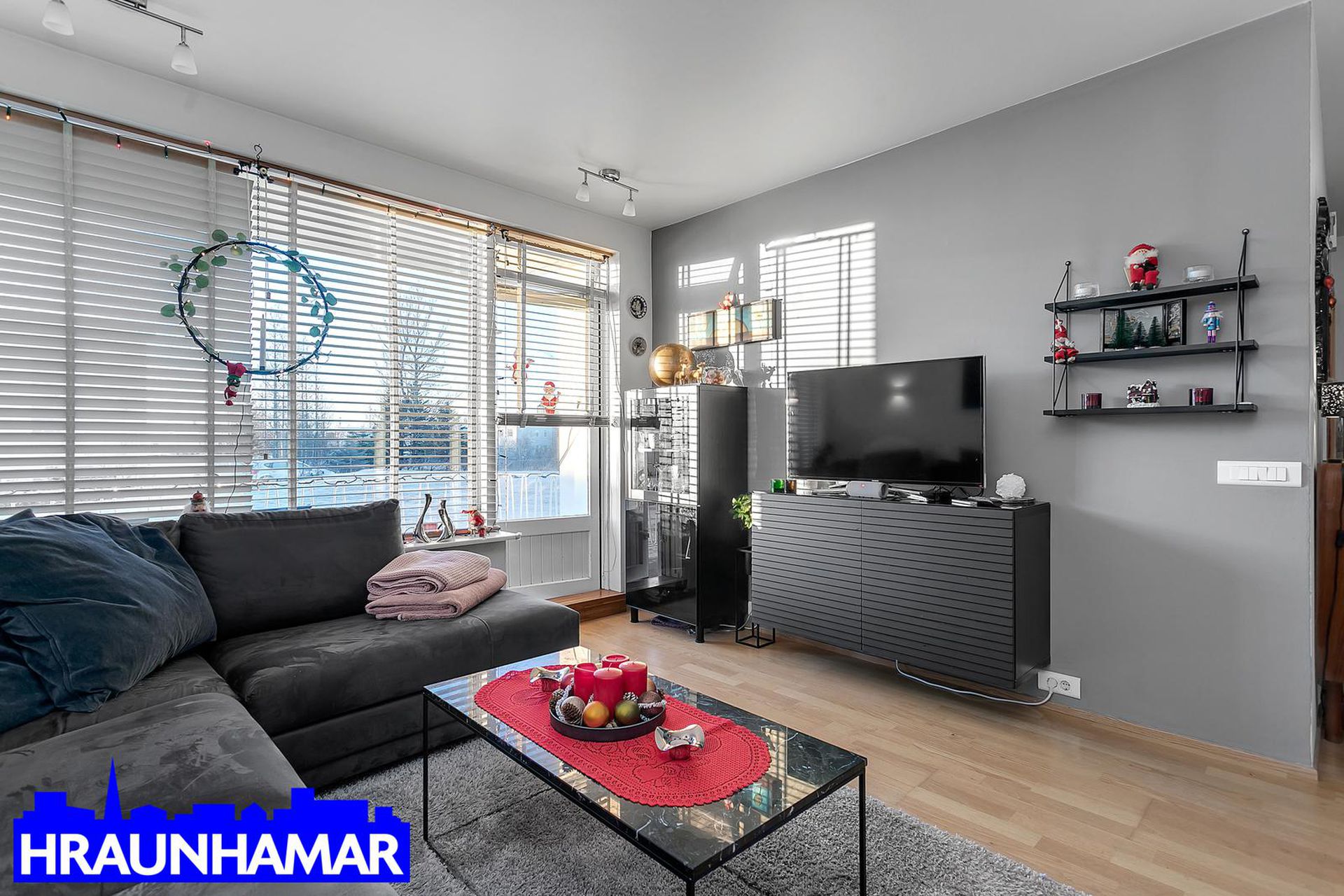 Stofa er björt með góðri birtu, parket á gólfi, gengið út á svalir.