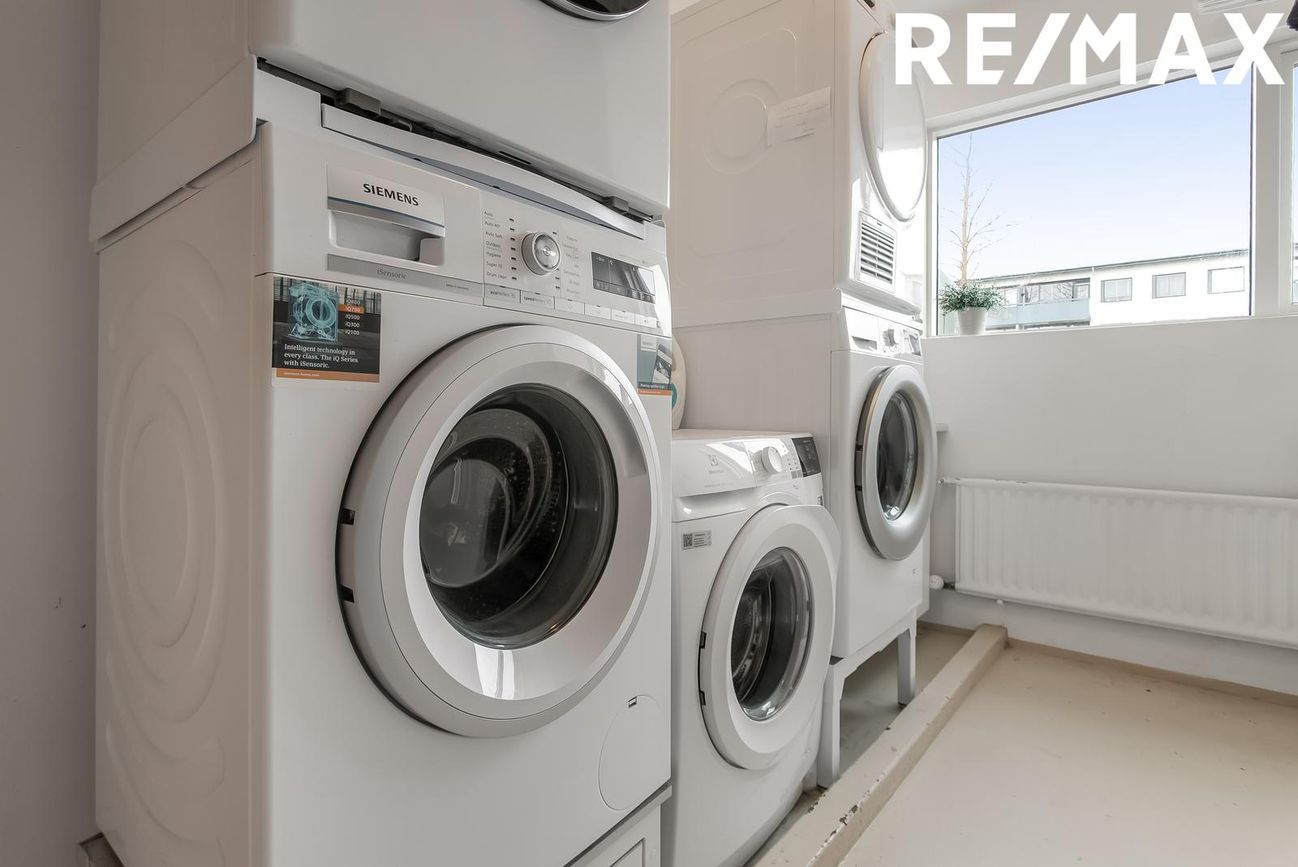 Sameiginlegt þvottahús er á hæð íbúðar með stæði fyrir þvottavél og þurrkara.