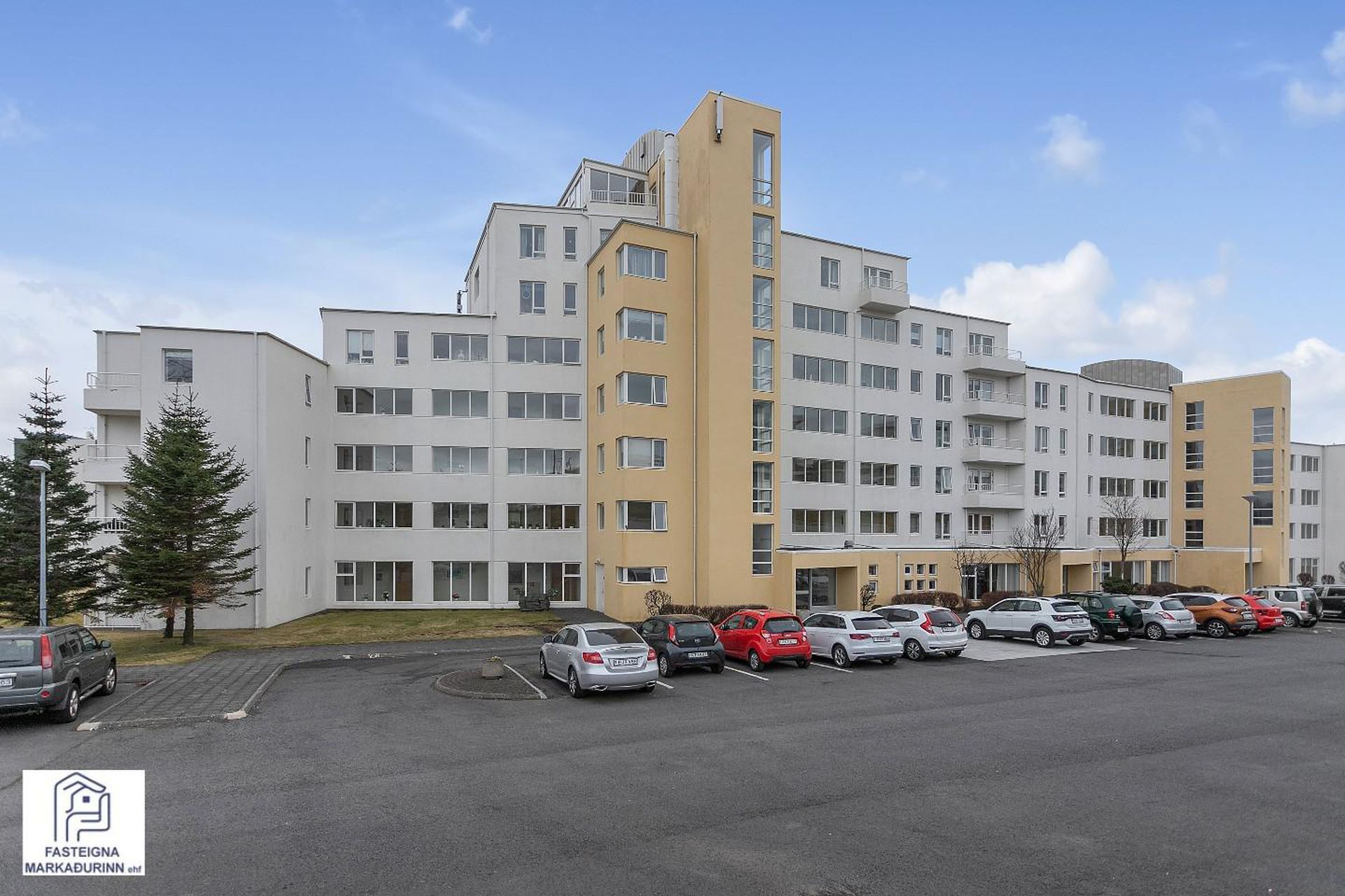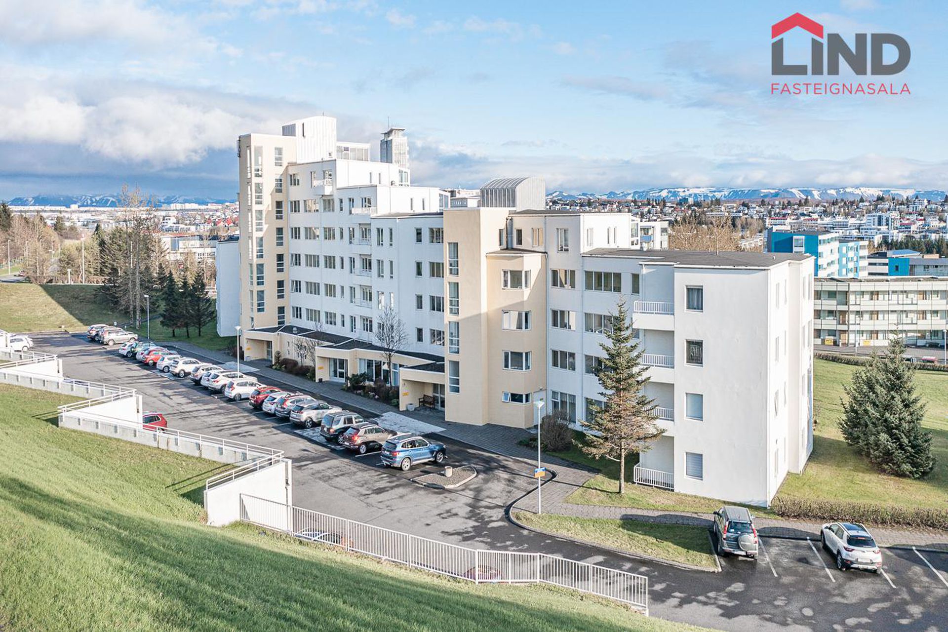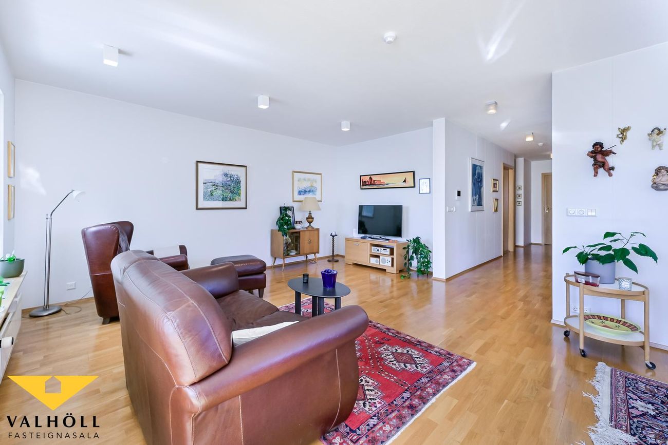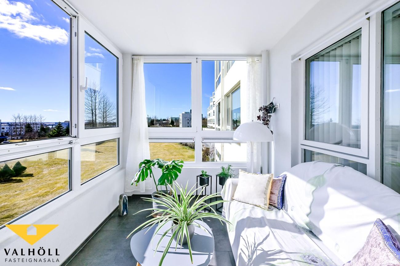 Valhöll fasteignasala, Síðumúla 27, sími:588-4477 og Ingólfur Gissurarson löggiltur Fasteignasali og leigumiðlari, síðan 1989, sími:896-5222, kynna: Falleg og stór 137,6 fm endaíbúð, (145,5 fm með yfirbyggðum svölum meða svalalokun), á 2.hæð ásamt 23,1 fm bílskúr í eftirsóttu lyftuhúsi fyrir 55 ára og eldri, á góðum stað við Borgarspítalan. Stutt í alla þjónustu. Mjög góð sameiginleg aðstaða á jarðhæð hússins þar sem eru setustofur, rúmgóður veislusalur (fyrir um 60 manns) með eldhúsi, er til reiðu fyrir íbúa gegn vægri leigu. Snyrti og hárgreiðslustofa. Tækjasalur með búningsherbergjum+sturtu, saunaklefa og heitum potti á lóð. Mjög góður húsvörður sér um daglegan rekstur húsfélagsins. SKIPULAG: Forstofa með skápum. Gestasnyrting flísalögð innaf forstofu. Hol og gangur. Hjónaherbergi með góðum skápum. útgengt úr því á norð-austur svalir flísalagðar. Annað rúmgott herbergi. Gluggalaus geymsla innaf gangi sem getur verið með sérlögn fyrir þvottavél. Baðherbergi með sturtu og baðkari, innréttingu og glugga. Dúkur á gólfi, flísar á veggjum. Rúmgott eldhús með borðkrók, mjög góð Alno innrétting, flísar milli skápa og innbygg uppþvottavél fylgir. Mjög stór stofa og borðstofa / sjónvarpsstofa. Útgengt úr stofu á góðar um 8 fm yfirbyggðar flísalagðar suðvestur svalir með svalalokun. Gott útsýni. Gólfefni íbúðar: Eikarparket á allri íbúðinni nema flísar á gestasnyrtingu, dúkur á baði og geymslu. Bílskúr í bílskúralengju gengt húsinu, með hita, rafmagni og köldu vatni.