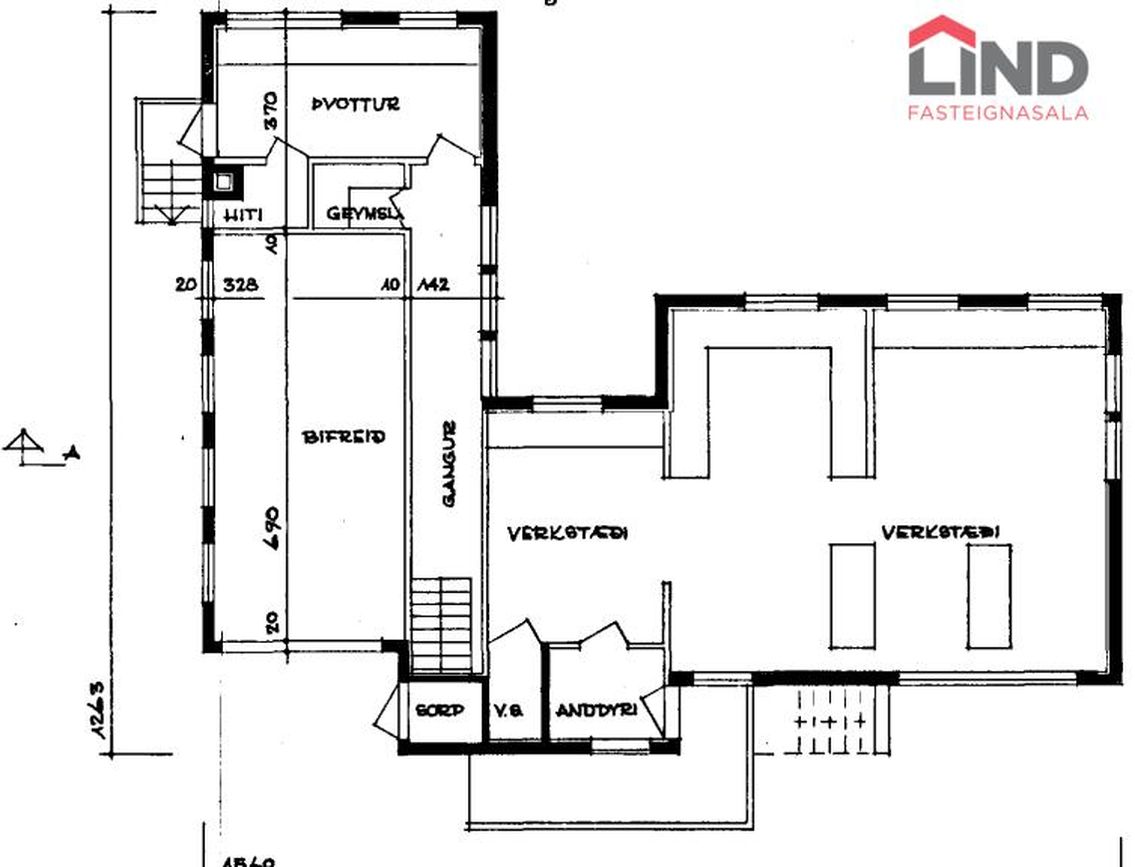 Möguleiki á að gera studio íbúð í enda bílskúrs með sérinngangi.