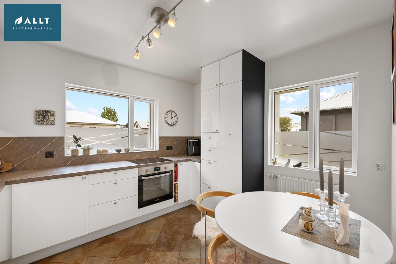 Tvö hæða hús með álklæðningu, opnu rýminu, aukaíbúð og bílskúr. Hiti í gólfi í forstofu.