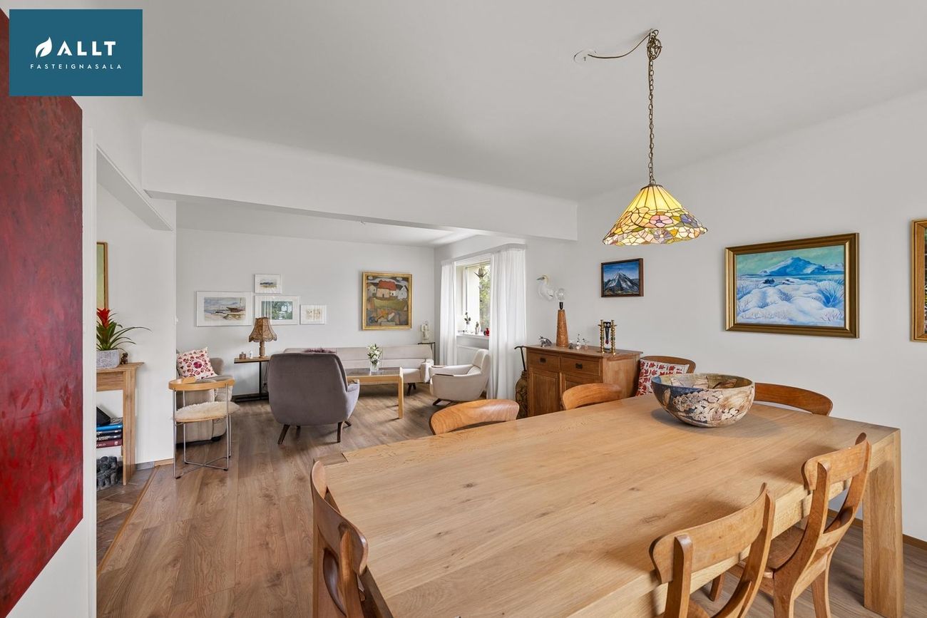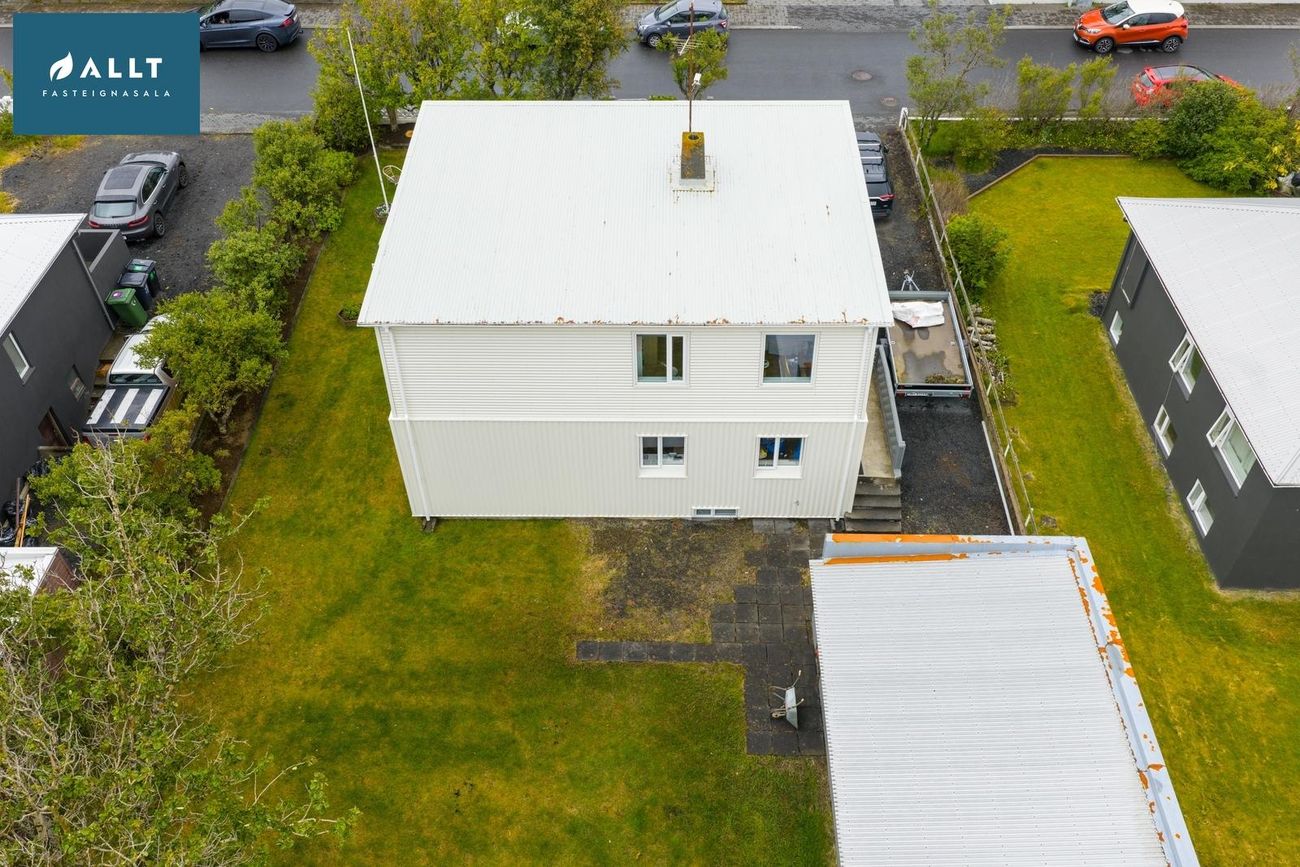 159 fm aðalíbúð með 5 svefnherbergi, 40 fm aukaíbúð með sérinngangi, 42,5 fm bílskúr með rafhleðslustöð. Mikið endurnýjað í gegnum árin.
