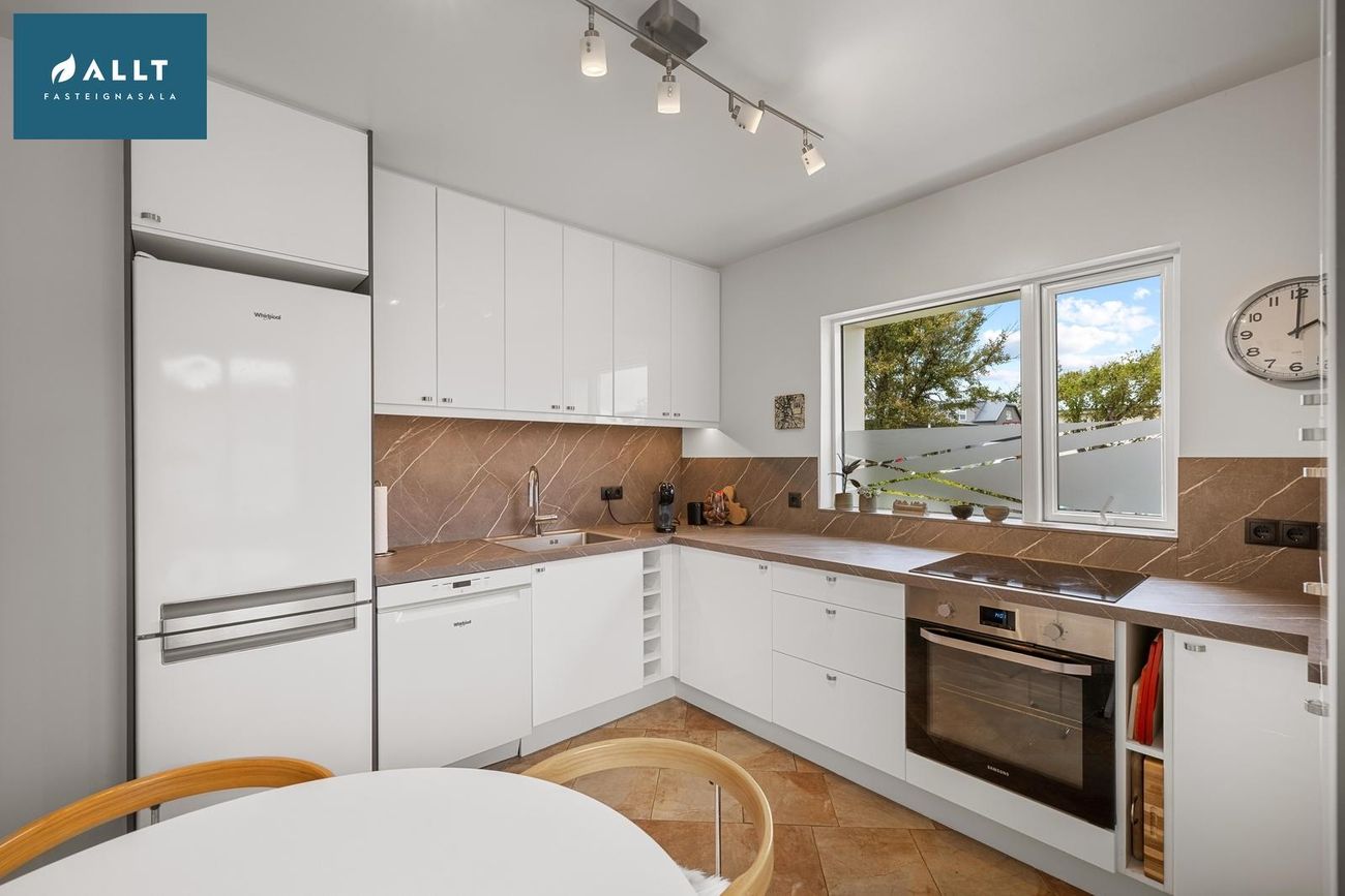 159 fm aðalíbúð með 5 svefnherbergi, 40 fm aukaíbúð með sérinngangi, 42,5 fm bílskúr með rafhleðslustöð. Mikið endurnýjað í gegnum árin.