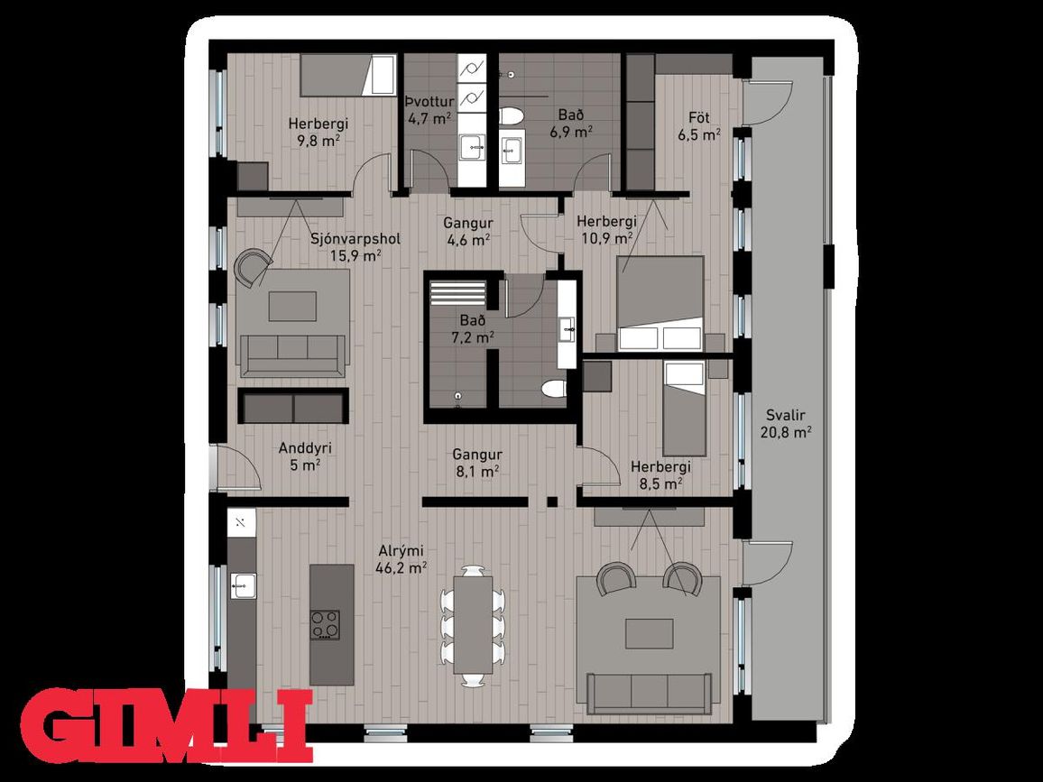 | 4 | 114,90 m² | 104.900.000 kr. 5. apríl 2026 | 61.000.000 kr. 18. mars 2020 |