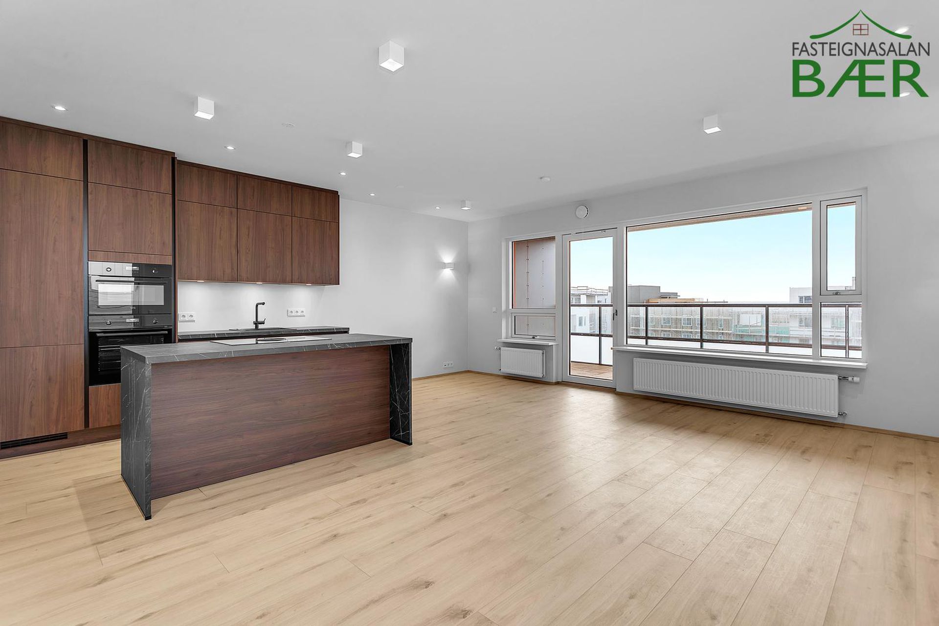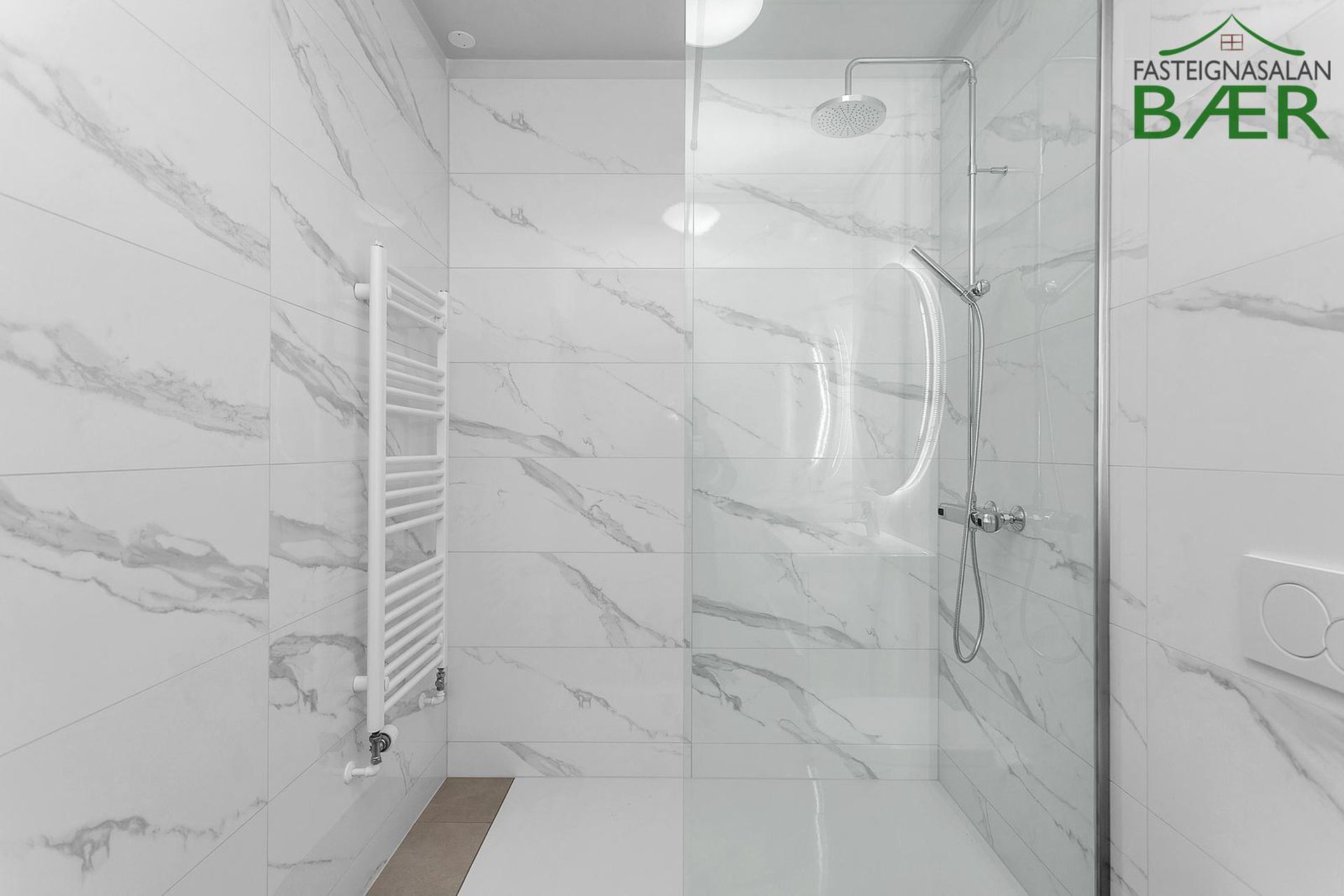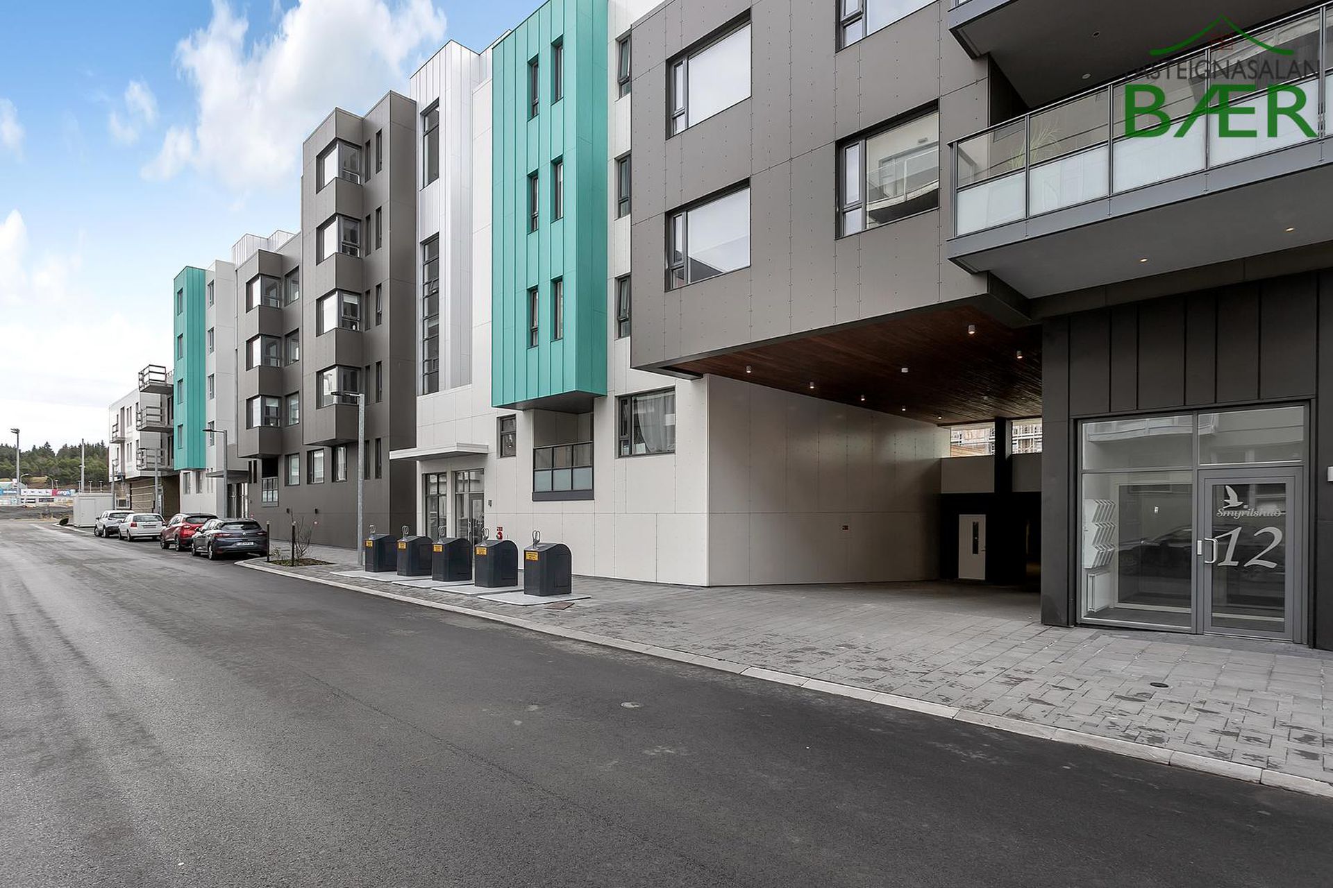 Fasteignasalan Bær kynnir: Glæsileg 4 herbergja 123,0 fm þakíbúð, ásamt 33,4 fm bílskúr alls 156,4 fm með svölum í suður og sér þakgarði í suð-vestur. Bílskúr 33,4 fm að stærð. Sér bílastæði merkt B108. Eignin afhendist fullbúin tækjum í eldhúsi, harðparketi á gólfum en flísar á votrýmum, innfelldri lýsingu, kubbaljósum ásamt veggljósum í herbergjum. Afhending eftir samkomulagi.Nánari lýsing eignar:Komið er inn frá sameign í rúmgott hol með skápum. Eldhús opið inn í stofu/borðstofu. Eldhúsinnrétting frá GKS. Eldhúsvaskur og blöndunartæki eru svört. Raftæki í eldhúsi eru frá AEG; kæliskápur með frysti, uppþvottavél, spanhelluborð, veggofn og combi ofn. Eyjuháfur yfir helluborði. Á baðherbergi eru hvítar innréttingar, spegill með baklýsingu er yfir handlaug. Handklæðaofn, sturta með föstu gleri, flísalagt í hólf og gólf. Þvottahús innan íbúðar með stálvaski og fráleggsborði, gólf flísalagt. Í svefnherbergjum og forstofu eru hvítir fataskápar. Gólfefni íbúðar er ljóst harðparket en gegnheilar flísar á vorýmum. Hurðir og karmar eru eikarhurðir, sólbekkir hvítir og plastlagðir. Eigninni fylgir sér geymsla í kjallara. Bílskúr og bílastæði inni í bílastæðahúsi, þar er einnig uppsett grunnkerfi fyrir rafbílahleðslu. Ljósleiðari er dreginn í tengikassa hverrar íbúðar.Eignin er til afhendingar eftir samkomulagi.Smyrilshlíð 14 er 5 hæða lyftuhús með 14 íbúðum, auk kjallara með sérgeymslum og bílastæðum og bílskúrum þar sem við á. Aðalhönnuður er KRark, Kristinn Ragnarsson arkitekt. Innangengt er úr bílageymslu inn í stigagang. Á jarðhæð er aðalinngangur hússins, póstkassar og mynddyrasímar eru í anddyri. Úr anddyri er gengið inn í stigahús að lyftu ásamt sérgeymslum íbúða. Húsið afhendist fullbúið að utan, ásamt lóð og bílastæði. Þak er steinsteypt með ásoðnum tjörupappa og einangrað með þrýstieinangrun (Roofmate), pallar og gras er á þakgörðum en grjót á öðrum svæðum. Svalir eru staðsteyptar, svalahandrið úr álprófílum og gleri og svalagólf með viðarstiklum. Húsið er fulleinangrað að utan og klætt með álklæðningu. Gluggar og hurðir eru úr timbri, málaðir að innan en áklæddir að utan. Bílastæði eru malbikuð og hitalögn er í gagnstéttum. Sorpgeymslur eru niðurfelldar í gangstéttar við götu.Nánari upplýsingar gefur Páll Guðjónsson lögg. fasteignasali í síma 699 4994 eða á netfangið Gjöld sem kaupandi þarf að standa straum af vegna kaupanna:1. Stimpilgjald af kaupsamningi - 0.8% af heildarfasteignamati / 1.6% fyrir lögaðila. (0.4% við fyrstu kaup einstaklinga).2. Þinglýsingagjald af kaupsamningi, veðskuldabréfi, veðleyfi o.fl.- kr. 2.700 af hverju skjali.3. Lántökugjald lánastofnunar - almennt (en þó breytilegt) 1,0% af höfuðstól skuldabréfs.4. Umsýsluþóknun til fasteignasölu, sbr. kauptilboð.
