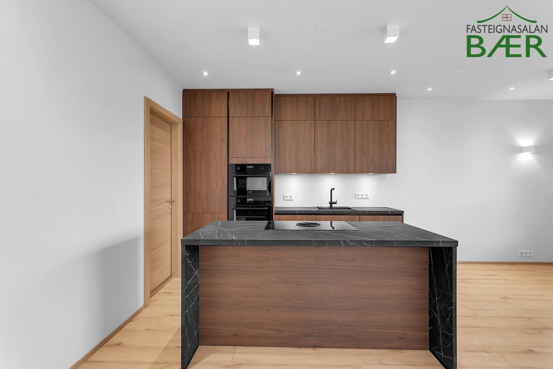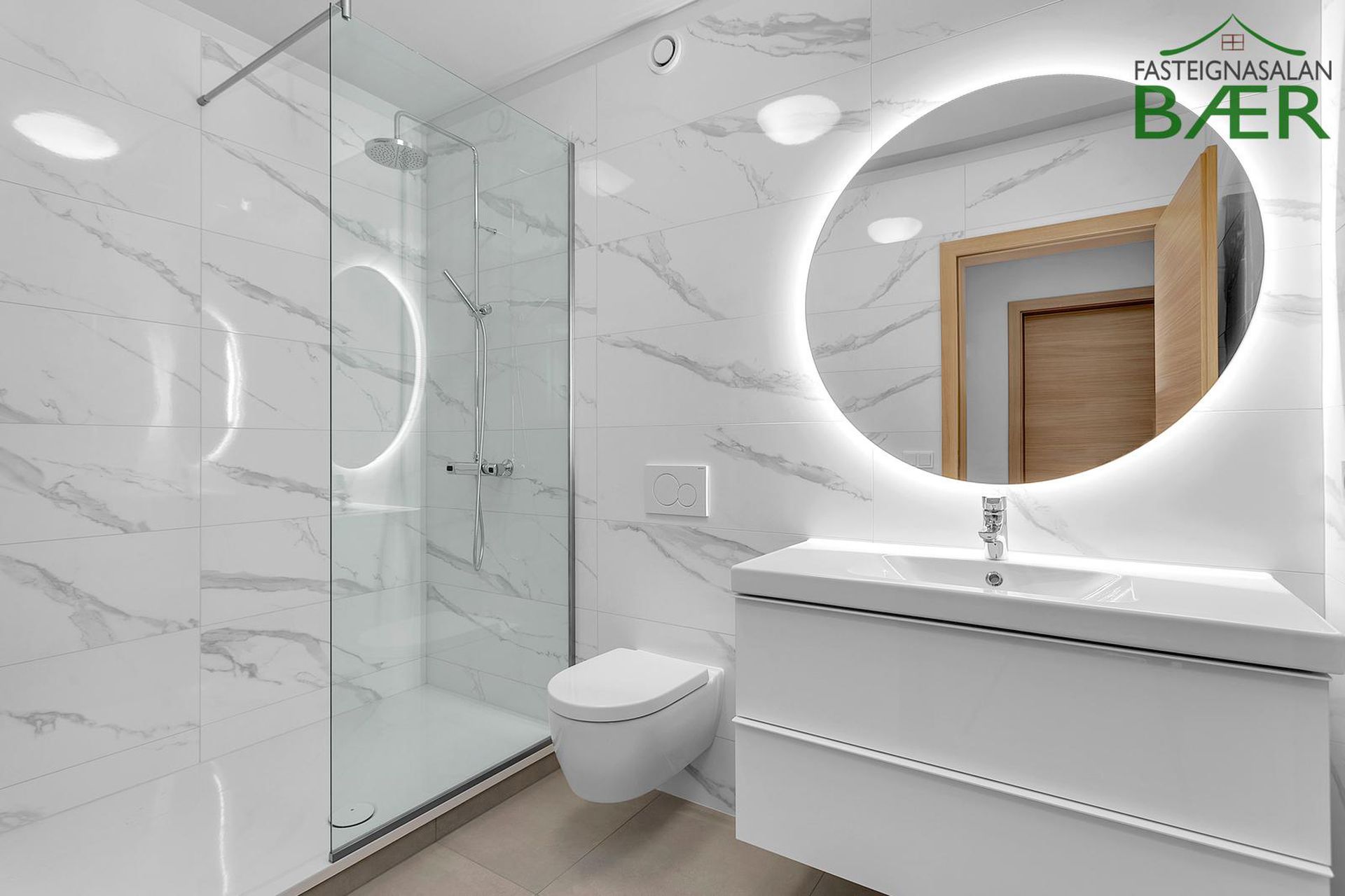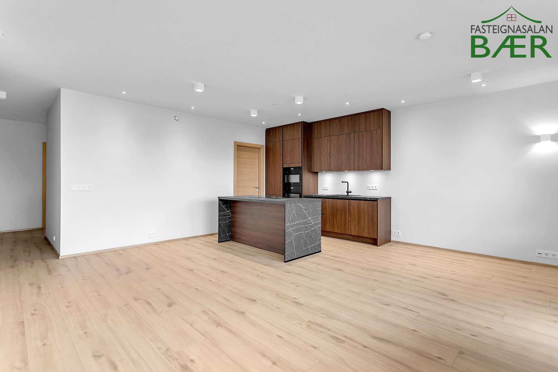 Fasteignasalan Bær kynnir: Glæsileg 4 herbergja 123,0 fm þakíbúð, ásamt 33,4 fm bílskúr alls 156,4 fm með svölum í suður og sér þakgarði í suð-vestur. Bílskúr 33,4 fm að stærð. Sér bílastæði merkt B108. Eignin afhendist fullbúin tækjum í eldhúsi, harðparketi á gólfum en flísar á votrýmum, innfelldri lýsingu, kubbaljósum ásamt veggljósum í herbergjum. Afhending eftir samkomulagi.Nánari lýsing eignar:Komið er inn frá sameign í rúmgott hol með skápum. Eldhús opið inn í stofu/borðstofu. Eldhúsinnrétting frá GKS. Eldhúsvaskur og blöndunartæki eru svört. Raftæki í eldhúsi eru frá AEG; kæliskápur með frysti, uppþvottavél, spanhelluborð, veggofn og combi ofn. Eyjuháfur yfir helluborði. Á baðherbergi eru hvítar innréttingar, spegill með baklýsingu er yfir handlaug. Handklæðaofn, sturta með föstu gleri, flísalagt í hólf og gólf. Þvottahús innan íbúðar með stálvaski og fráleggsborði, gólf flísalagt. Í svefnherbergjum og forstofu eru hvítir fataskápar. Gólfefni íbúðar er ljóst harðparket en gegnheilar flísar á vorýmum. Hurðir og karmar eru eikarhurðir, sólbekkir hvítir og plastlagðir. Eigninni fylgir sér geymsla í kjallara. Bílskúr og bílastæði inni í bílastæðahúsi, þar er einnig uppsett grunnkerfi fyrir rafbílahleðslu. Ljósleiðari er dreginn í tengikassa hverrar íbúðar.Eignin er til afhendingar eftir samkomulagi.Smyrilshlíð 14 er 5 hæða lyftuhús með 14 íbúðum, auk kjallara með sérgeymslum og bílastæðum og bílskúrum þar sem við á. Aðalhönnuður er KRark, Kristinn Ragnarsson arkitekt. Innangengt er úr bílageymslu inn í stigagang. Á jarðhæð er aðalinngangur hússins, póstkassar og mynddyrasímar eru í anddyri. Úr anddyri er gengið inn í stigahús að lyftu ásamt sérgeymslum íbúða. Húsið afhendist fullbúið að utan, ásamt lóð og bílastæði. Þak er steinsteypt með ásoðnum tjörupappa og einangrað með þrýstieinangrun (Roofmate), pallar og gras er á þakgörðum en grjót á öðrum svæðum. Svalir eru staðsteyptar, svalahandrið úr álprófílum og gleri og svalagólf með viðarstiklum. Húsið er fulleinangrað að utan og klætt með álklæðningu. Gluggar og hurðir eru úr timbri, málaðir að innan en áklæddir að utan. Bílastæði eru malbikuð og hitalögn er í gagnstéttum. Sorpgeymslur eru niðurfelldar í gangstéttar við götu.Nánari upplýsingar gefur Páll Guðjónsson lögg. fasteignasali í síma 699 4994 eða á netfangið Gjöld sem kaupandi þarf að standa straum af vegna kaupanna:1. Stimpilgjald af kaupsamningi - 0.8% af heildarfasteignamati / 1.6% fyrir lögaðila. (0.4% við fyrstu kaup einstaklinga).2. Þinglýsingagjald af kaupsamningi, veðskuldabréfi, veðleyfi o.fl.- kr. 2.700 af hverju skjali.3. Lántökugjald lánastofnunar - almennt (en þó breytilegt) 1,0% af höfuðstól skuldabréfs.4. Umsýsluþóknun til fasteignasölu, sbr. kauptilboð.
