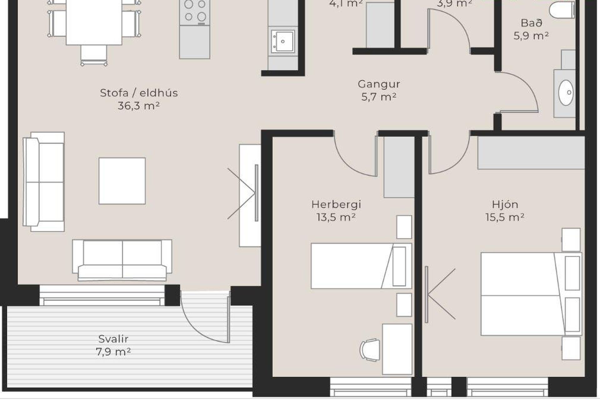 | 2 | 62,30 m² | 69.900.000 kr. 2. apríl 2024 | 68.900.000 kr. 5. júní 2024 |