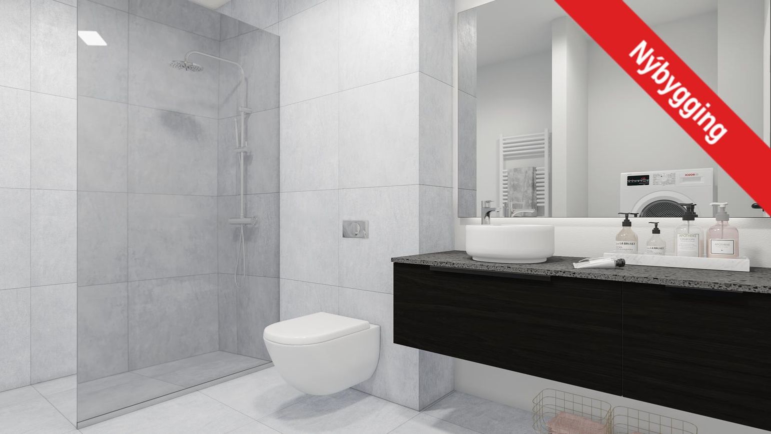 Íbúð á efstu hæð í 6 íbúða húsi með aukna lofthæð (2,8m), Velfac gluggakerfi, parketgólf og sérstakt rafmagn fyrir rafbíla. Innréttingar úr eikarspóni og PU-lakki.