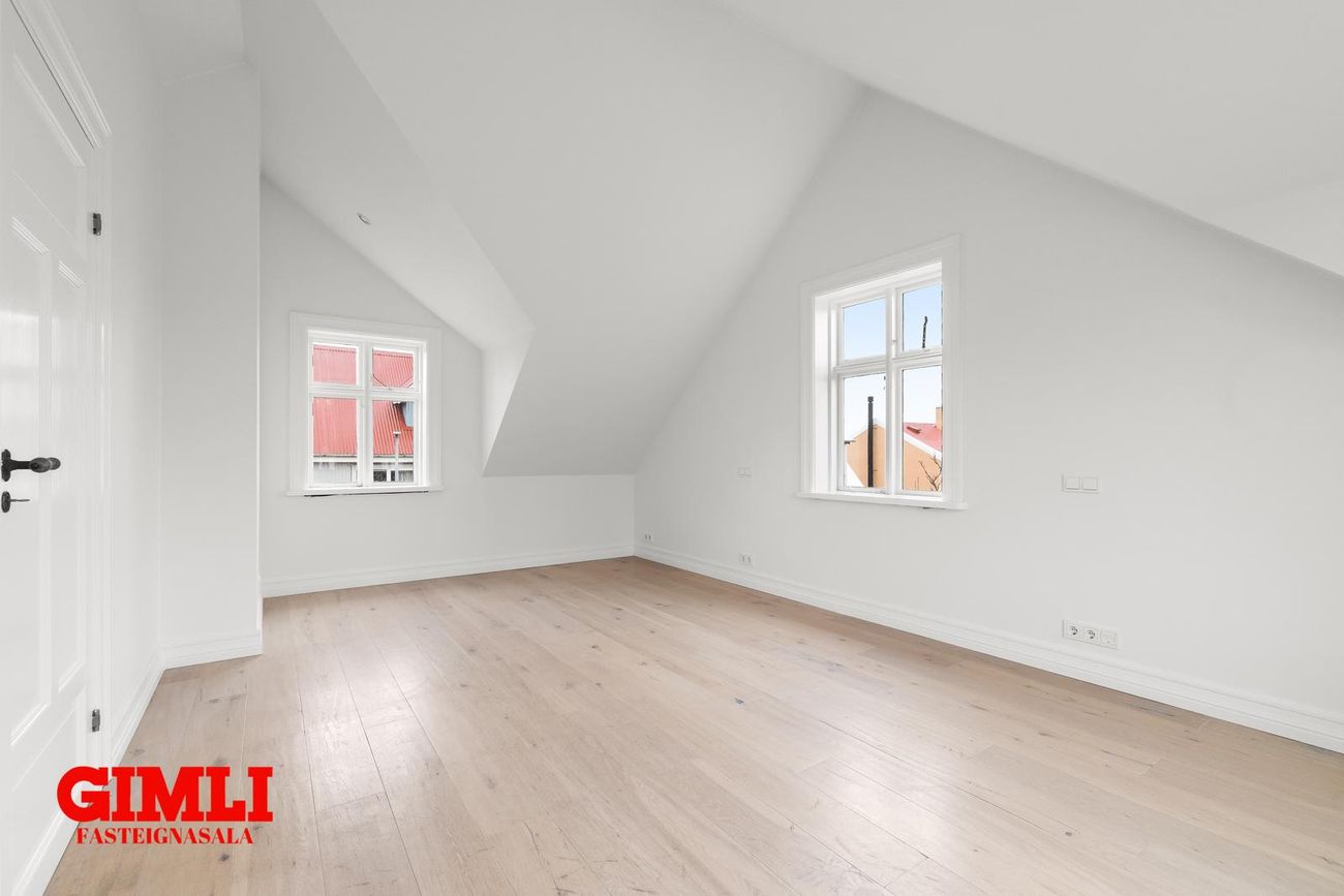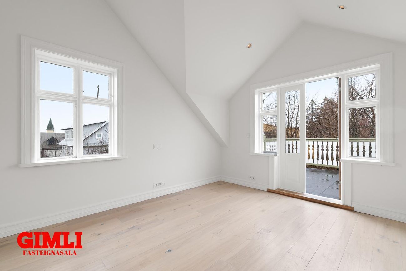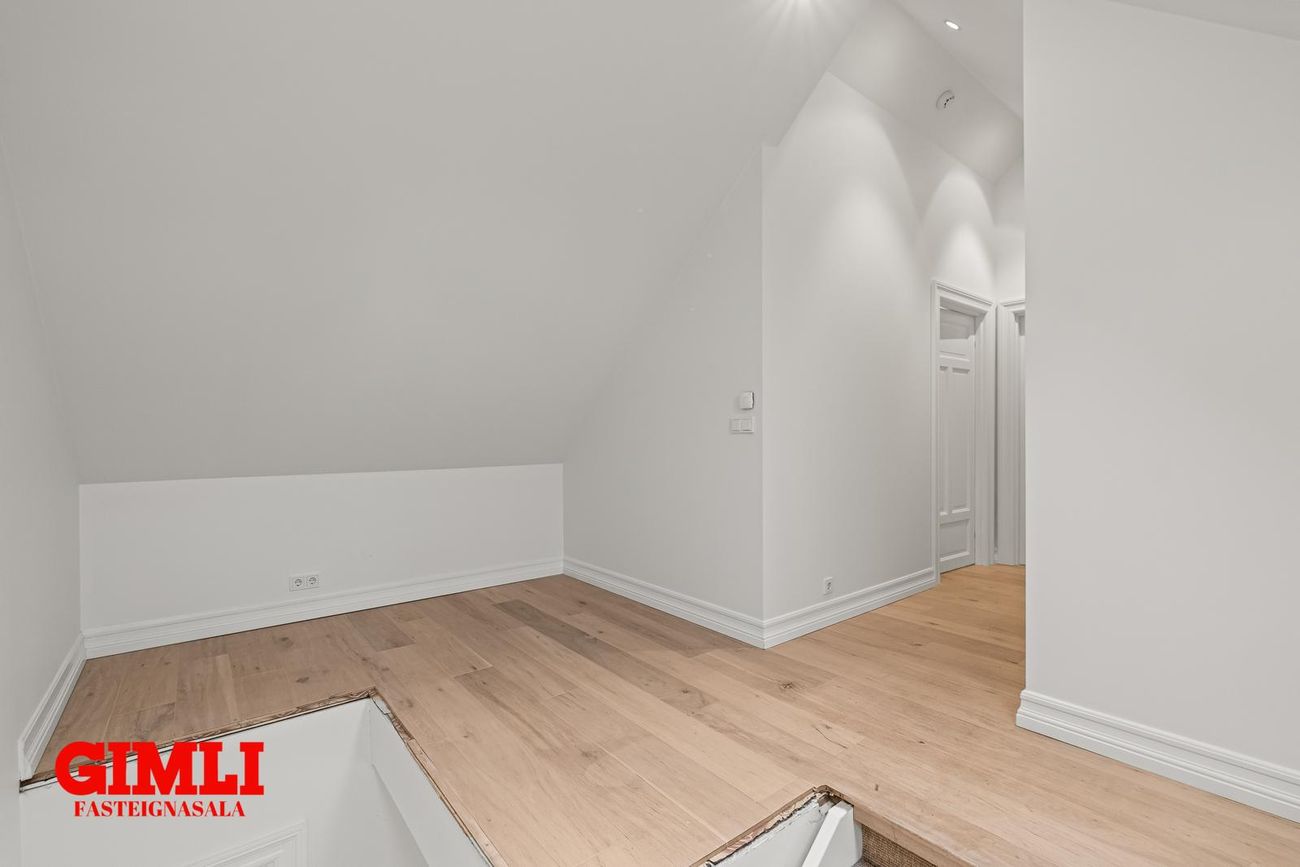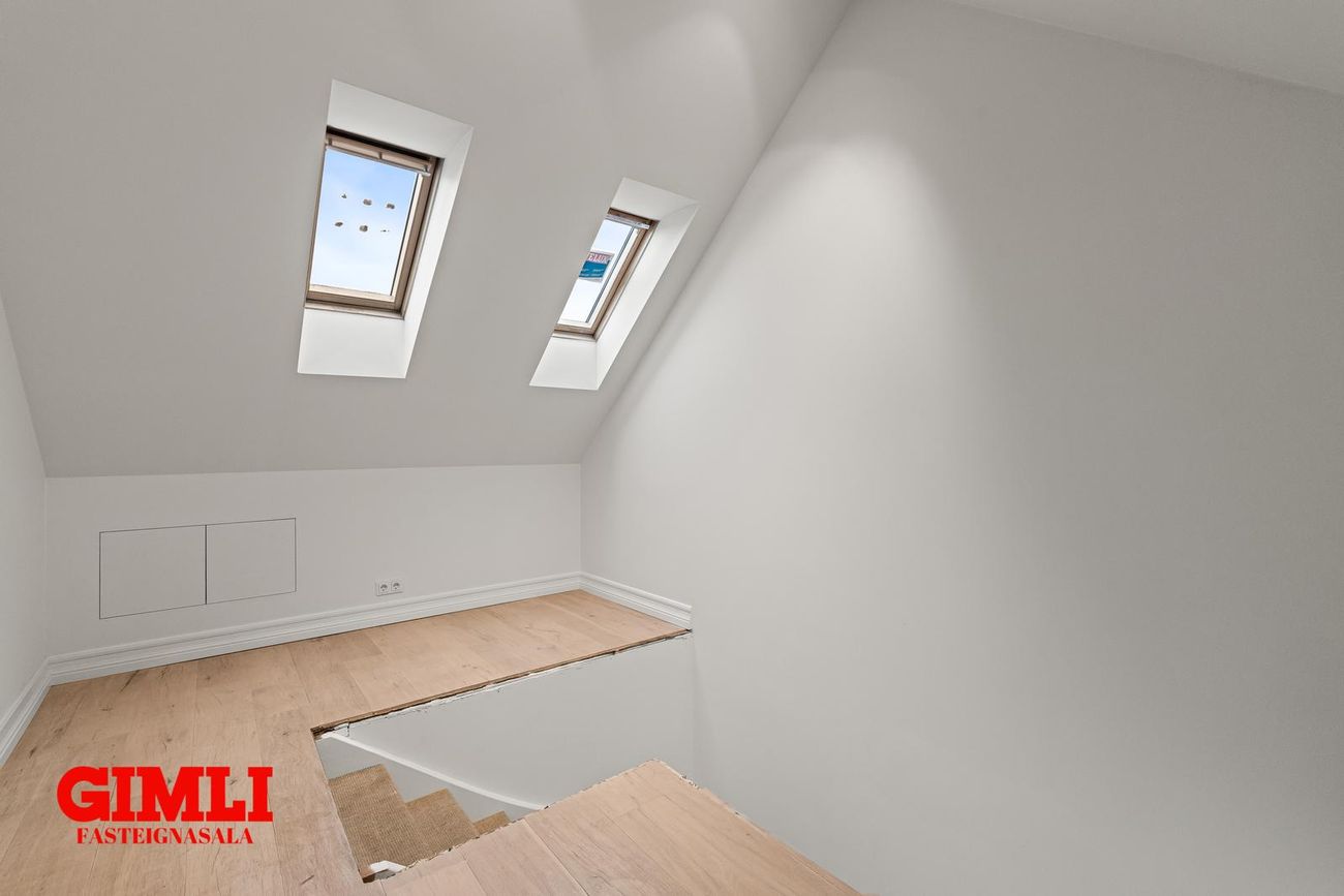Mikil lofthæð og fallegir kvistir í allri hæðinni, innbyggð lýsing í loftum.
