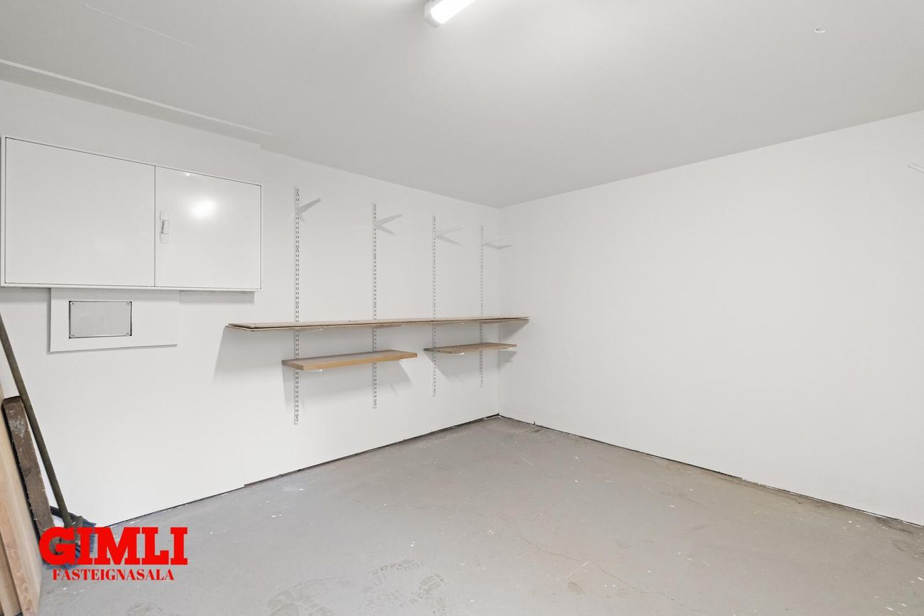 Kjallarinn er með mjög plássgóðum geymslum 11 fm og 13,5 fm og eru þar lagnir aðgengilegar ásamt aðalrafmagnstöflu hússins .