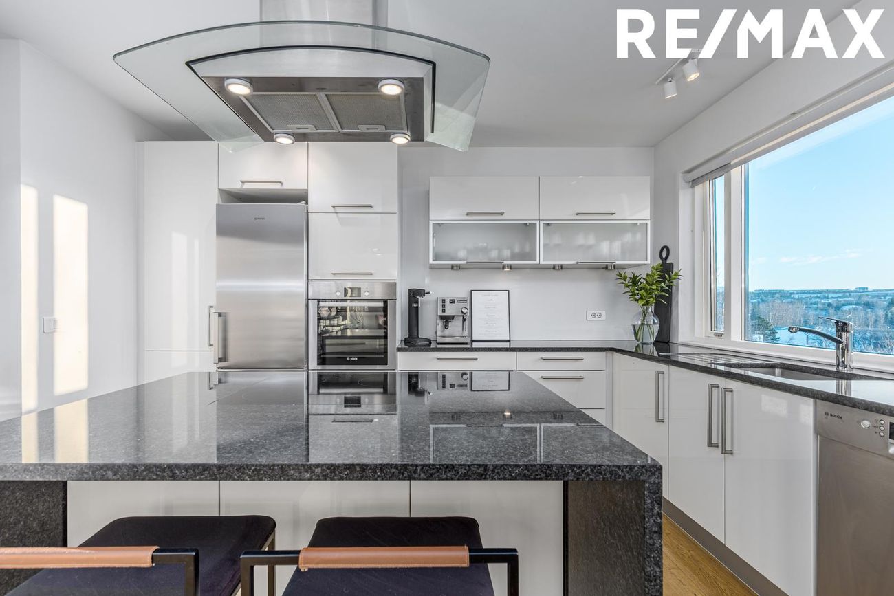 Opið eldhús með eyju, granít borðplötu, vönduðu helluborði og viftu. Gott skápapláss, parket á gólfum. Uppþvottavél fylgir. Í sameiginlegu rými með stofu/borðstofu.
