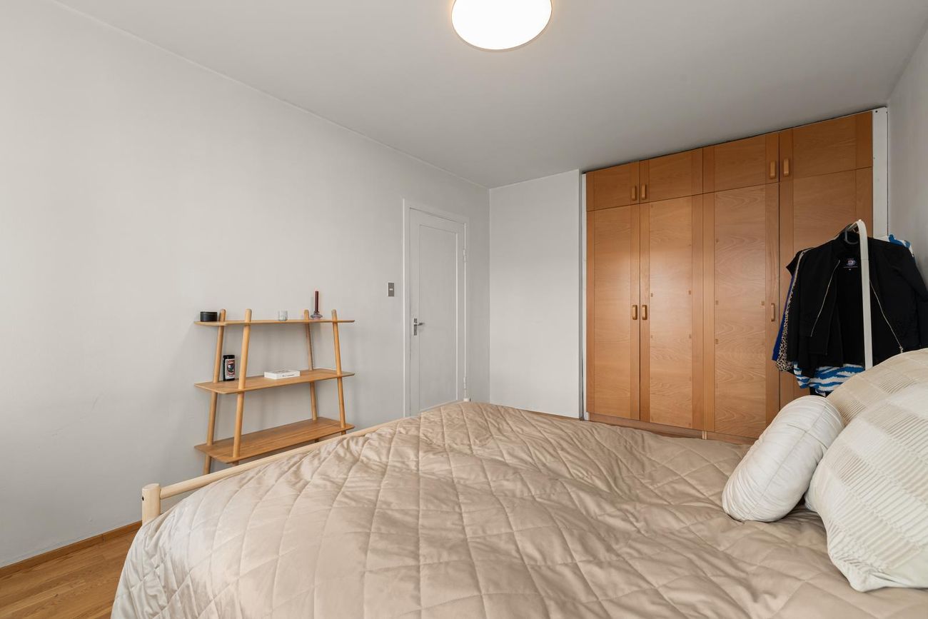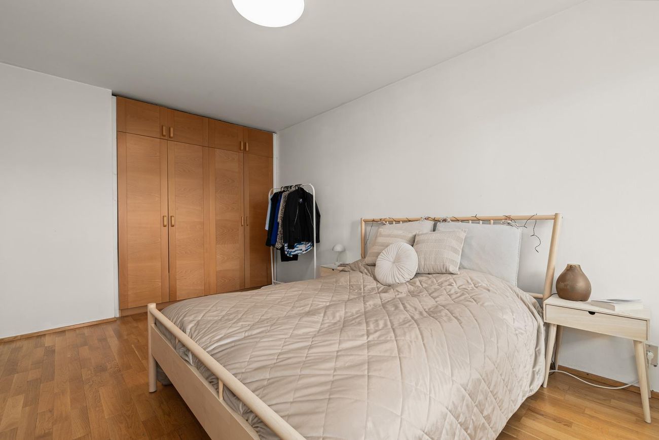 Herbergi er mjög stórt og með innfelldum viðarfataskápum. Parket á gólfi. Útgengi er út á steyptar SA-svalir.