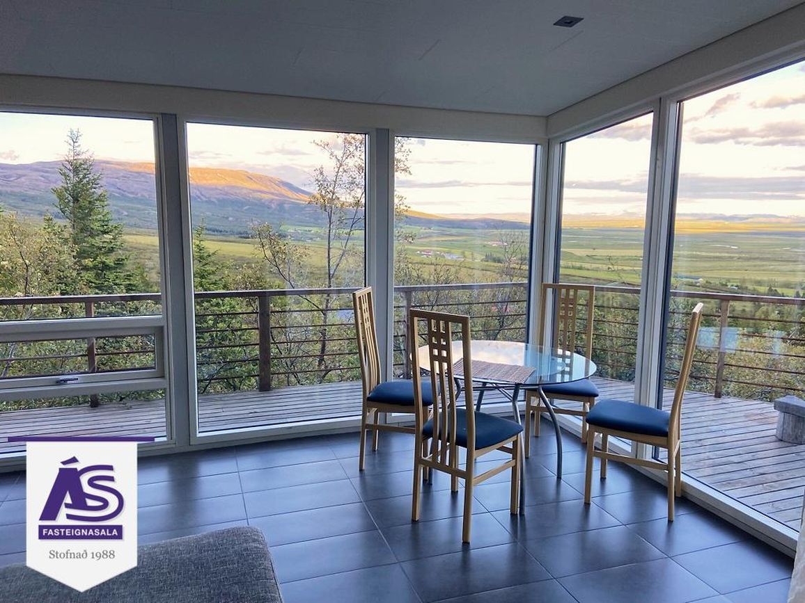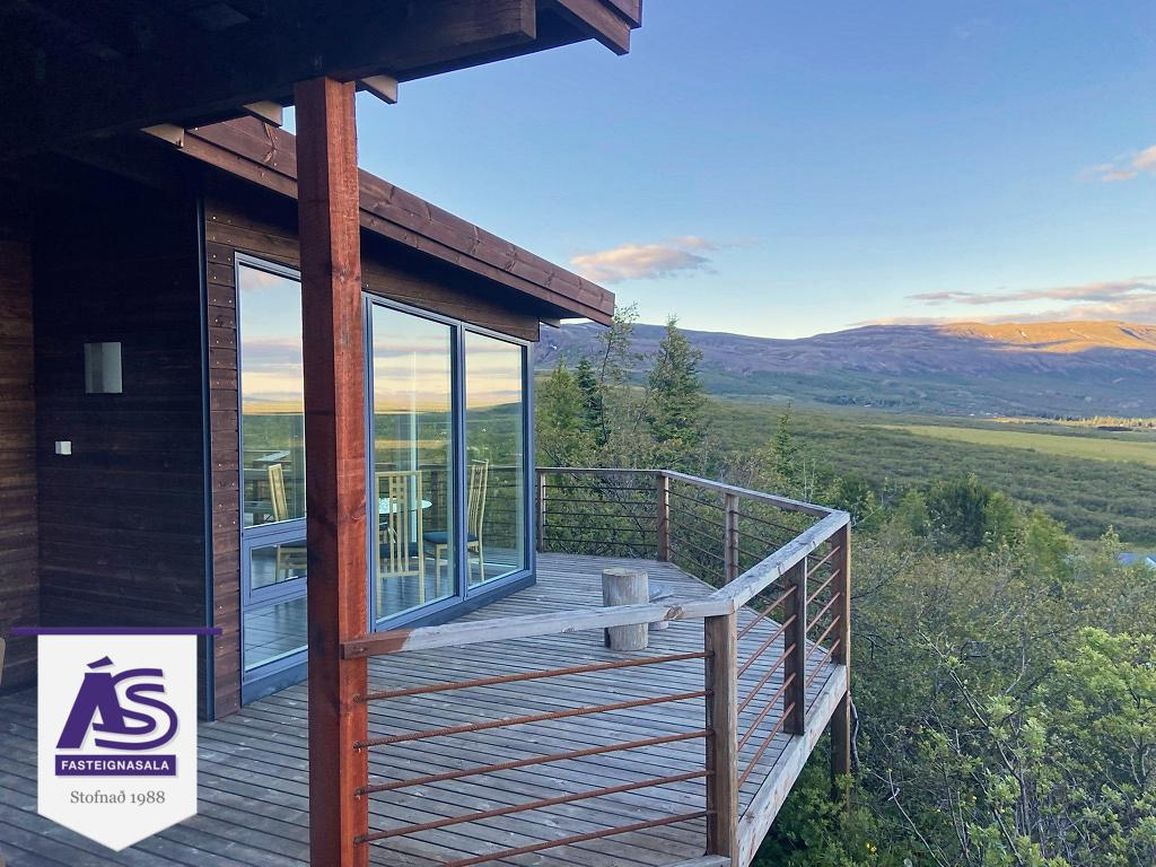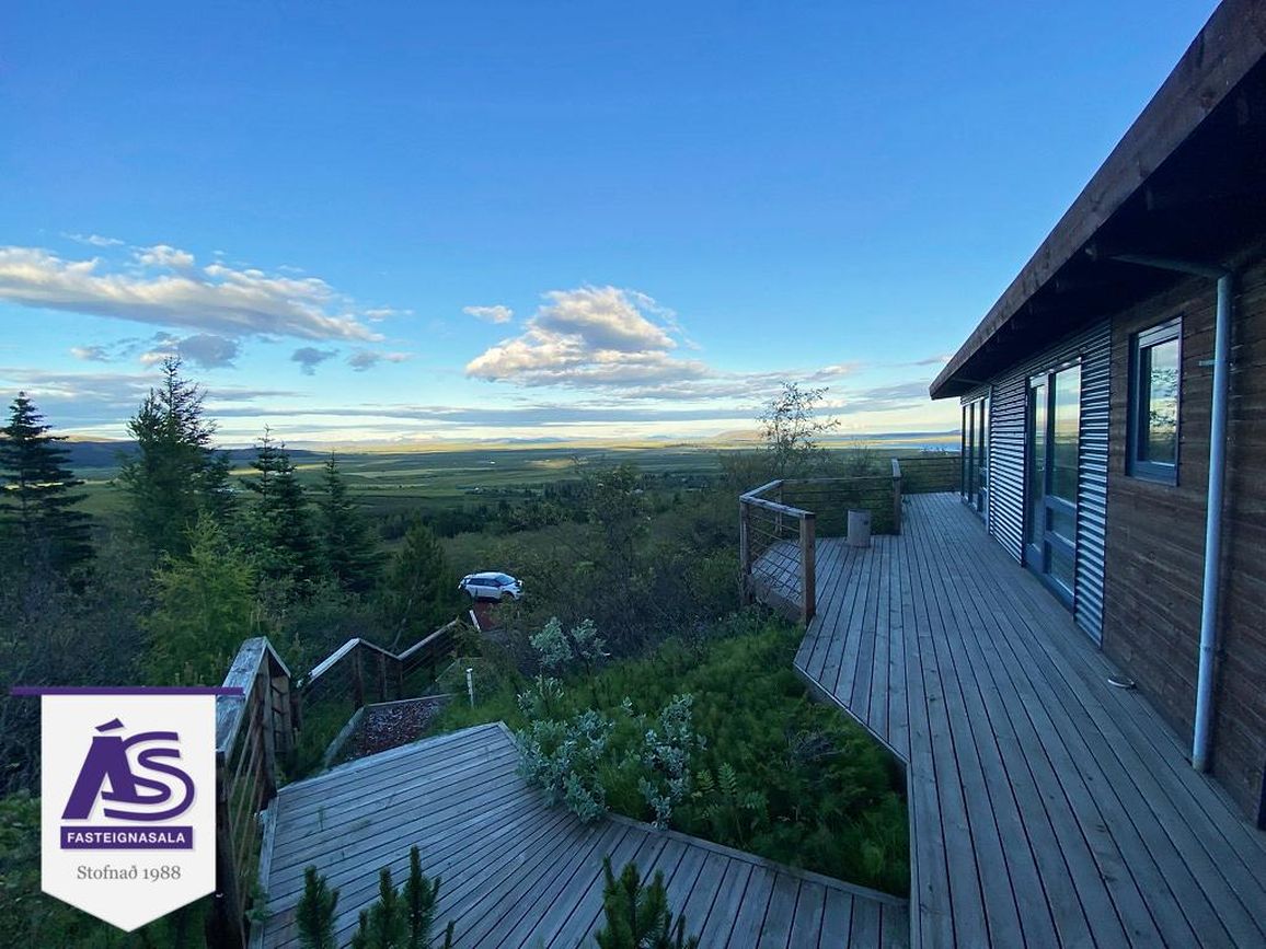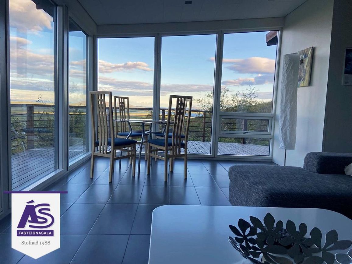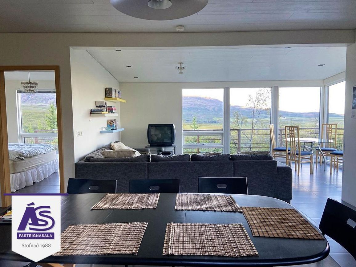 Fallegt og vel skipulagt heilárs sumarhús á þessum vinsæla stað í landi Snorrastaða rétt við Laugarvatn. Húsið er staðsett á einstökum útsýnisstað þar sem gott útsýni er yfir hluta af uppsveitum suðurlands í átt að Heklu og víðar. Húsið er 99.6 fm að stærð á einni hæð á eignarlóð. Forstofa/hol/gangur með flísum á gólfi og fatahengi. Stofan er með flísum á gólfi, fallegt útsýni. Eldhúsið er opið í stofuna, flísar á gólfi, háfur, helluborð og stæði fyrir uppþvottavél. Þrjú herbergi (eitt er gestaherbergi með sér inngang) með flísum og p.parket á gólfi, skápar í einu herberginu. Baðherbergi með flísum á gólfi og á vegg við sturtuna, skápur, wc í vegg, gluggi. Útigeymsla með flísum á gólfi.