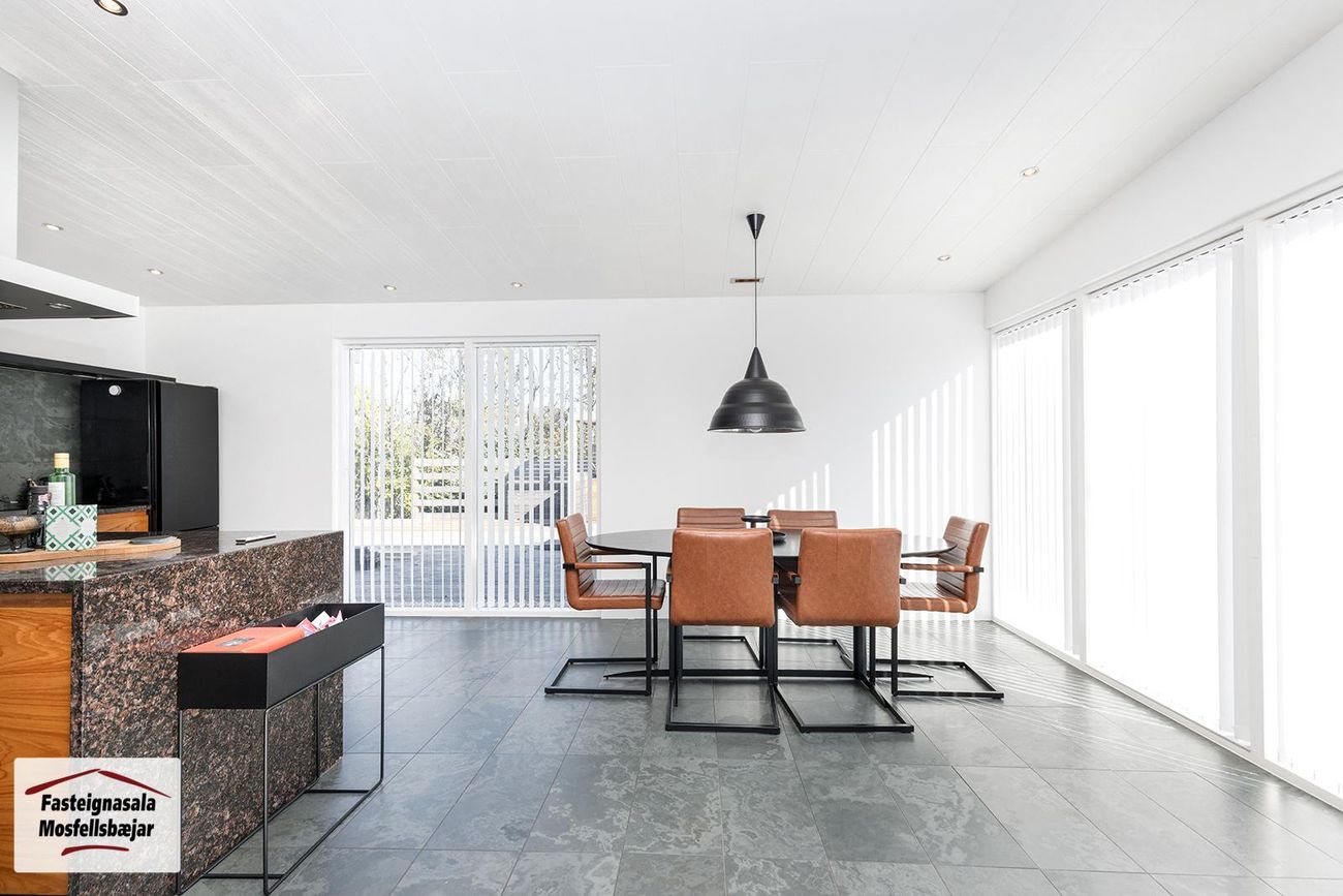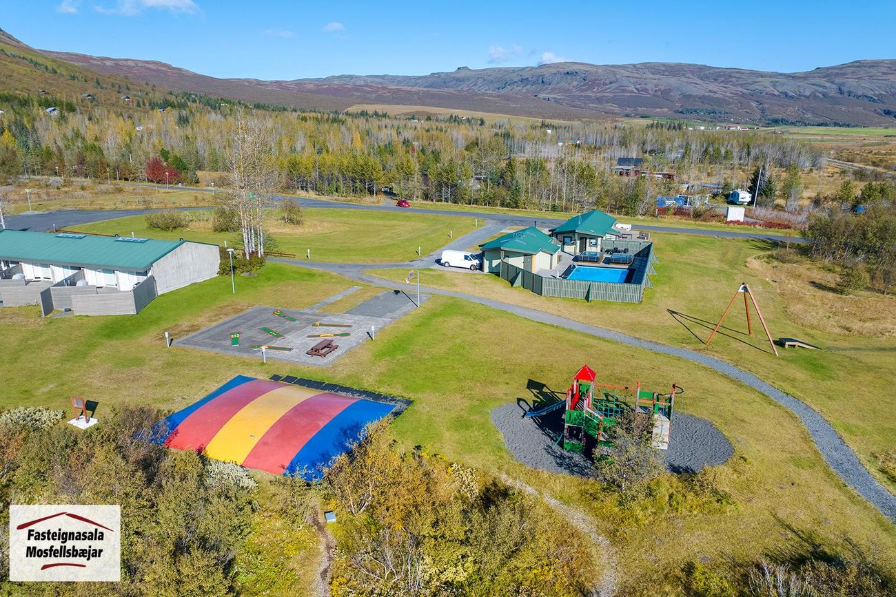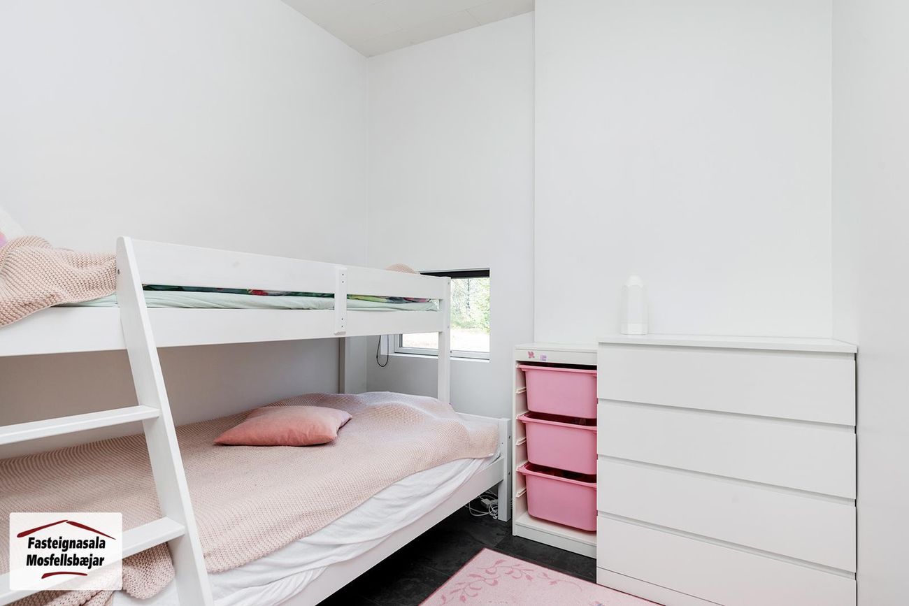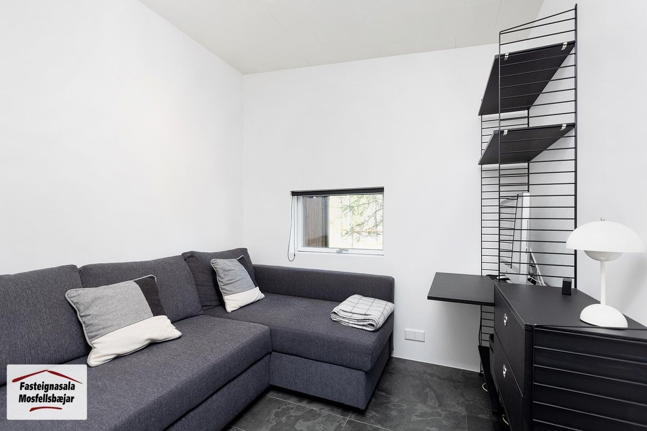 Ytri geymsla 4,6 m2 með hiti og rafmagni. Viðbótargeymsla undir verönd.