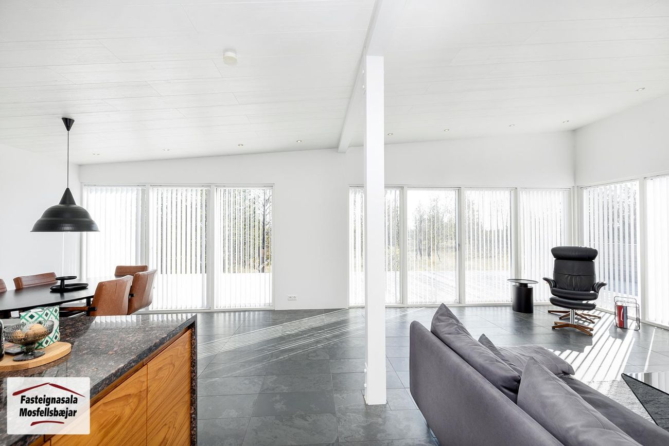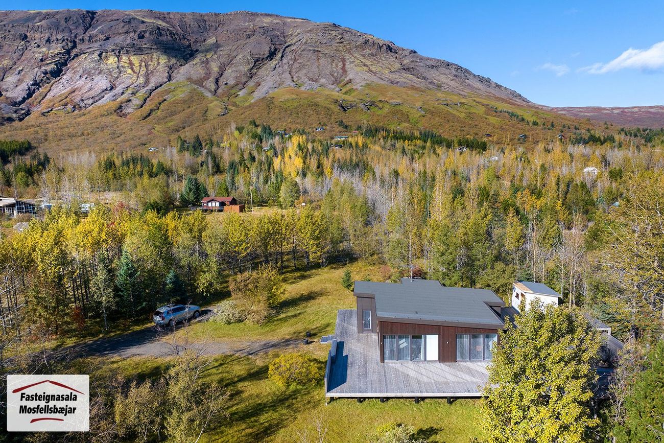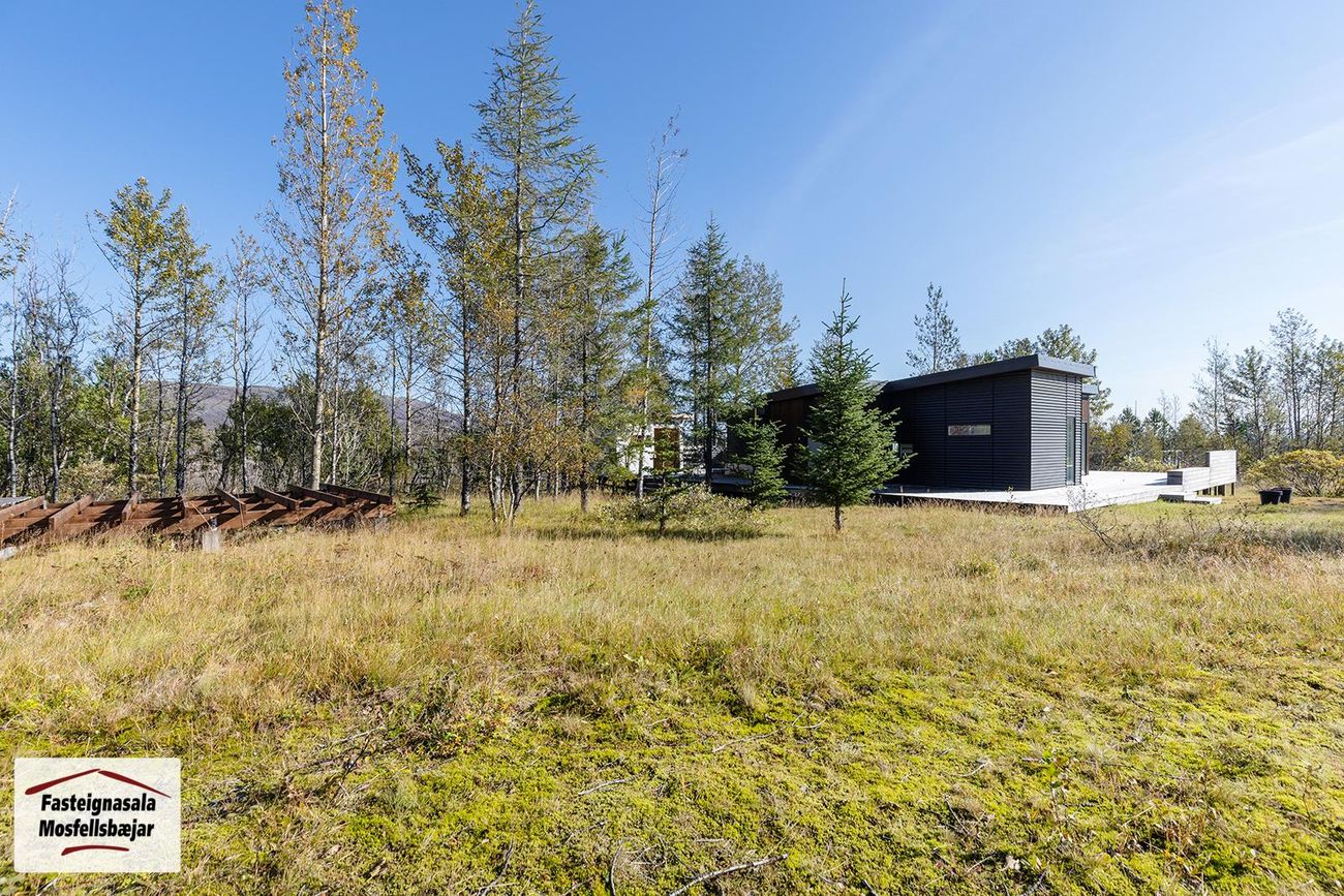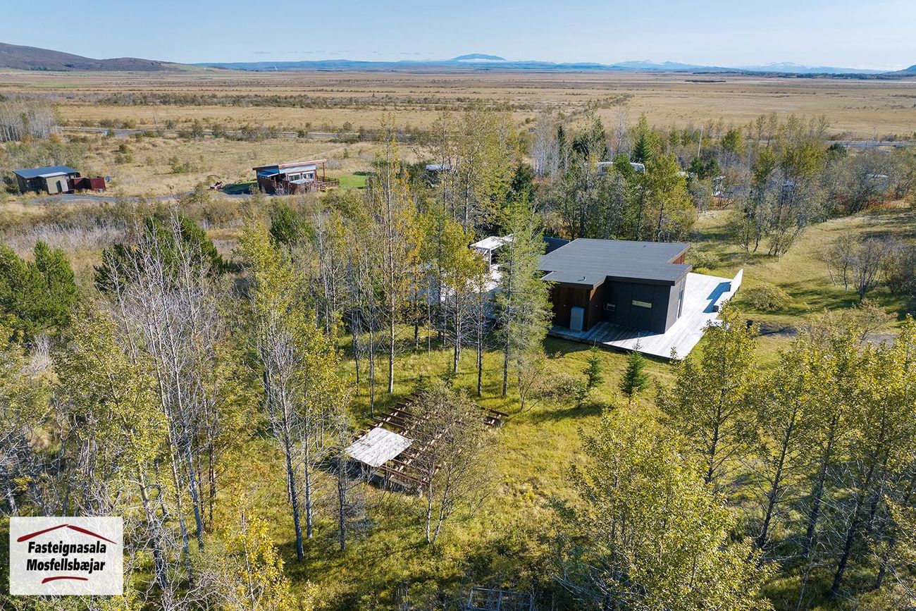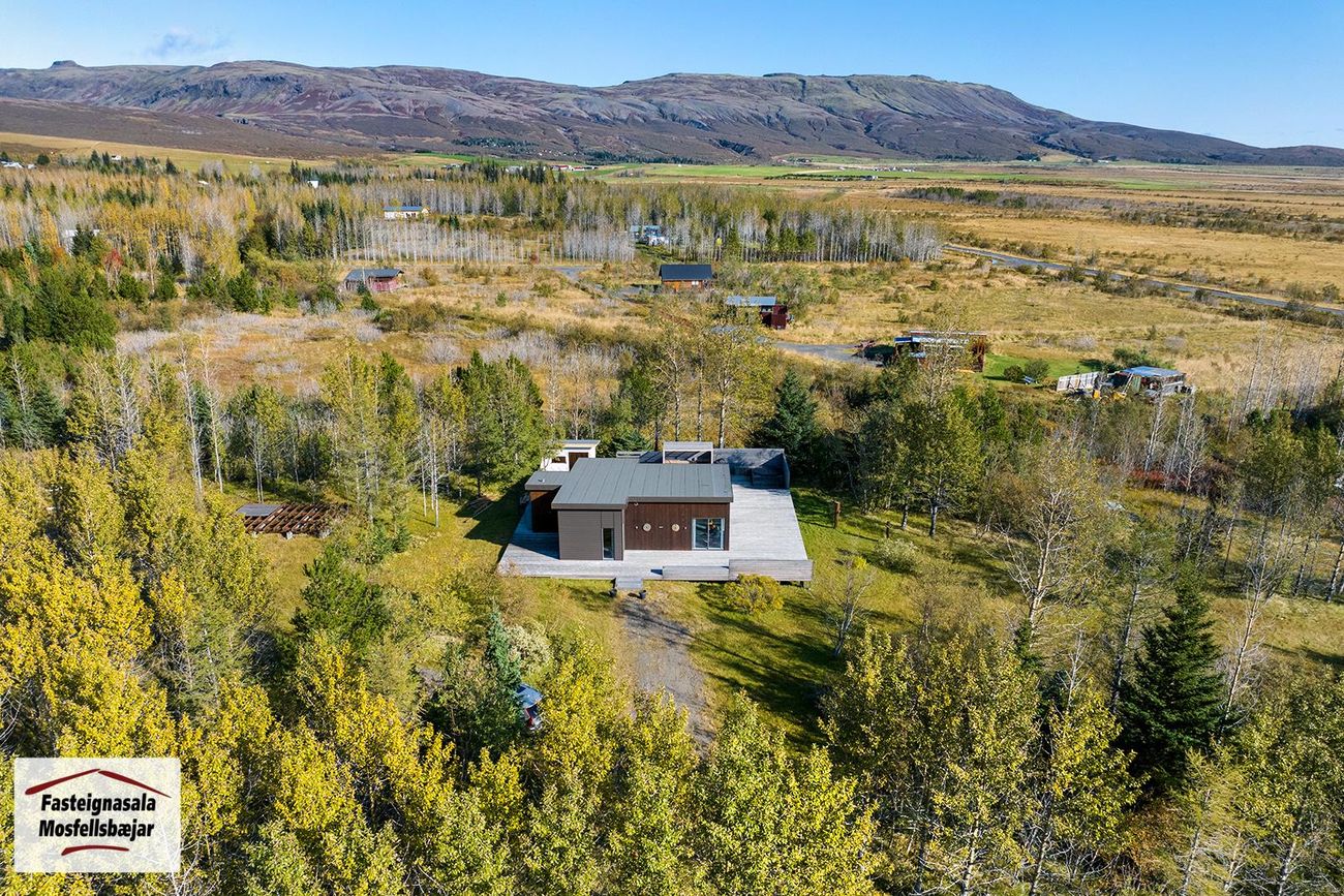 Heilsárshús/sumarhús með opnu rými, timburverönd og náttúrunálægð. Innfelld lýsing, góð lofthæð og Danfoss hitastýring.