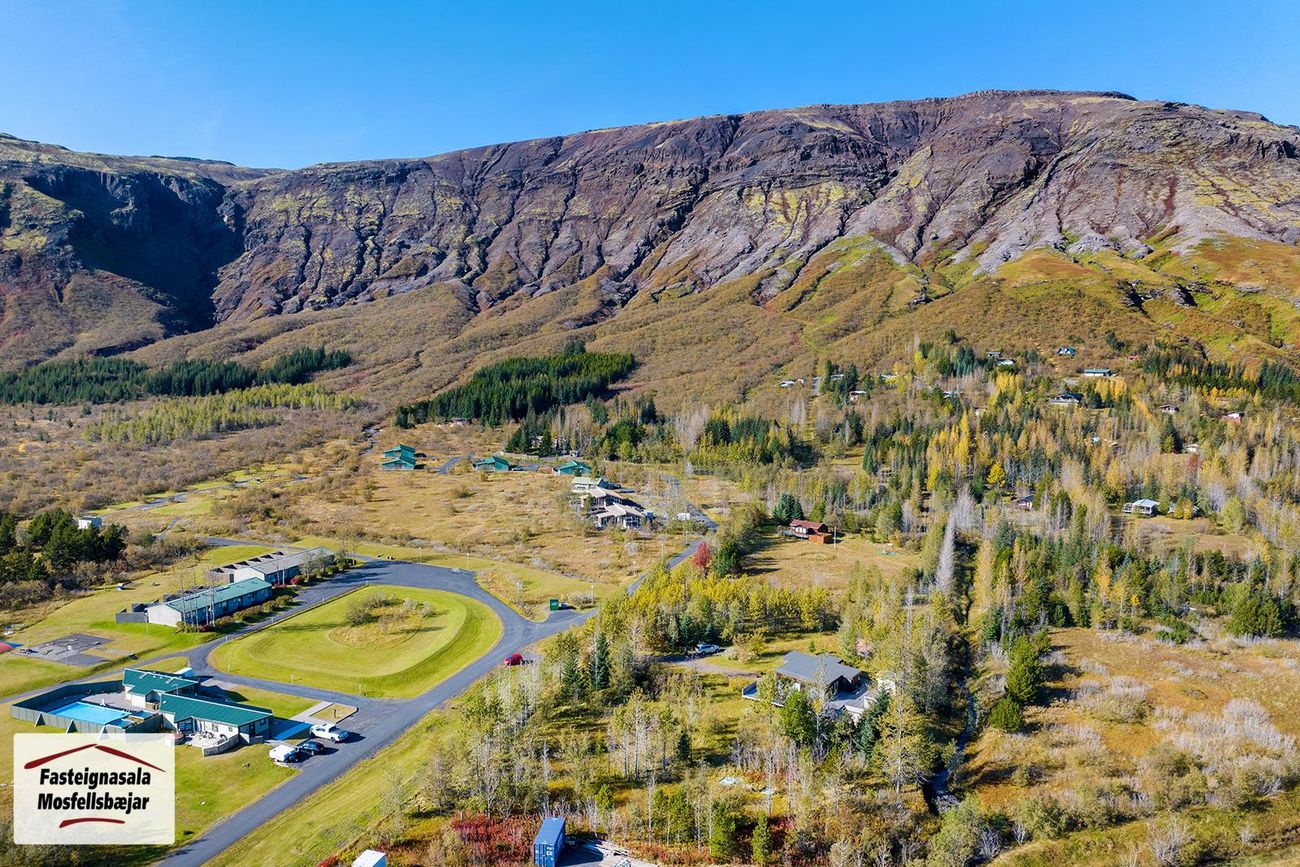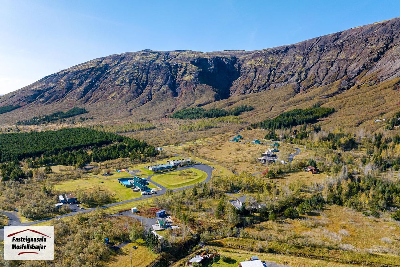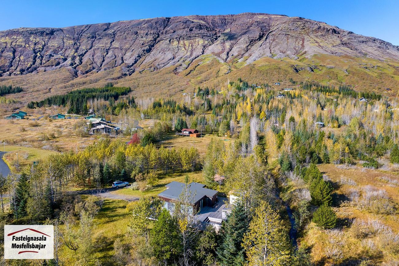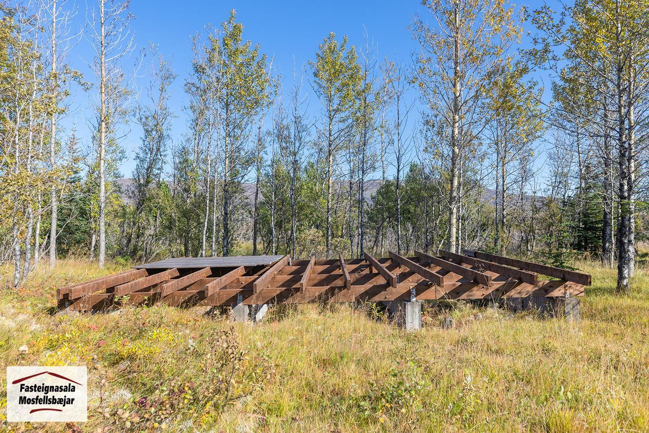 5.000 m2 lóð með timburverönd, heitum potti, útieldhúsi og steyptum burðarbitum fyrir framtíðar gestahús.