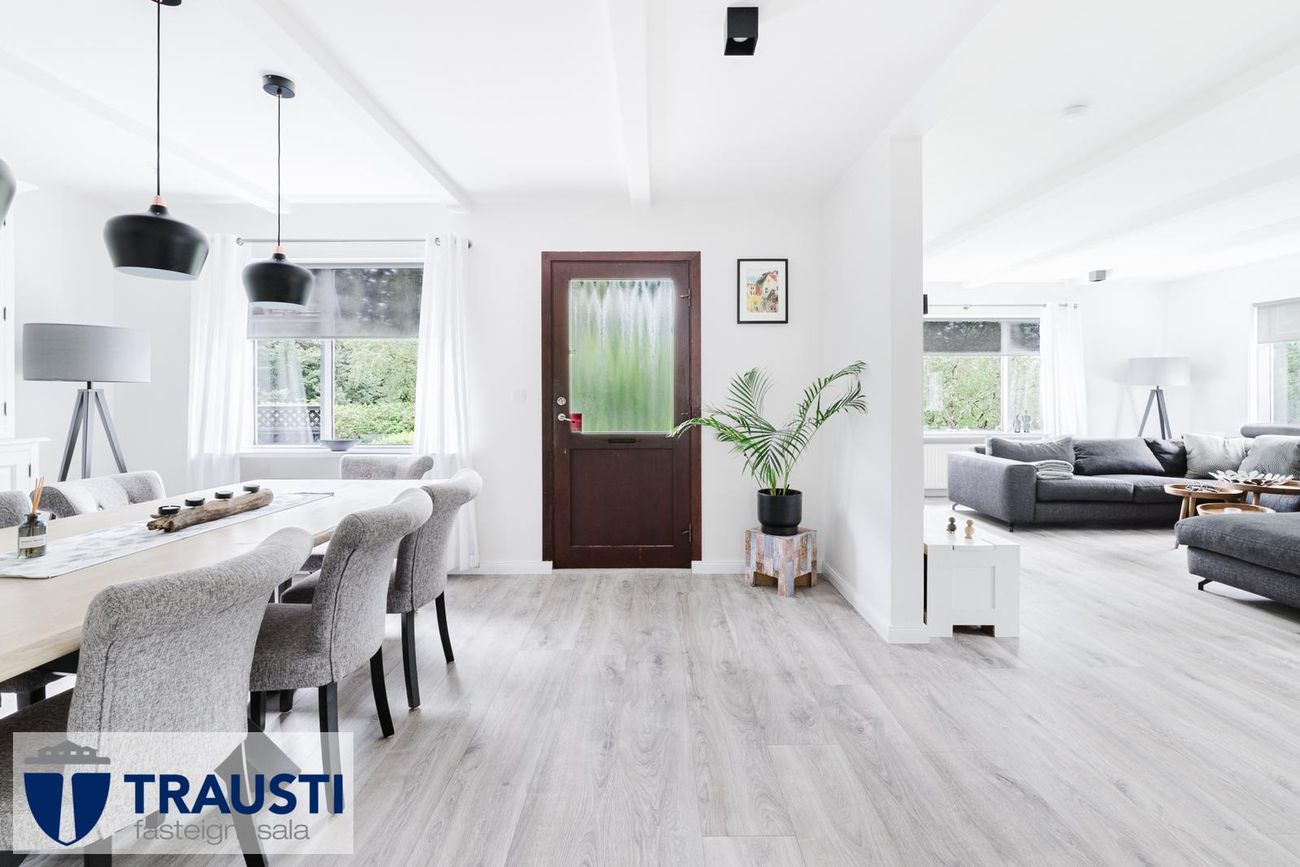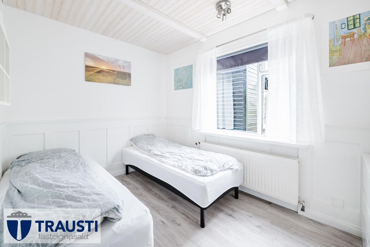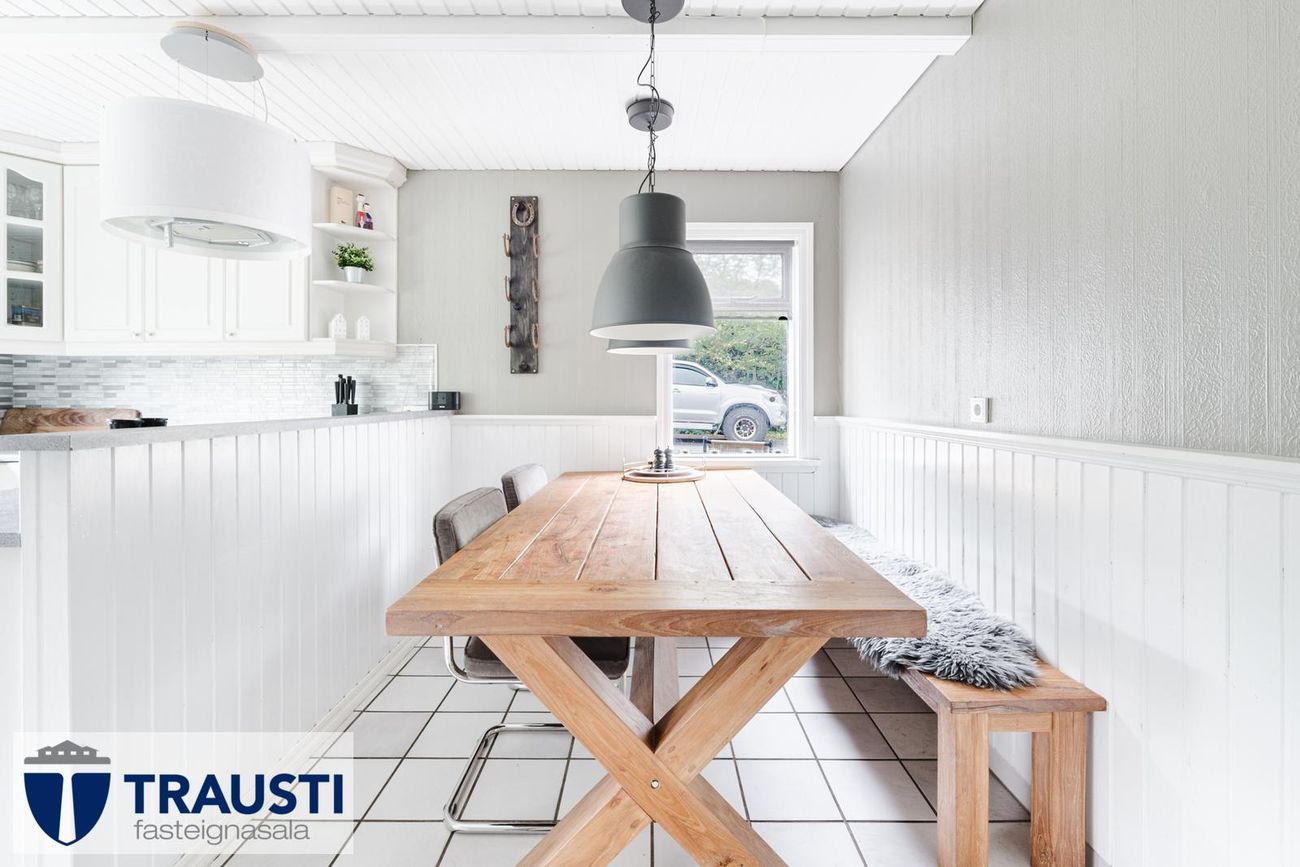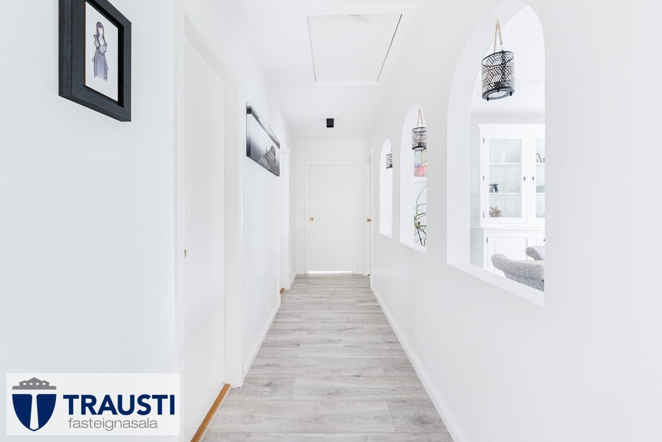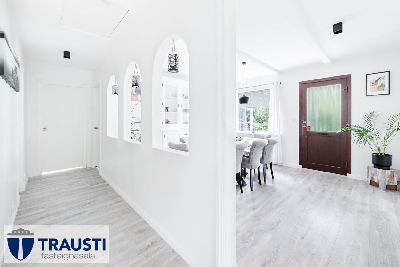 Stór lóð (3.550 m²), mikið endurnýjað hús með opnu rými, tveimur svefnherbergjum, baðherbergi með baðkari, stúdíóíbúð í bílskúr og malbikuð innkeyrsla.