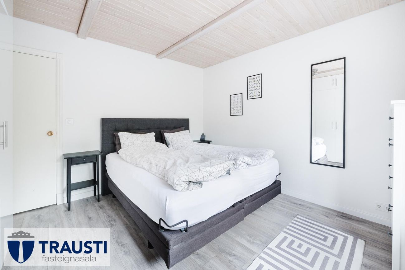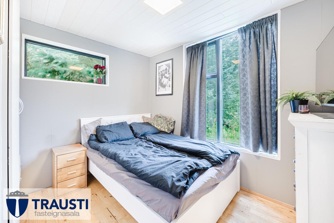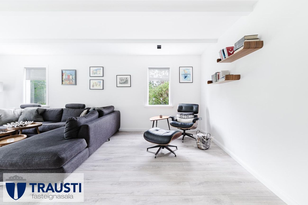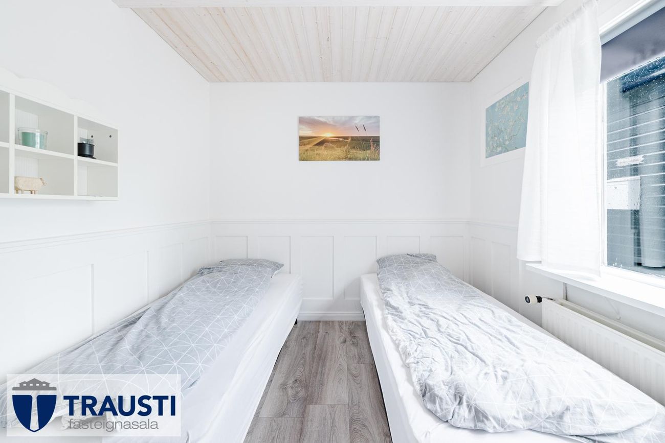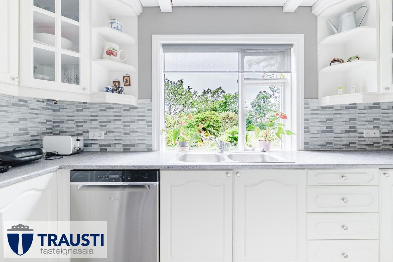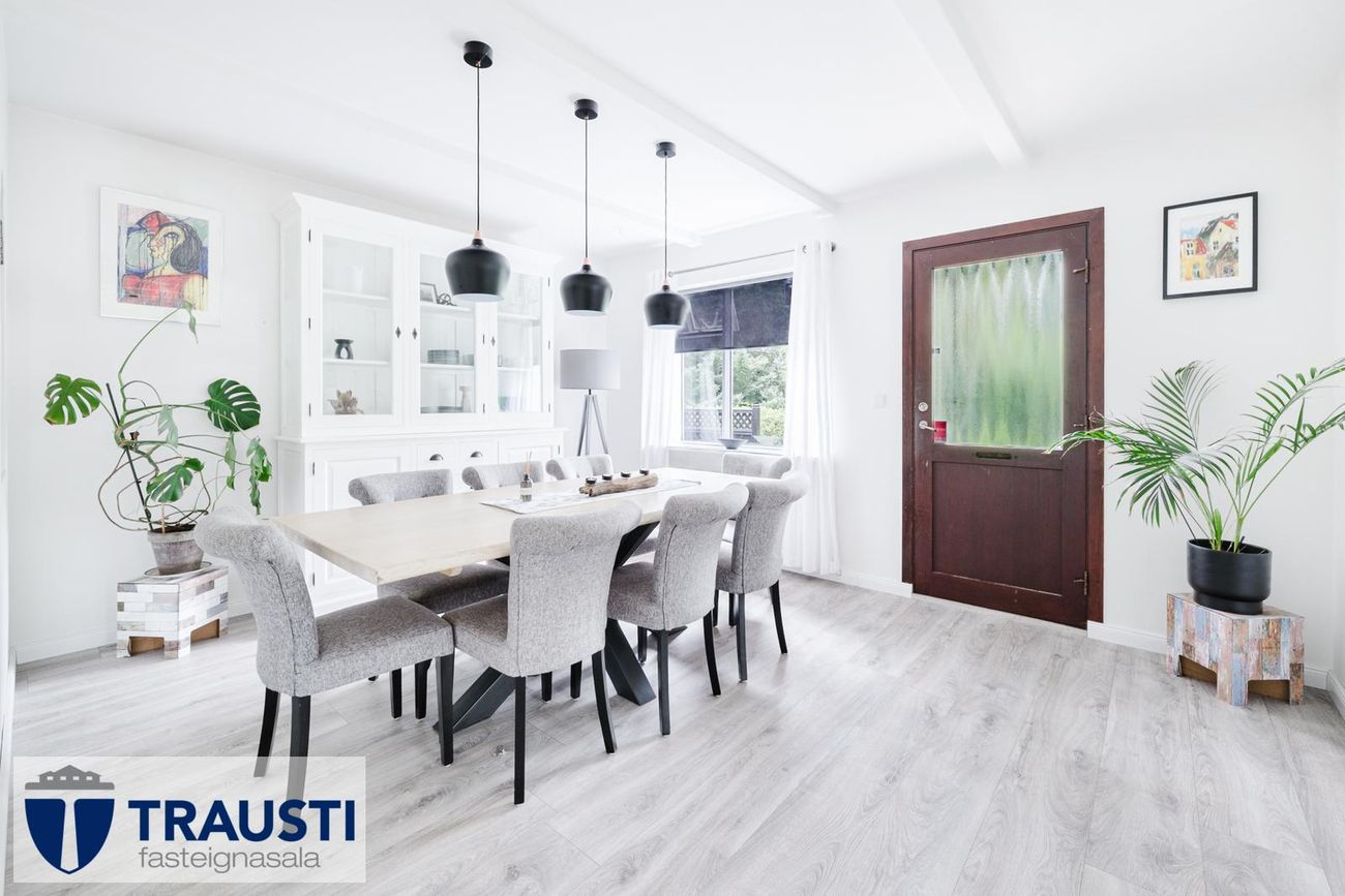 Stór lóð (3.550 m²), mikið endurnýjað hús með opnu rými, tveimur svefnherbergjum, baðherbergi með baðkari, stúdíóíbúð í bílskúr og malbikuð innkeyrsla.