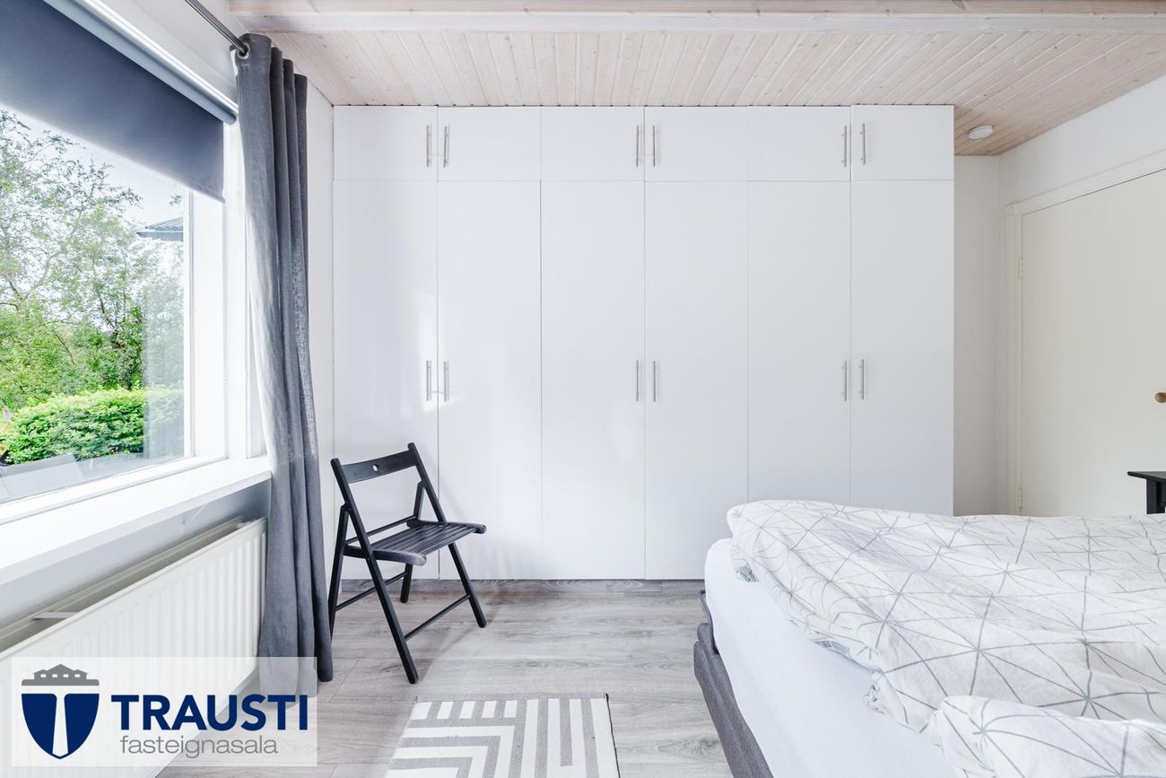 Tvö svefnherbergi, þar á meðal stórt hjónaherbergi með góðu skápaplássi.