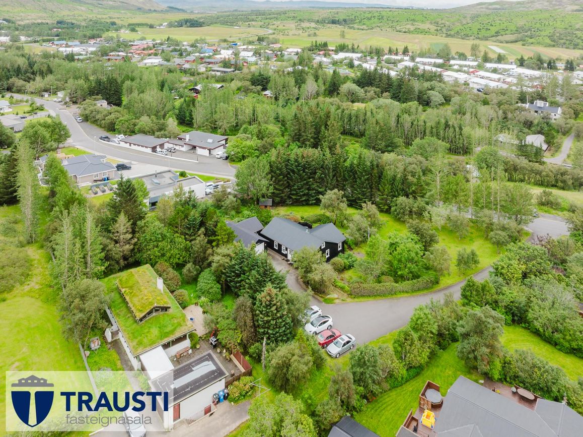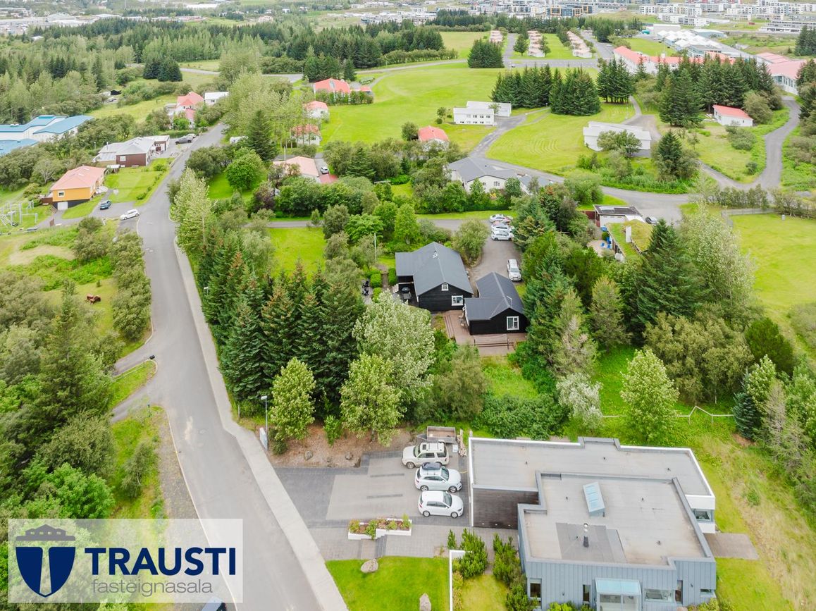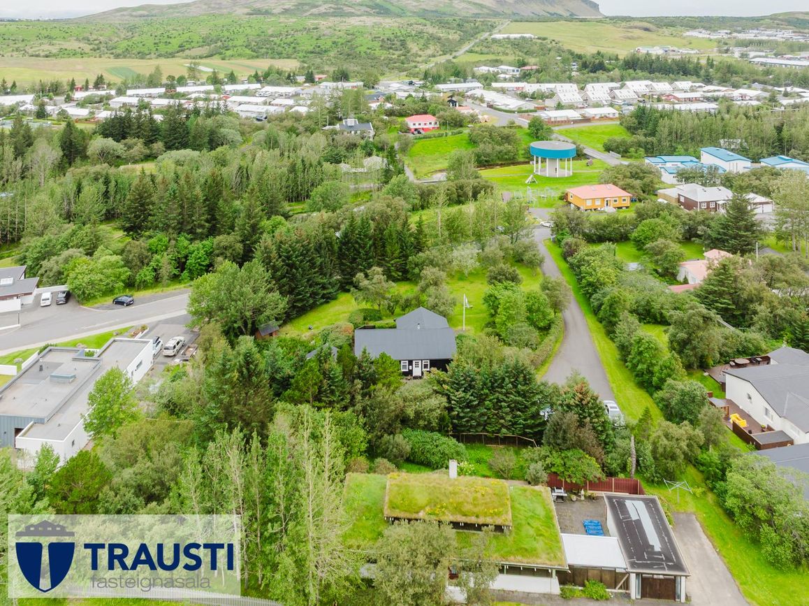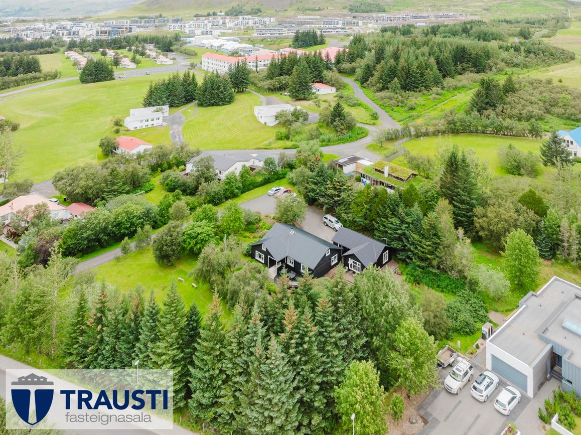 Friðsælt og gróðurríkt umhverfi í Mosfellsbæ með nálægð við náttúru og borgarþjónustu.