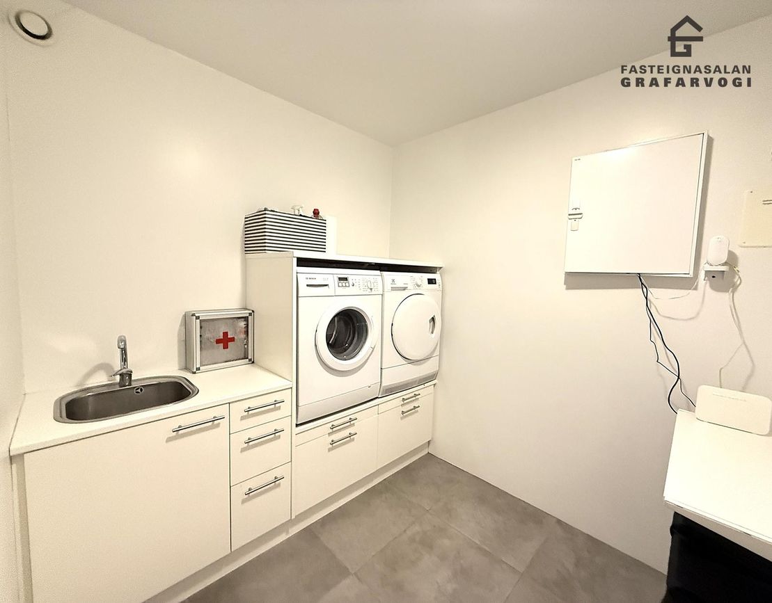 Rúmgott þvottahús er innan íbúðarinnar.