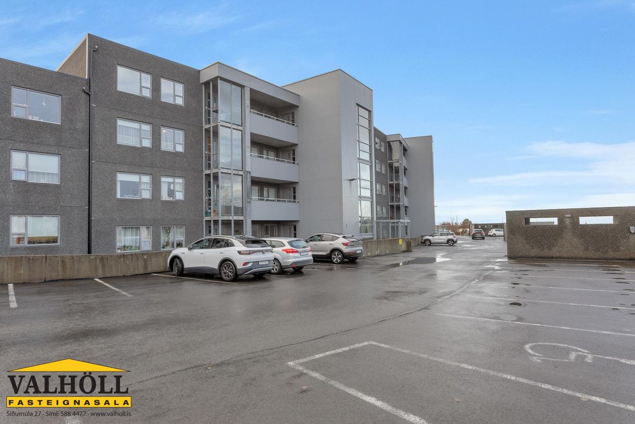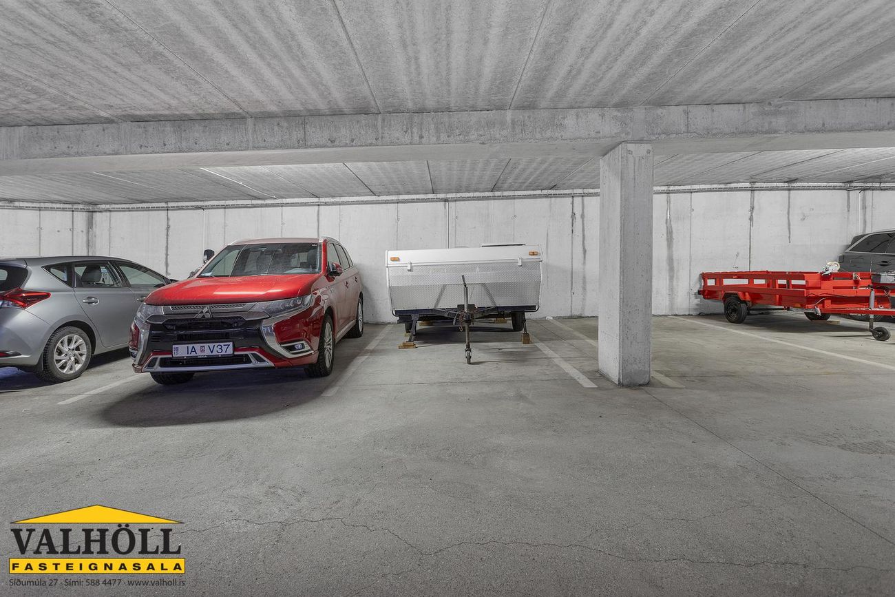 Bílastæði. Sérmerkt bílastæði er í hálfopnum bílakjallara. Búið er að gera ráð fyrir hleðslustöð fyrir rafmagnsbíla.