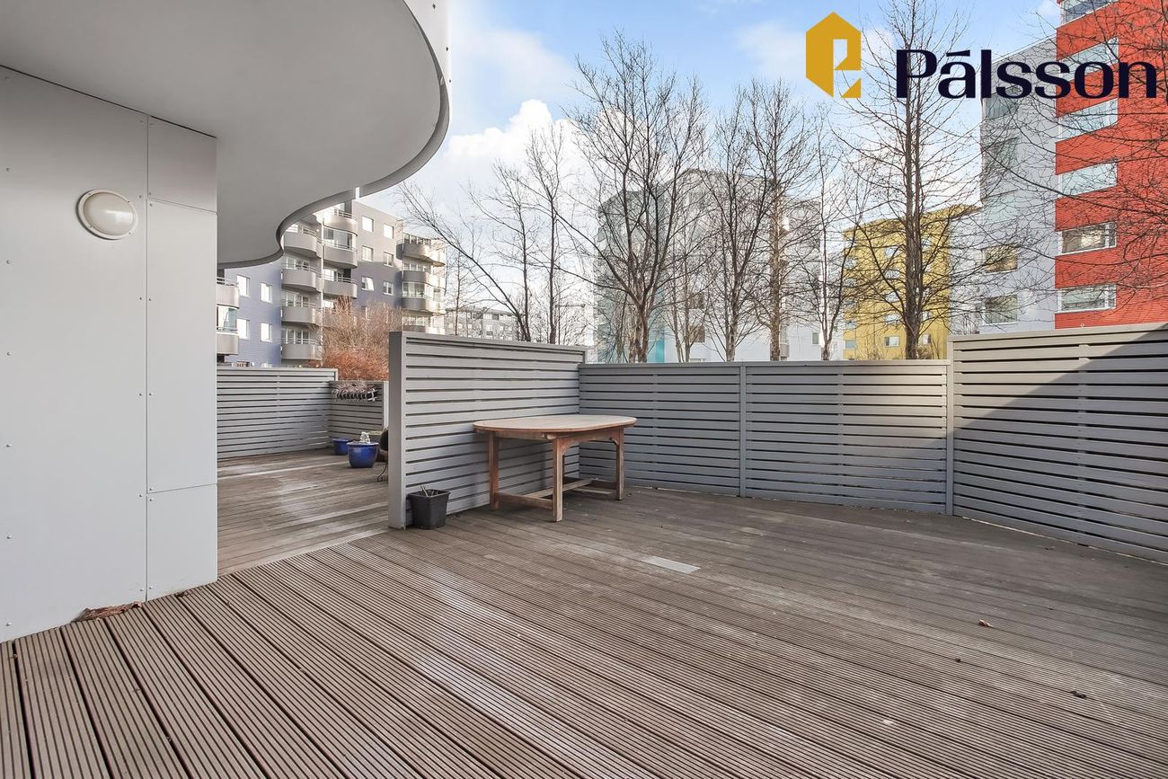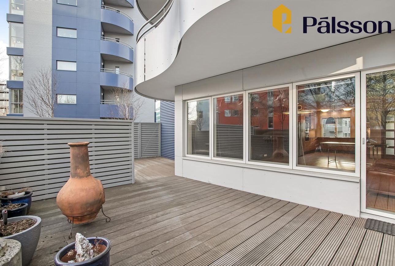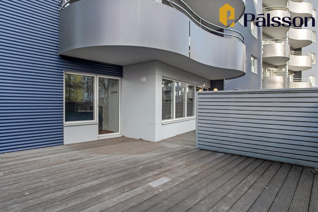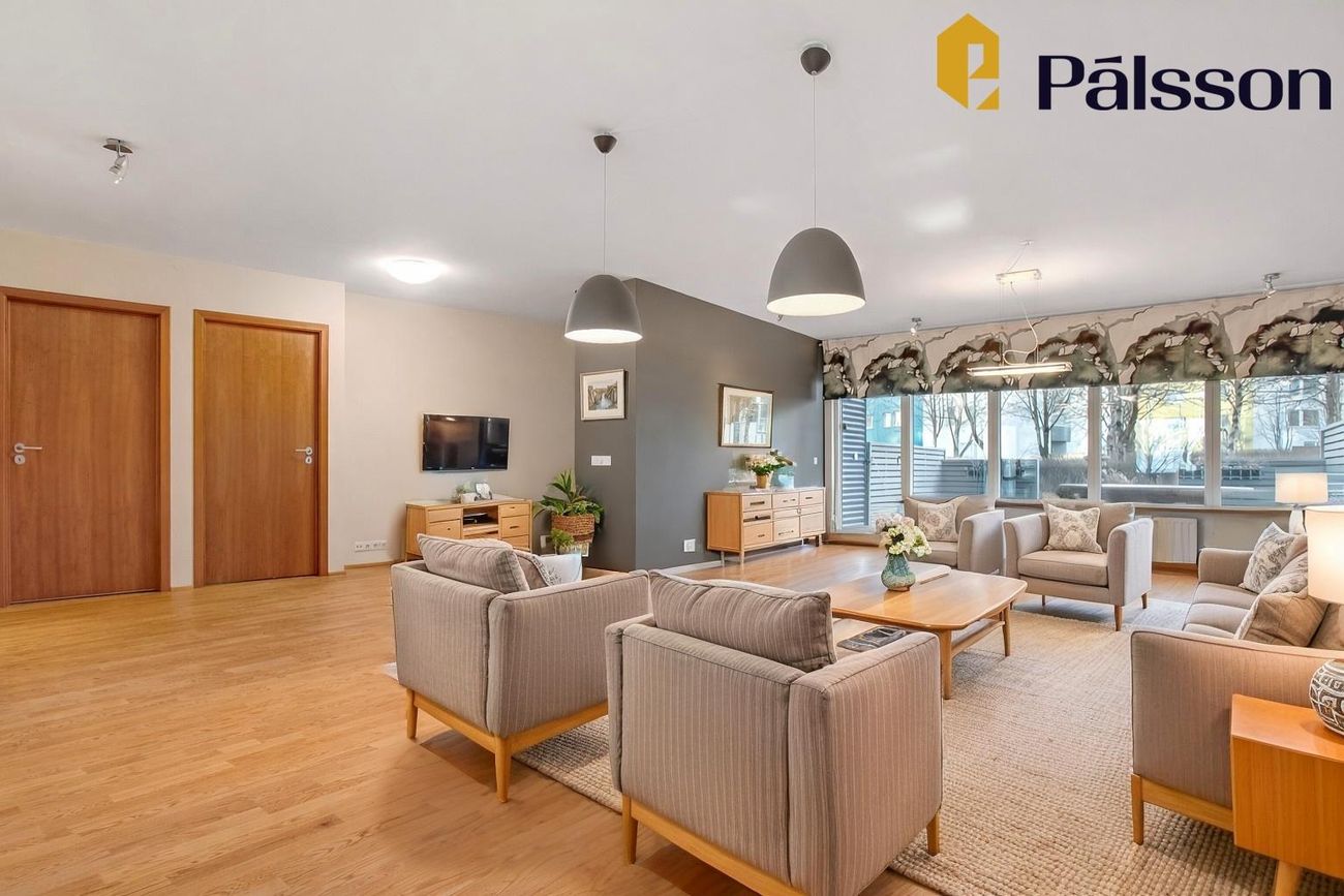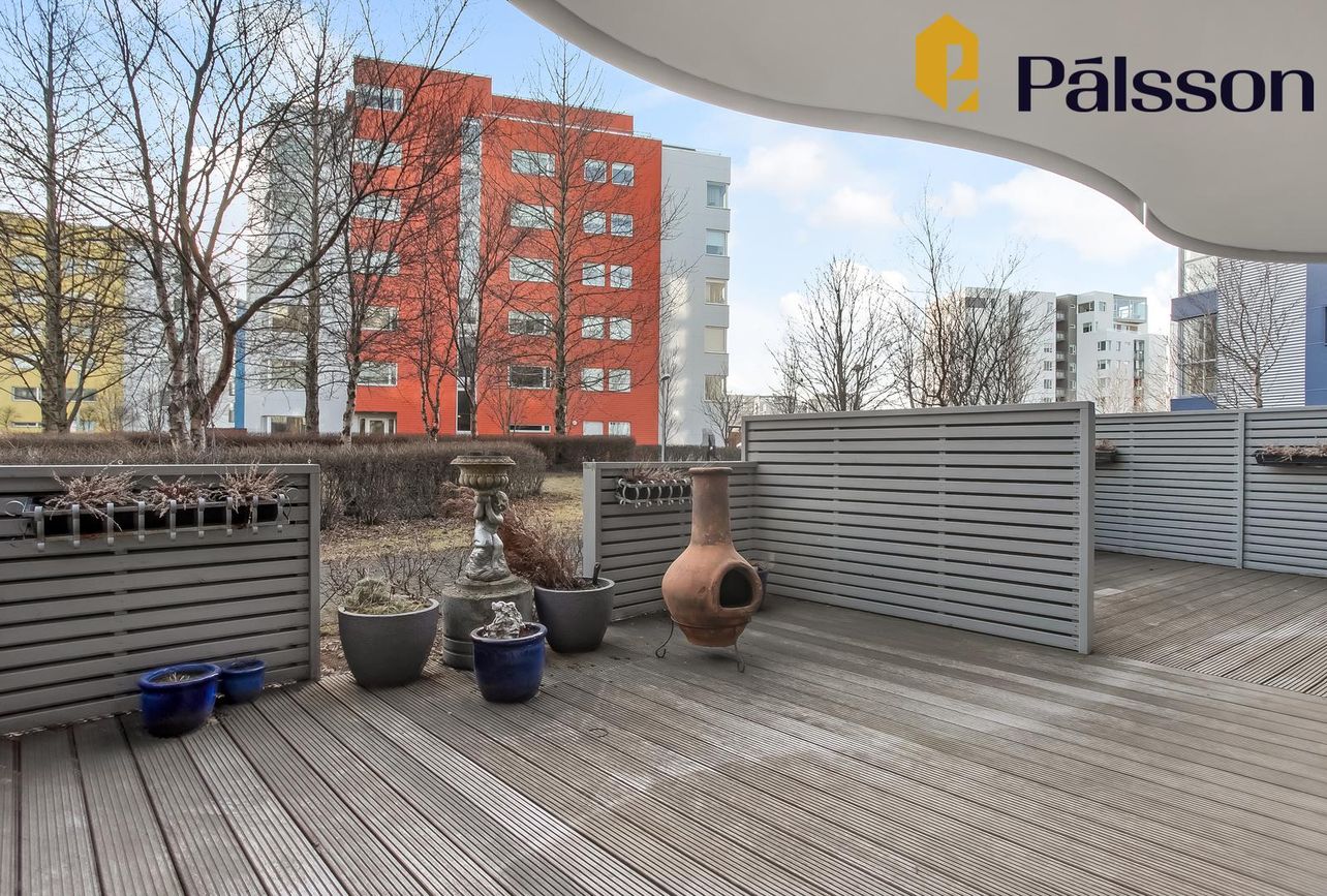 4ra herbergja íbúð á fyrstu hæð með sérinngang og sólpalli í suður á vinsælum stað að Sóltúni 13.- Sér stæði í bílageymslu