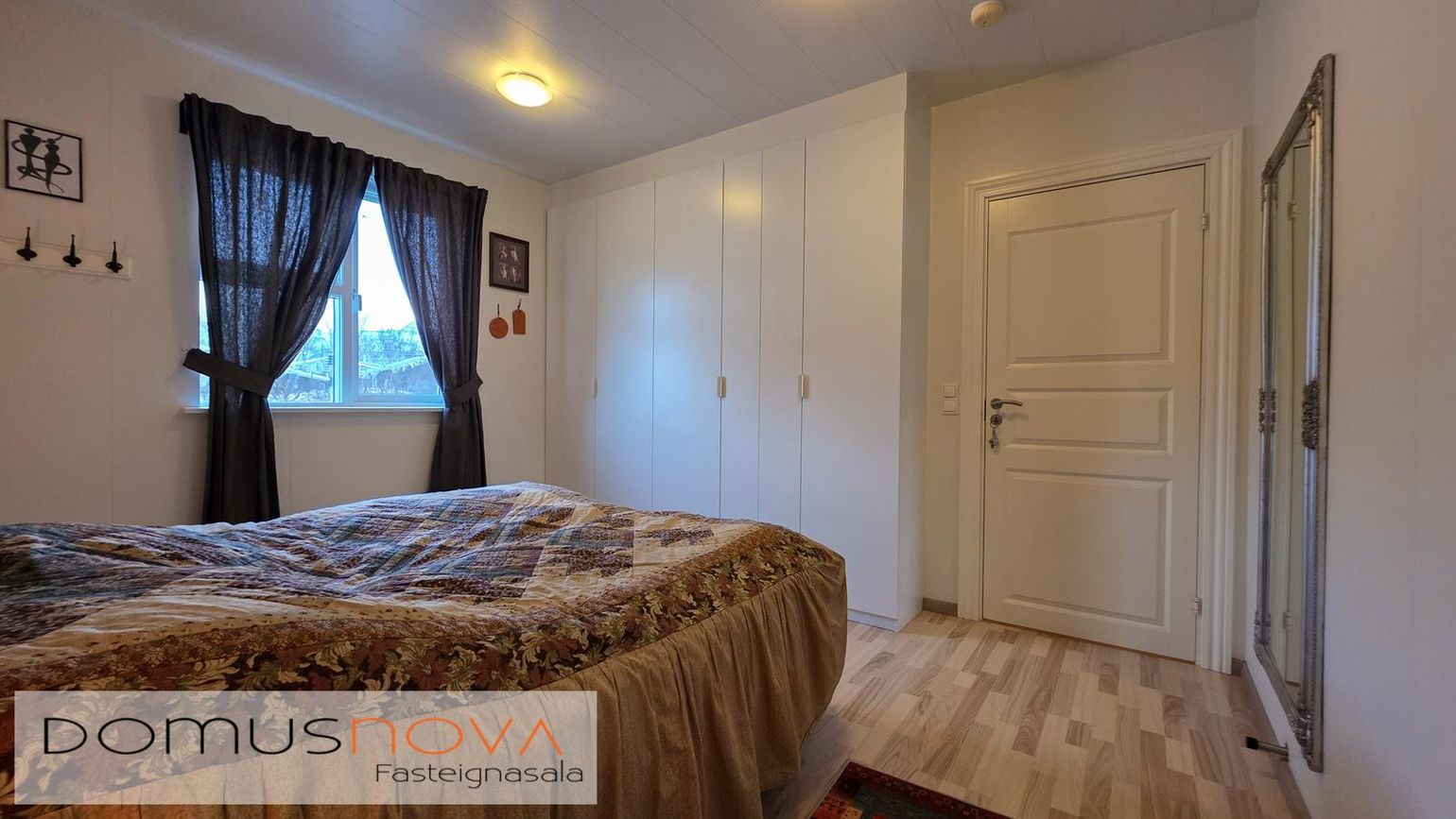 Fjögur svefnherbergi með parketgólfi. Eitt herbergi með sérsmíðuðum skáp og innbyggða lýsingu.
