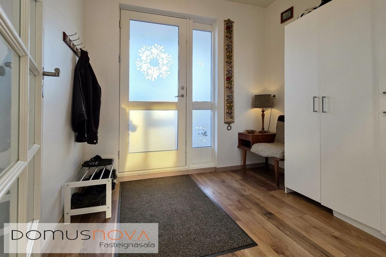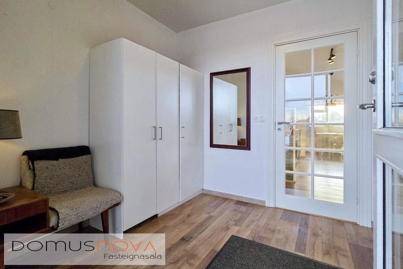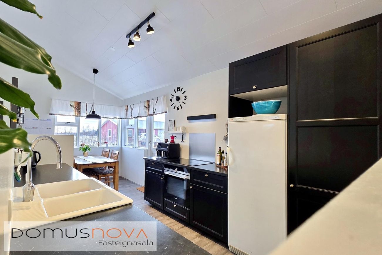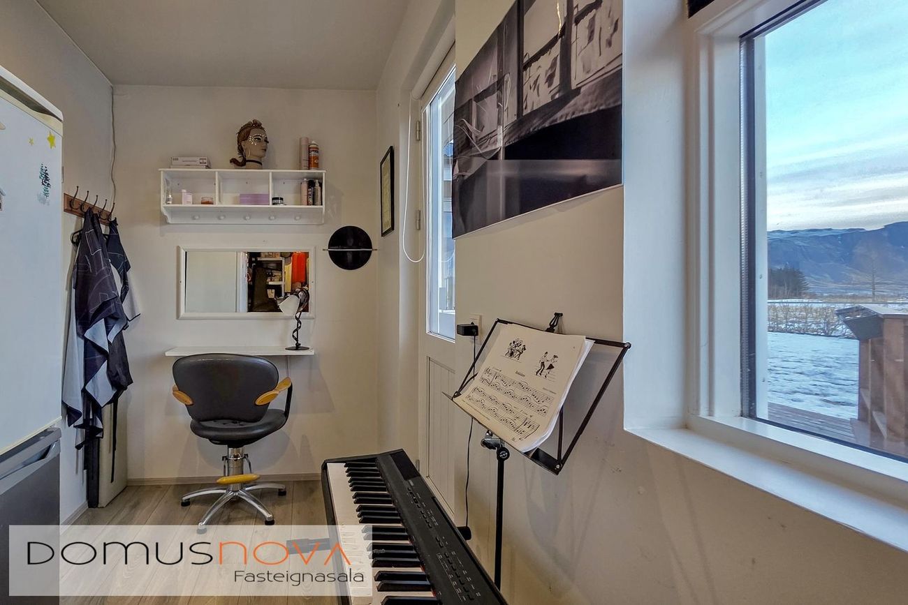 Innrétting með borðkrók, ný borðplata frá 2024. Útganga út á lóð.
