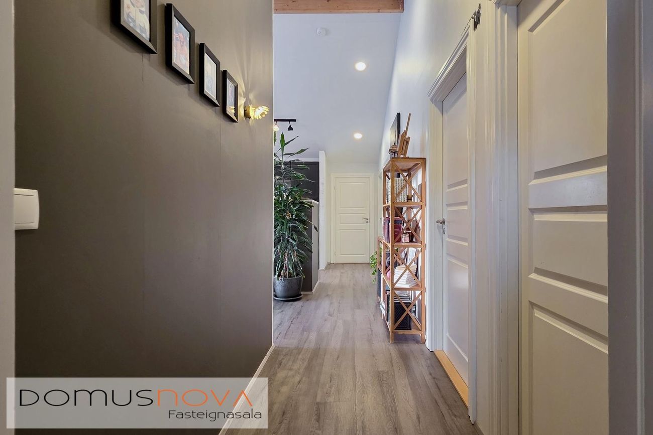 Parketgólf, flísalagt baðherbergi, timburbygging.