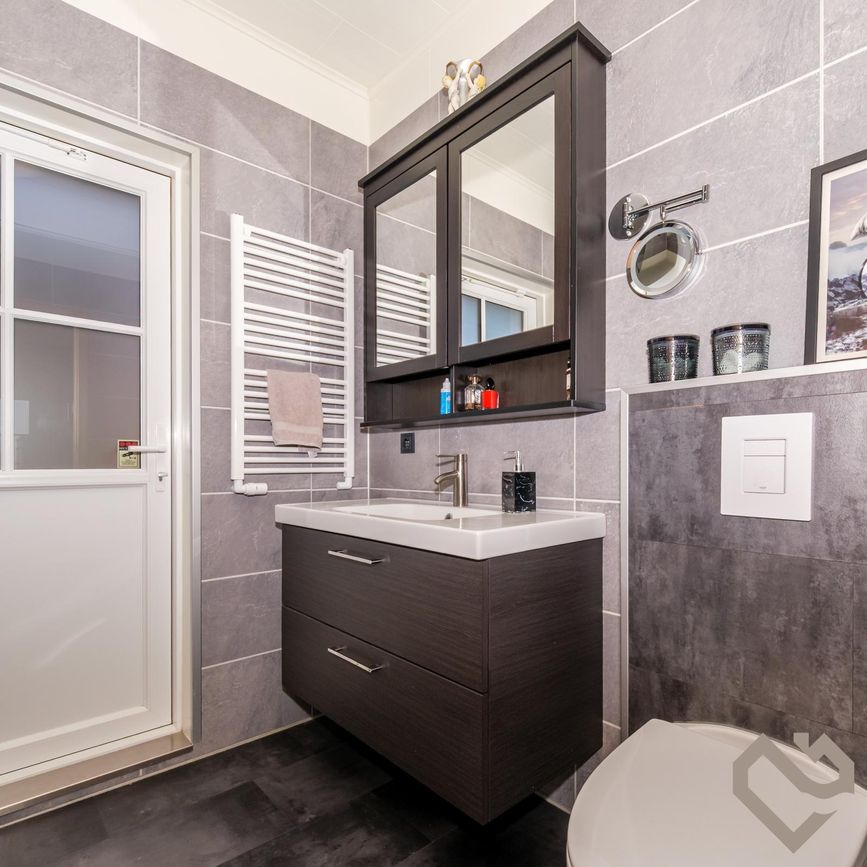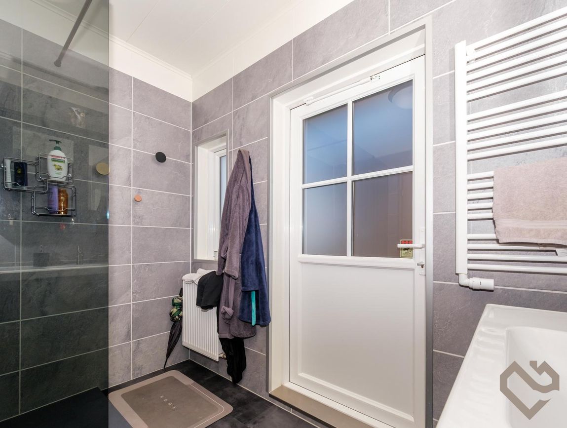 Baðherbergi: Flísar á gólfi og fibo plötur á veggjum, walk in sturta, innrétting, upphengt wc, opnanlegur gluggi.