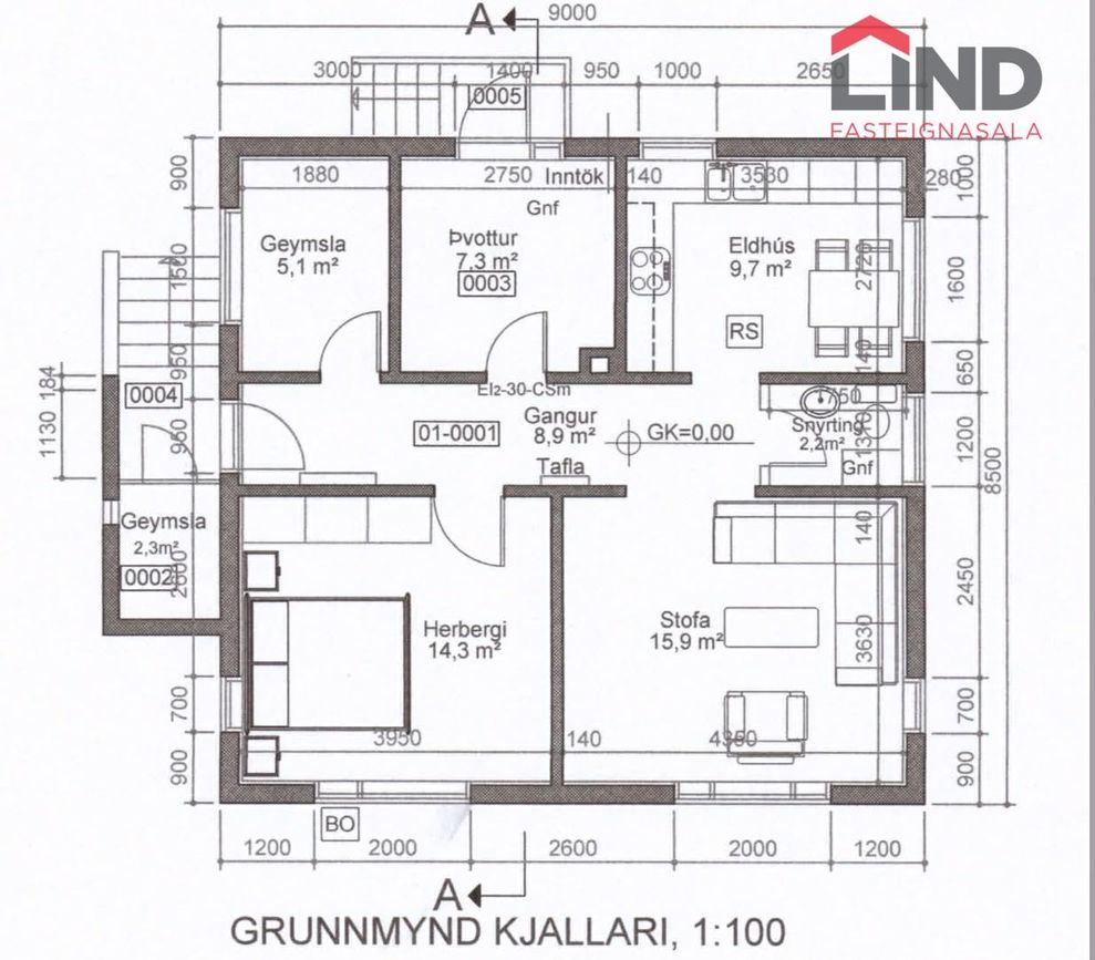 -Herbergið er skráð sem geymsla á teikningu, er með glugga og nýtist sem herbergi.