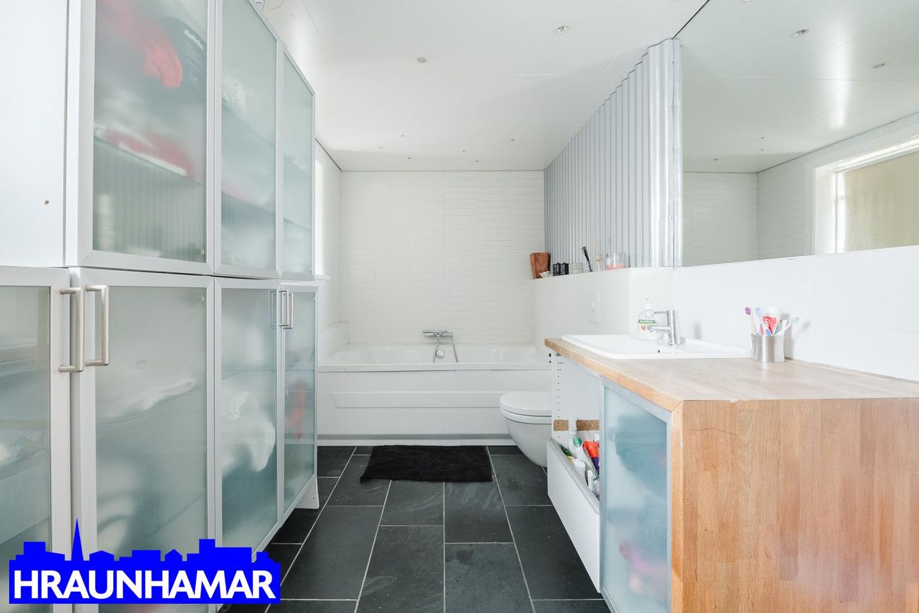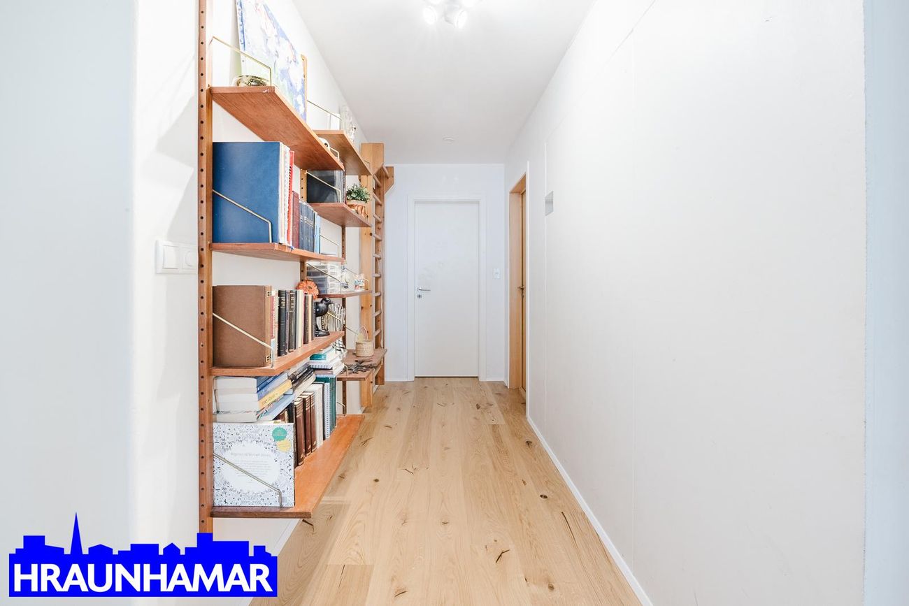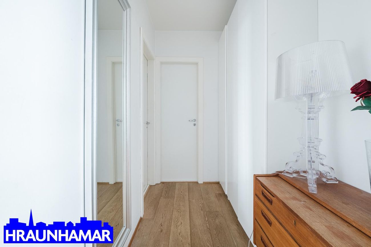 Rúmgóð björt stofa og eldhús með glæsilegu sjávarútsýni. Hvít innrétting og stór eyja. Borðstofa innaf holi með glugga. Gott svefnherbergi með skápum. Fallegt baðherbergi, er með hita í gólfi, fín sturtuaðstaða, ljós innrétting og upphengt salerni. Gluggi á baði.