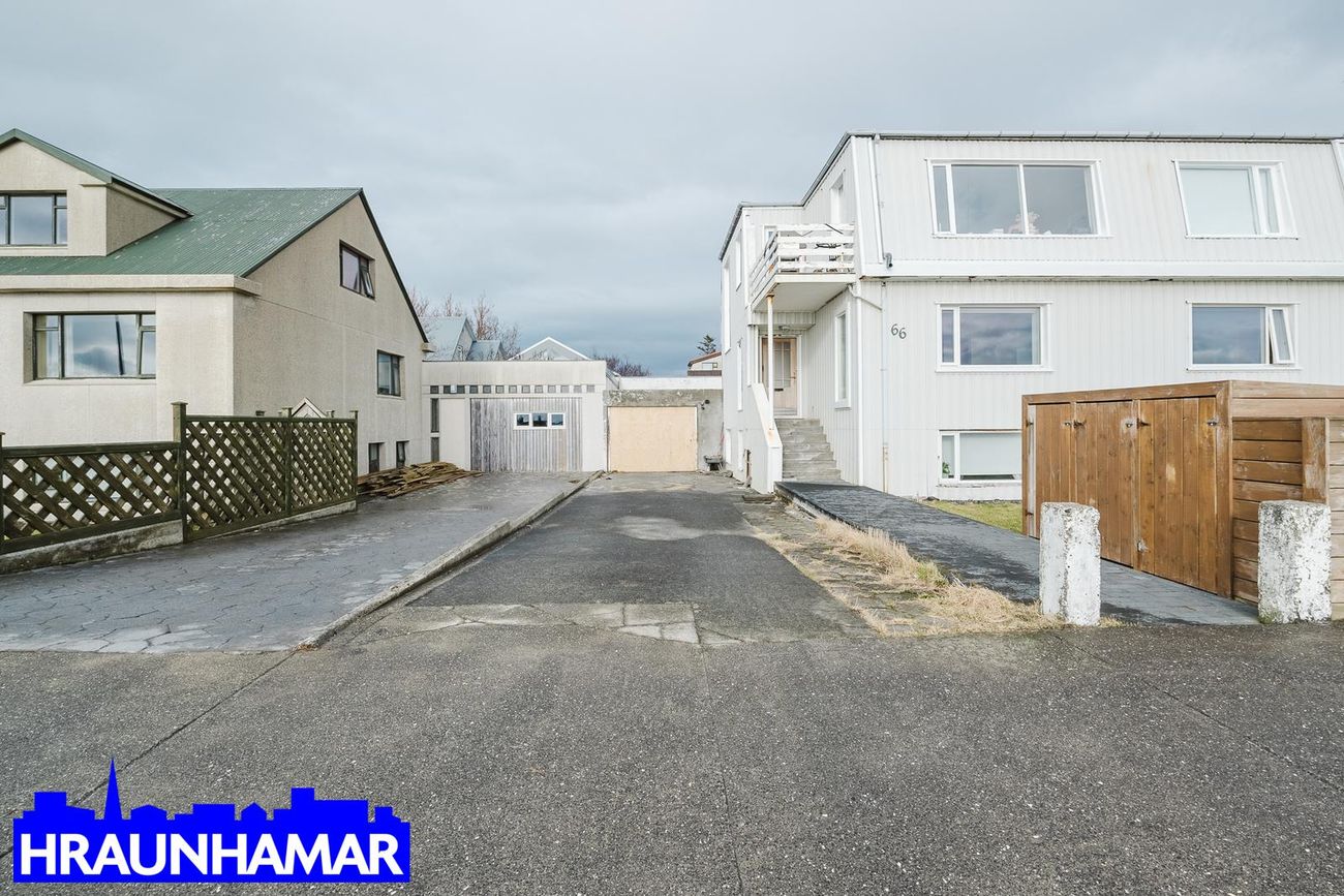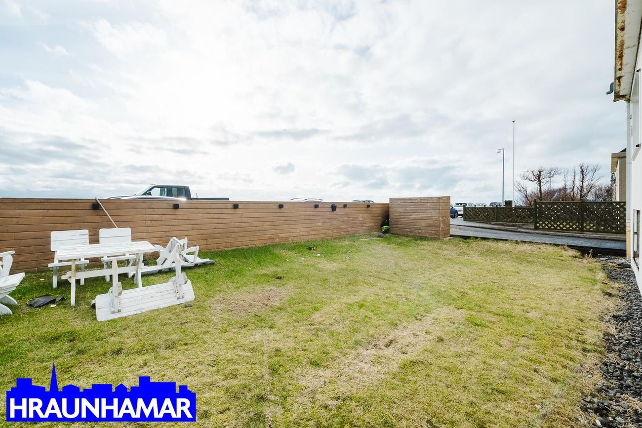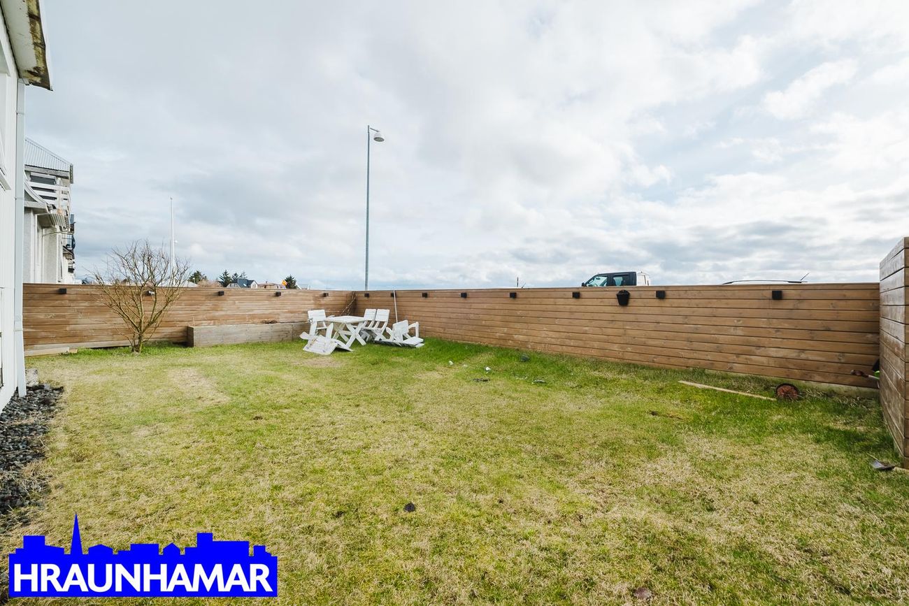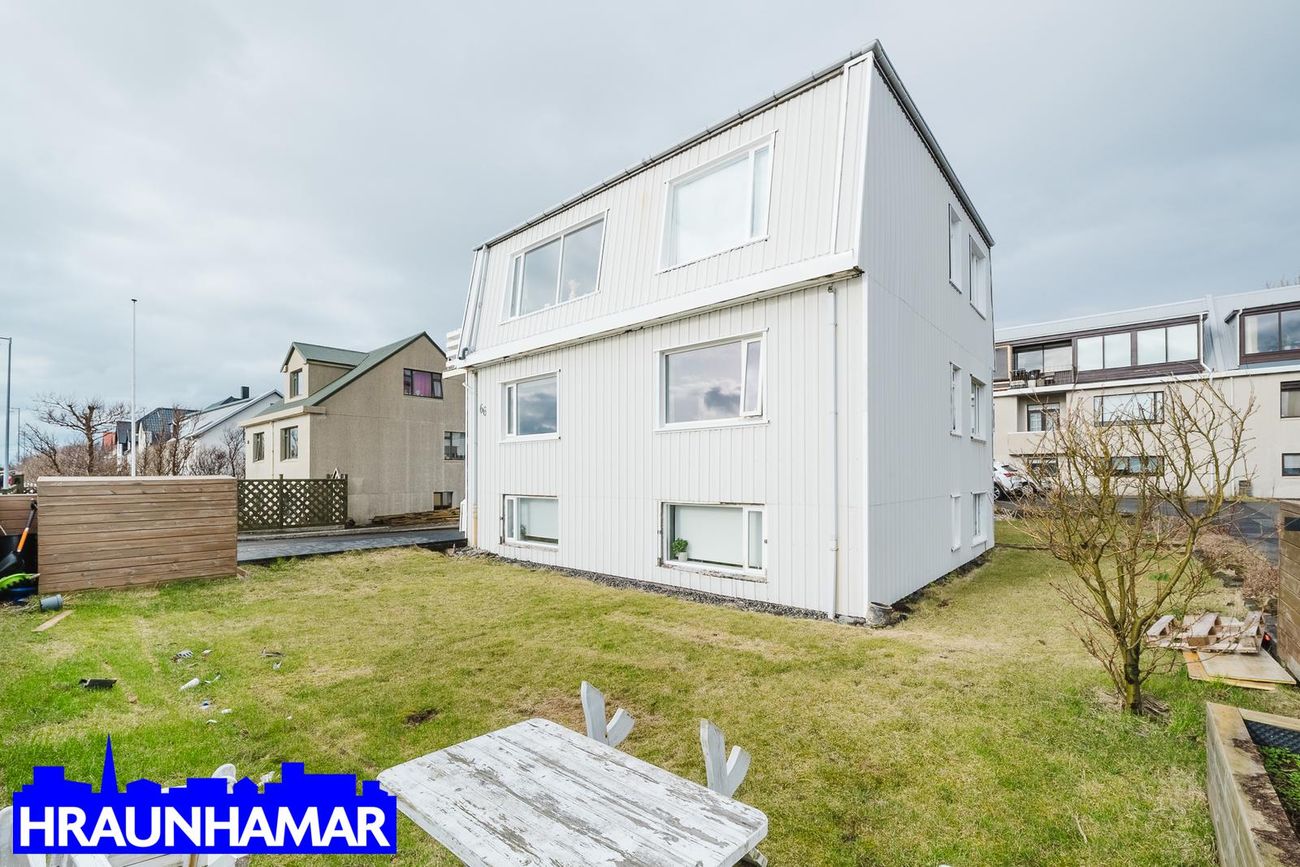 Rúmgóður garður í suð-vestur er sameiginlegur og skjólveggir eru nýlegir. Eignin er ekki í samræmi við samþykktar teikningar.