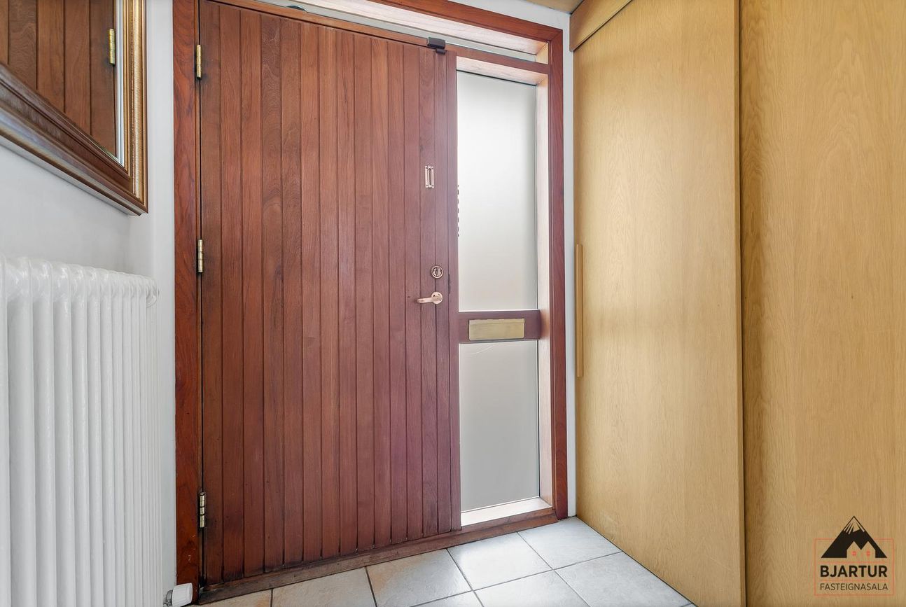 Mið pallurÍ forstofu er góður skápur með viðar rennihurðum. Úr forstofu er komið inn í hol og úr því er gengið inn í eldhús og gestasnyrtingu.