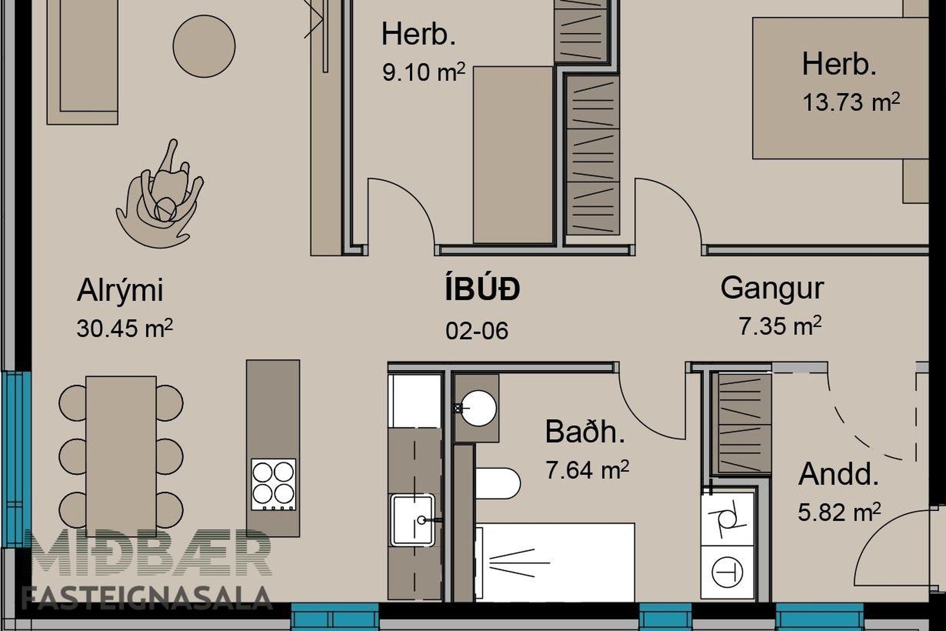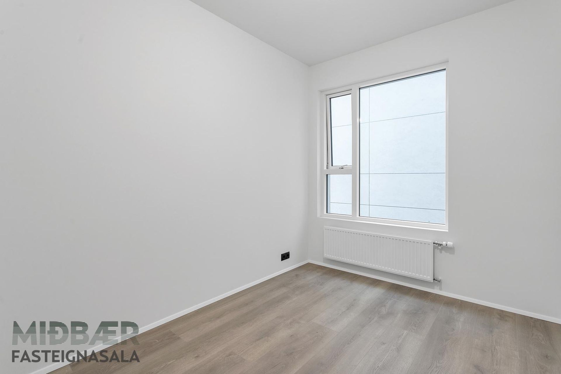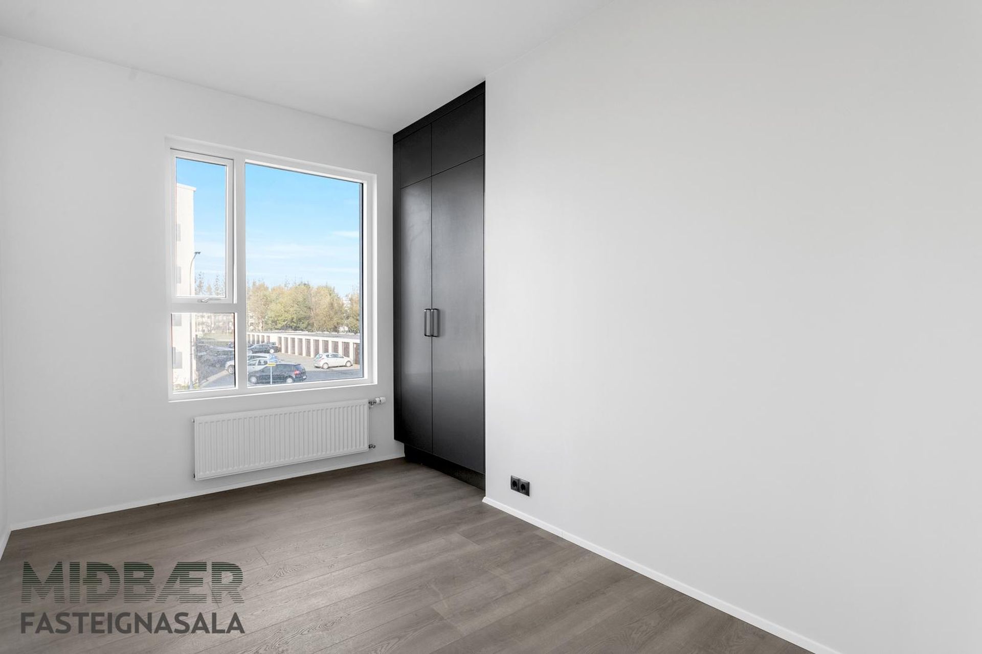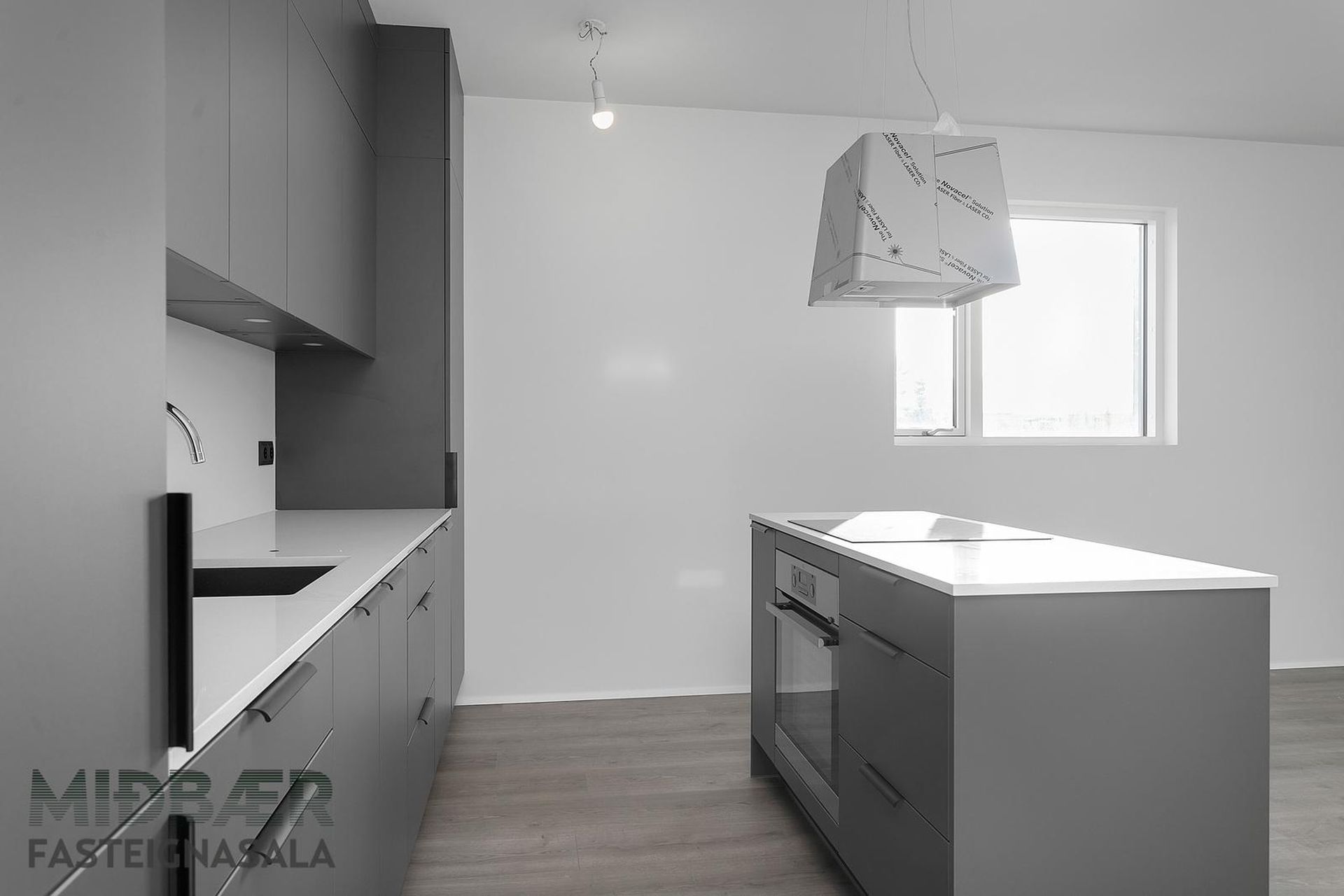 Fullbúin ný eign.Nýjar og glæsilegar íbúðir að Starmýri 2 108 Reykjavík. Um er að ræða fjölbreyttar 2ja - 5 herbergja íbúðir í stórglæsileguu lyftuhúsi . Svalir eða sérafnotaflötur fylgir öllum íbúðum ásamt séreignageymslu í kjallara. Húsið er steinsteypt og útveggir einangraðir að utan, klæddir með Equitone-klæðningu sem tryggir lágmarks viðhald hússins. Gluggar eru ál/tré kerfi og glerjaðir með K-gleri. Innveggir aðrir en steyptir eru gipsklæddir. Sérsmíðaðar innréttignar frá Voke3 ásamt kvartstein í borðplötum. Gólfefni eru parket og flísar.Vefslóð á nánari upplýsingar um húsið: http://starmyri2.isÍbúð 206: Er 104,3 m2 glæsileg 3ja herbergja íbúð á 2. hæð svölum í norður, útgengt úr stofu og svefnherbergi. Afhending er við kaupsamning.Nánari lýsing: Íbúðin skiptist í forstofu með rúmgóðum forstofuskáp, baðherbergi með Voke3 innréttingu, upphengdu salerni, handklæðaofn og walk inn sturtu, eldhús með fallegri Voke innréttingu ásamt öllum tækjum, þar með talið innbyggður ísskápur og uppþvottavél. Eldhúsið tengist stofu og borðsstofu þar sem er útgengt á svalir 2 svefnherbergi er í íbúðinni, rúmgóð og hjónaherbergi með útgengi á stórar svalir.Geymsla er kjallara. Eldhústæki: Íbúðunum fylgja vönduð eldhústæki frá AEG. Þau eru: span helluborð, innbyggður kæliskápur, innbyggð uppþvottavél, blástursofni og viftu eða lofthengdum eyjuháfi þar sem það á við annars viftu. Innrétting frá Voke3, sérsmíði..Hreinlætistæki: Salerni er vegghengt. Walk inn sturtur eru með flísalagðar og með hertu sturtugleri. Blöndunartæki eru hitastýrð og einnar handar. Þvottahús eru ýmist á baðherbergjum eða sér. Voke3 innréttingar, sérsmíði.Baðherbergis- og þvottahúsgólf eru flísalögð auk þess eru 2 til 3 veggir baðherbergja flísalagðir en aðrir veggir málaðirInnréttingar eru sésmíðaðar frá Voke3 í gráum lit og borðplötur eru Kvartssteinn.Gólfefni eru flísar frá Parka og harðparrket frá Birgisson.Seljandi áskilur sér allan rétt til að gera efnis-, tæknilegar- og útlits breytingar meðan á byggingaframkvæmd stendur.Auglýsingaefni og 3D teikningar eru eingöngu til hliðsjónar. Komi upp misræmi eru samþykktar teikningar hönnuða gildandi. Almennt miðast skil hússins við vandaðan frágang og viðurkennd skil á nýju íbúðarhúsnæði.Kaupandi greiðir skipulagsgjald sem nemur 0,3% af brunabótamati þegar það er lagt á.Heimild seljanda til að breyta eignaskiptasamning sé þess þörf án þess þó að rýra eignarrétt kaupanda. Innréttingateikningar eru þær sem gilda ef misræmi er milli arkitektateikninga og innréttingateikninga.Eignin að Starmýri 2 er byggð á grunni verslunar sem stóð á lóðinni. Kjallari var endurbyggður en allar íbúðrahæðir eru nýjar.Starmýri 2 er frábærlega staðsett, Álftamýraskóli er í bakgarðinum, 5 mínútna ganga er á leikskólann Álftaborg, Verslunarmiðstöðin Kringlan er í göngufæri og örstutt í miðbæinn. Íþróttasvæði Víkings er í svotil við húsdyrnar.Upplýsingar: MIðbær fasteignasala í síma 5883300 email eða Kristbjörn lgf. email Vakin er athygli á að eigandi fasteignarinnar fellur undir lagaákvæði er snýr að tengslum við fasteignasalann/starfsmann fasteignasala skv. 1. mgr. 14. gr. laga nr. 70/2015, lög um sölu fasteigna og skipa. Miðbær fasteignasala bendir fasteignakaupendum á ríka skoðunarskyldu kaupenda á fasteignum sem kveðið er á í lögum um fasteignakaup nr.40/2002.Vill Miðbær fasteignasala því skora á væntanlega kaupendur að kynna sér vel ástand fasteigna fyrir kauptilboðsgerð og leita til þar til bærra sérfræðinga um nánari skoðun.Sömuleiðis er bent á upplýsingaskyldu seljanda samanber 26.gr. Laga nr.40/2002 um fasteignakaup og 25.gr. laga nr.26/1994 um fjöleignarhús. Seljanda er bent á að kynna sér tilvitnaðar lagagreinar.Gjöld sem kaupandi þarf að standa straum af vegna kaupanna:1. Stimpilgjald af kaupsamningi sem er hlutfall af fasteignamati. Stimpilgjald er 0,8% fyrir einstaklinga (0,4% við fyrstu kaup m.v. að lágmarki 50% eignarhlut) og 1,6% fyrir lögaðila.2. Þinglýsingargjald af kaupsamningi, veðskuldabréfum, veðleyfum o.fl. Þinglýsingargjald er kr. 2.500,- fyrir hvert skjal.3. Lántökugjald lánastofnunar, almennt á bilinu kr. 50.000 - 75.000. Nánar um lántökugjald vísast í gjaldskrá viðkomandi lánveitanda.4. Umsýsluþóknun fasteignasölu kr. 74.400. 5. Ef um nýbyggingu er að ræða greiðir kaupandi skipulagsgjald, 0,3% af brunabótamáti, þegar það er lagt á.
