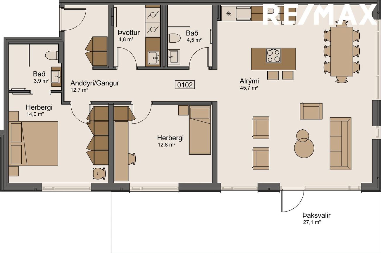 0102 ![]() | 3 | 121,80 m² | 104.900.000 kr. 7. júlí 2025 | 104.900.000 kr. 13. mars 2026 |