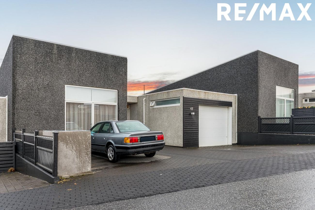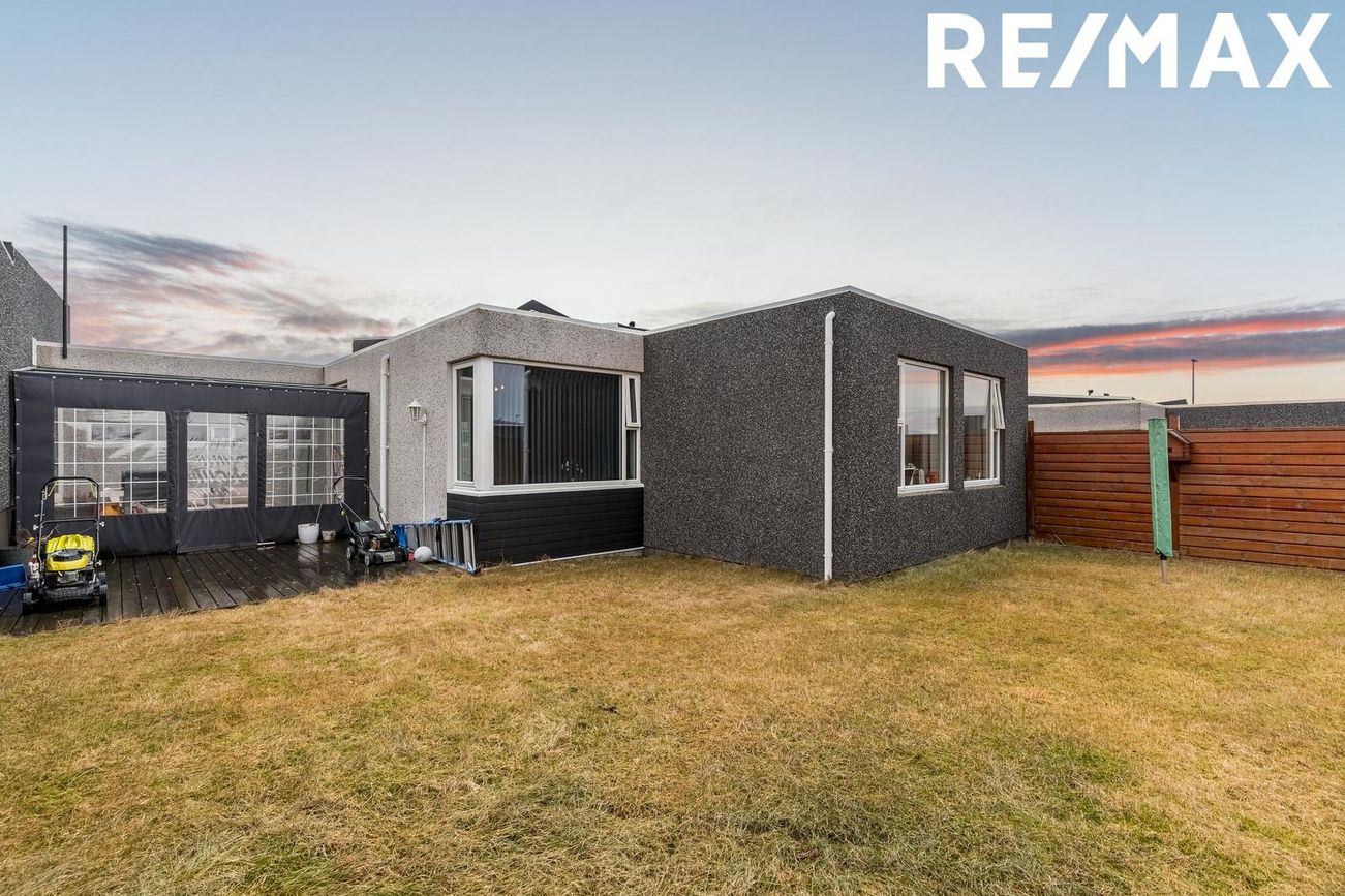 Bjarni Blöndal löggiltur fasteignasali (bjarni@remax.is/s:662-6163) kynnir fallegt raðhús á einni hæð með innbyggðum bílskúr við Steinás 17, Reykjanesbæ. Aukin lofthæð, gott skipulag, gólfhiti í öllu húsinu. Yfirbyggð grill og sólbaðs verönd, pergola yfir hluta hennar. Samkvæmt HMS er raðhúsið 134,6m2 auk 33,1m2 bílskúrs, samtals 167,7m2. Húsið skiptist í forstofu, stofu, borðstofu, eldhús, þrjú svefnherbergi, baðherbergi, gestabaðherbergi, þvottahús/geymslu og bílskúr.