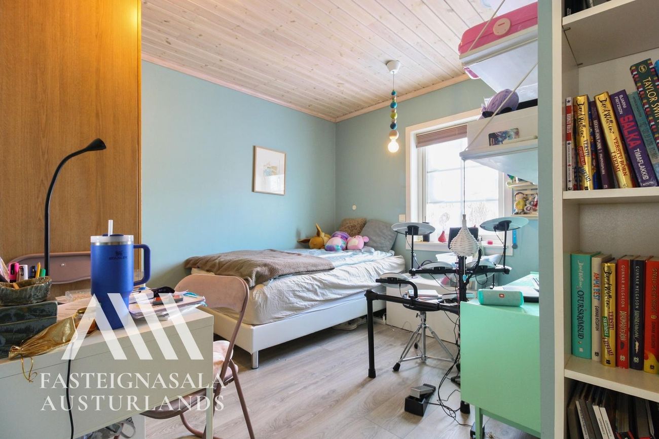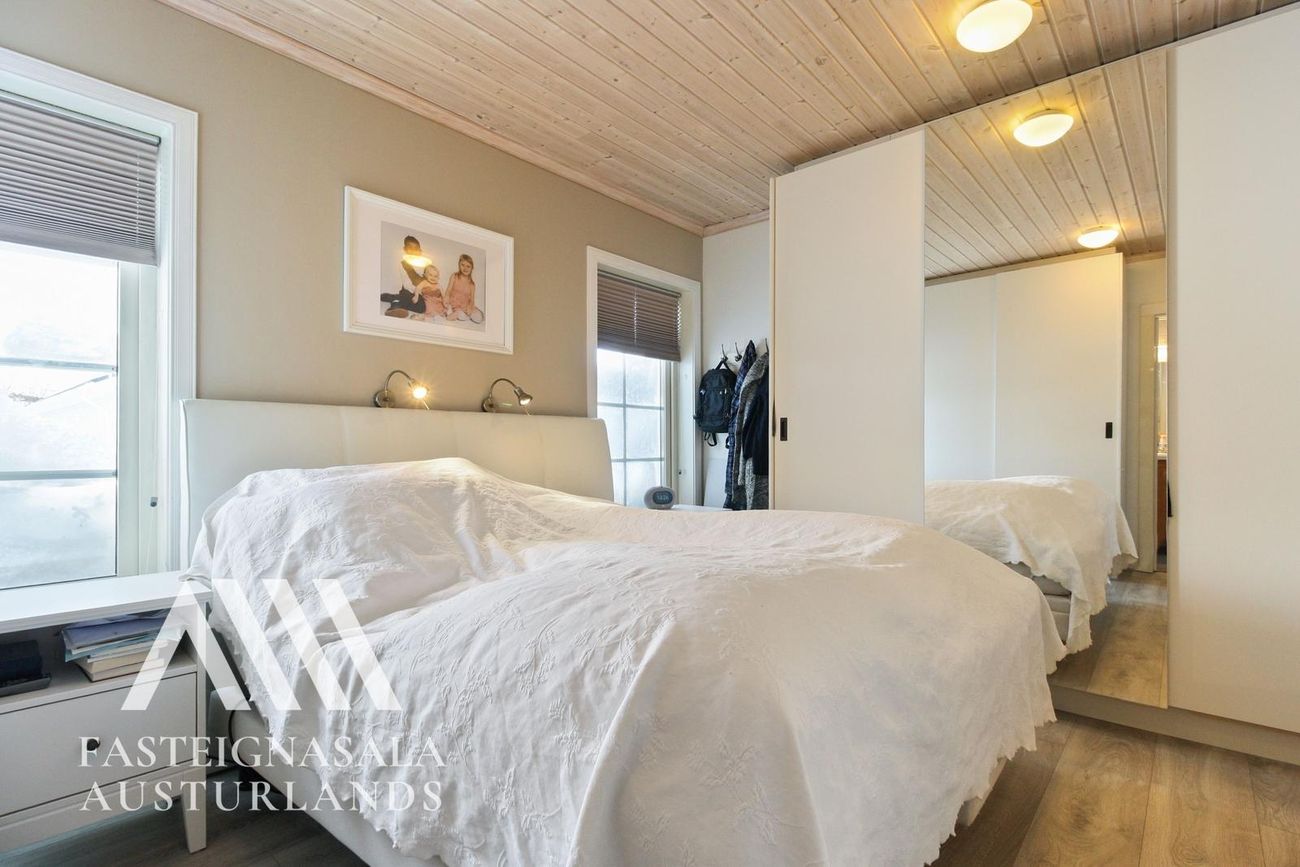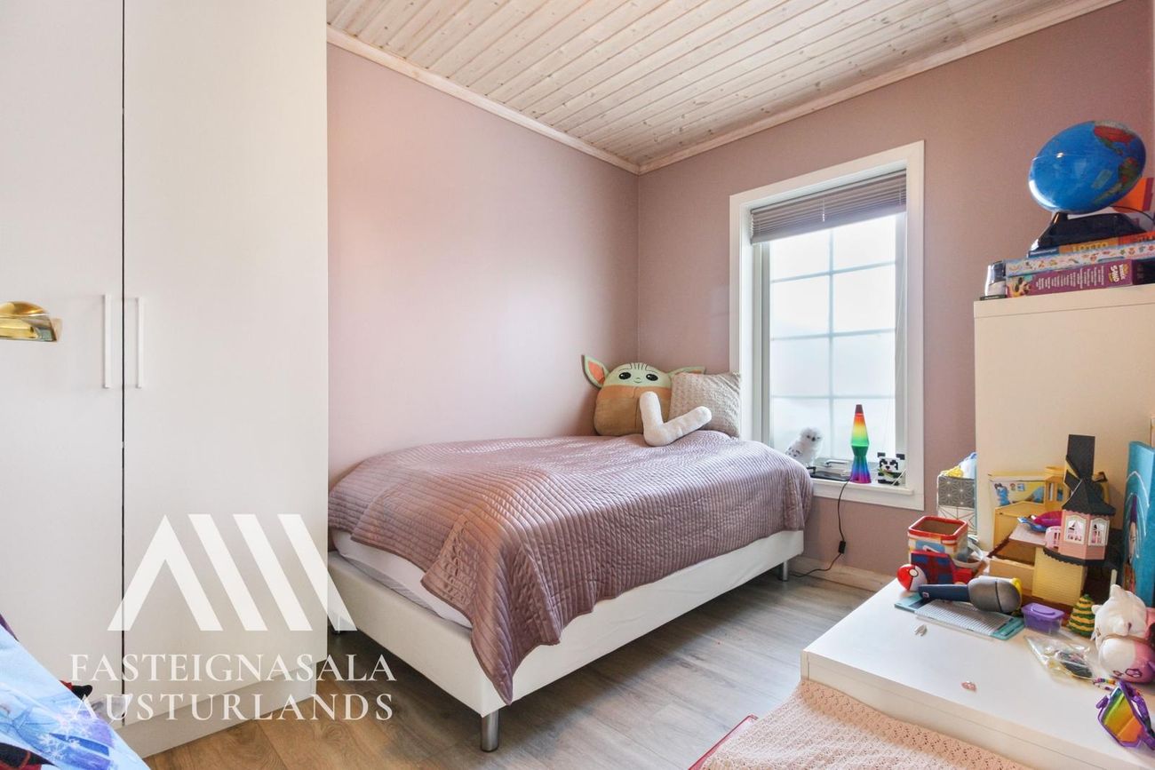 Svefnherbergin 3: Upprunalega voru barnaherbergin tvö en 8,2 m² fataherbergi inn af hjóna var nýlega breytt í fjórða svefnherbergið. Nýr fataskápur var settur upp í því herbergi.