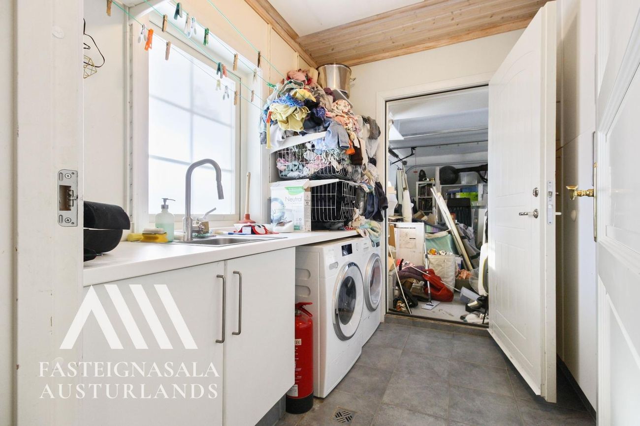Þvottahús: Rúmgott rými þar sem innangengt er í bílskúr.