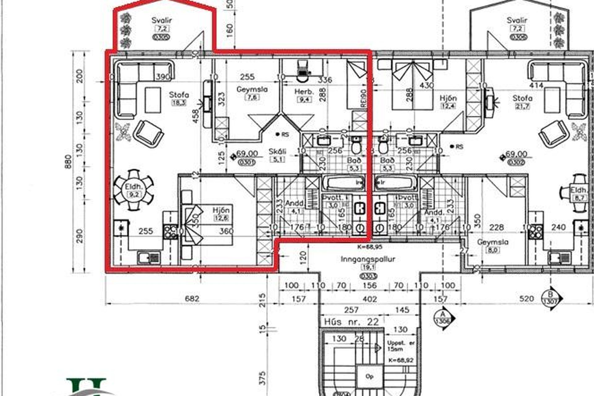 | 2 | 73,00 m² | 55.900.000 kr. 17. apríl 2026 | 46.300.000 kr. 15. ágúst 2023 |